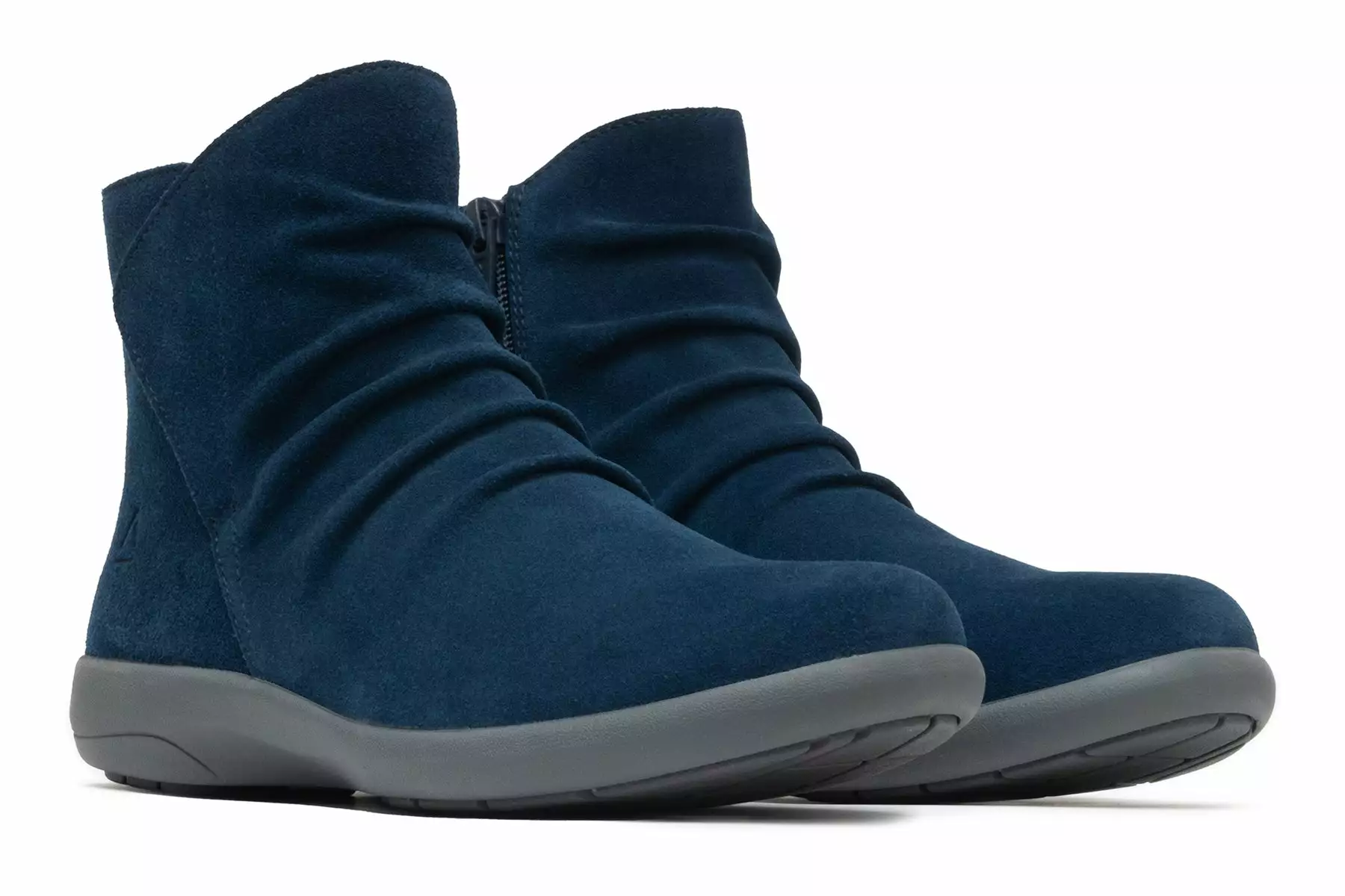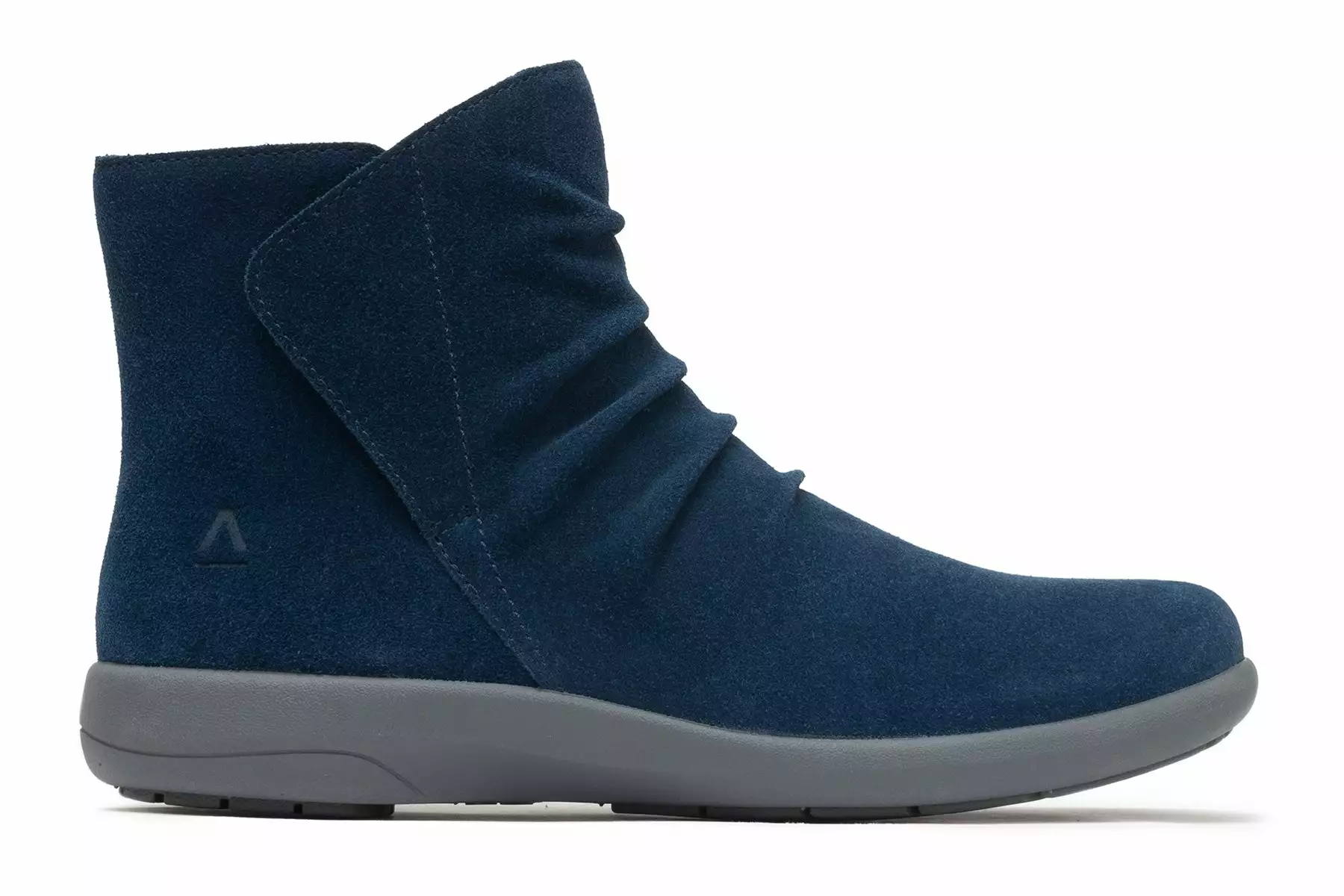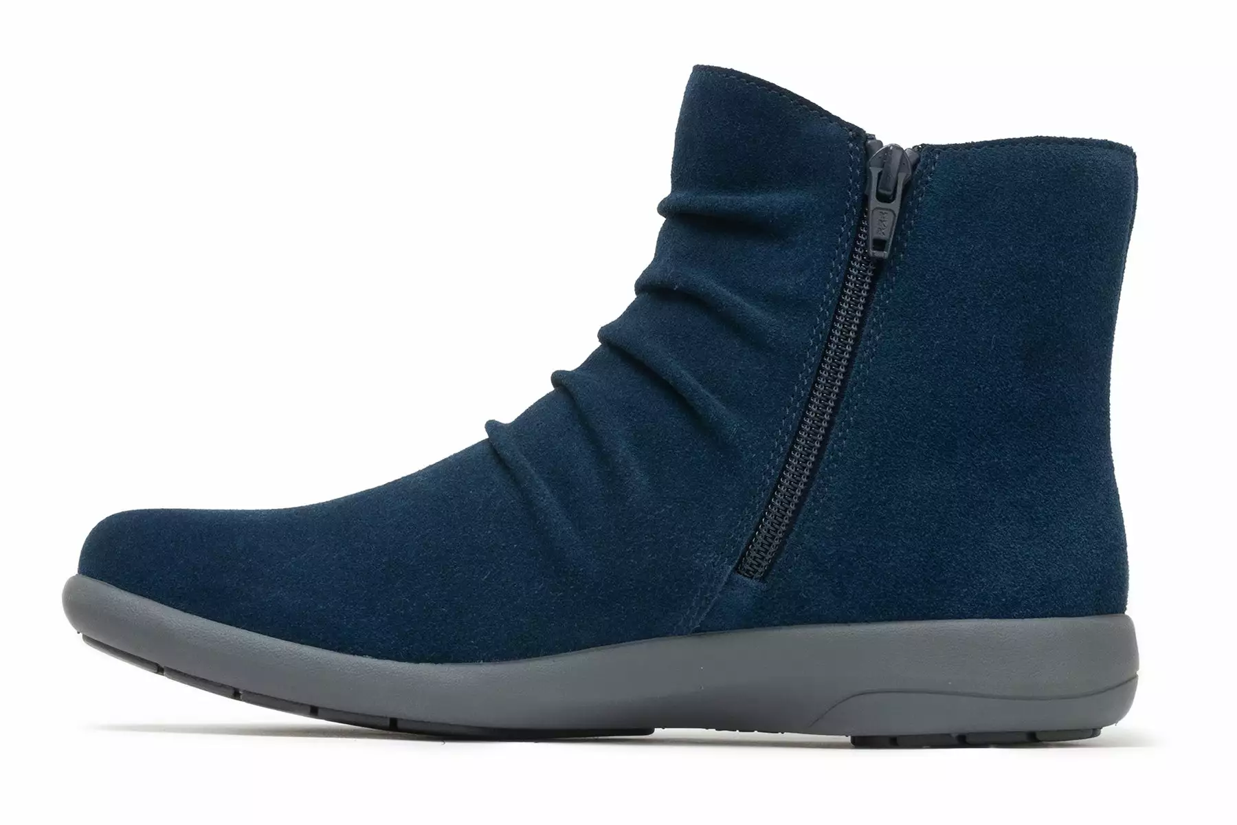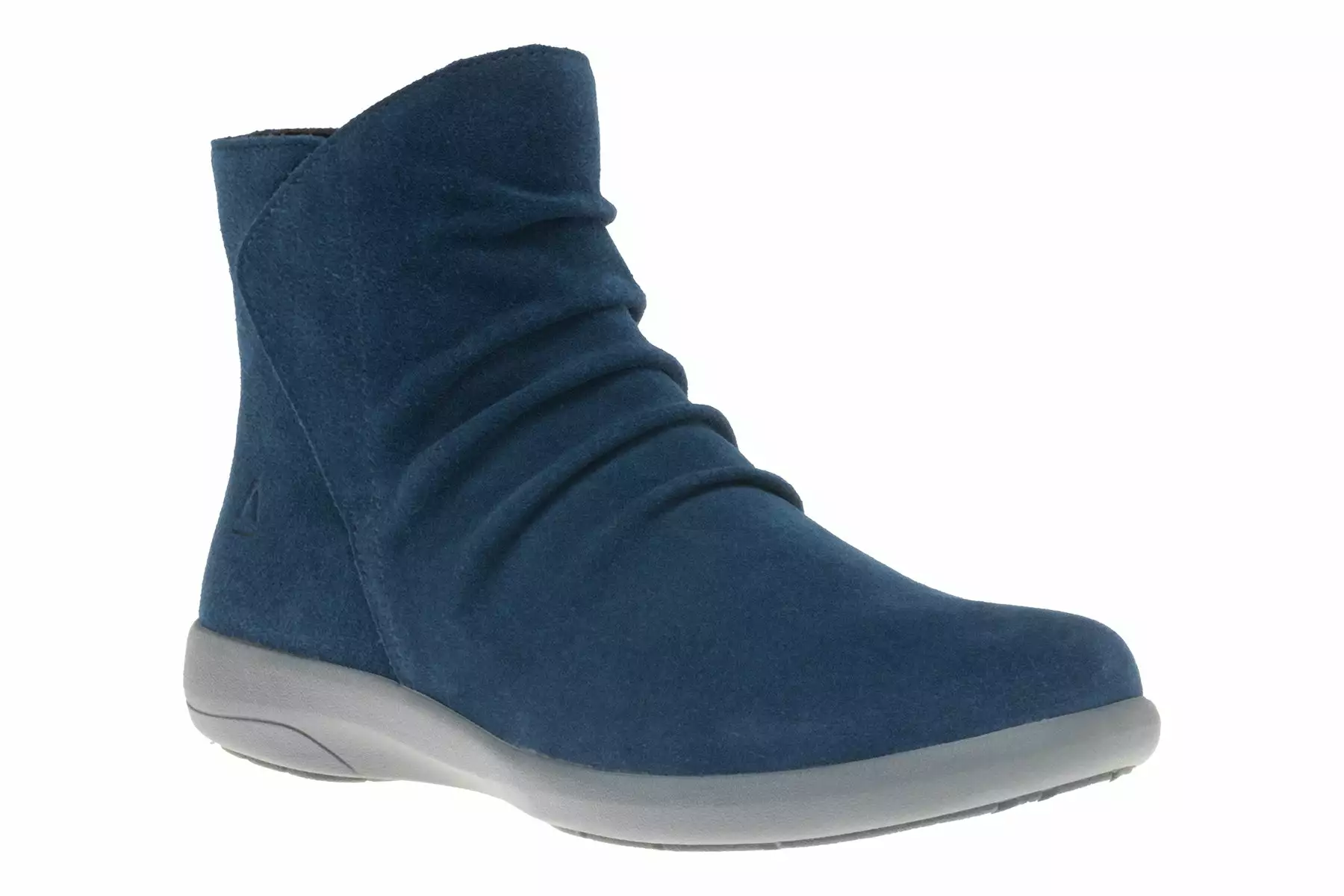 In addition to these premium comfort features, our design team created this boot with on-trend ruched styling while utilizing supeior waterproof tumbled nubuck or suede materials. The functional medial zipper and lateral hook and loop closure allow for easy on-off and a level of adjustability. The microfiber heel grip provides an additional level of comfort while holding your foot in place. The Elle is also equipped with a microsuede fabric lining for additional breathability.