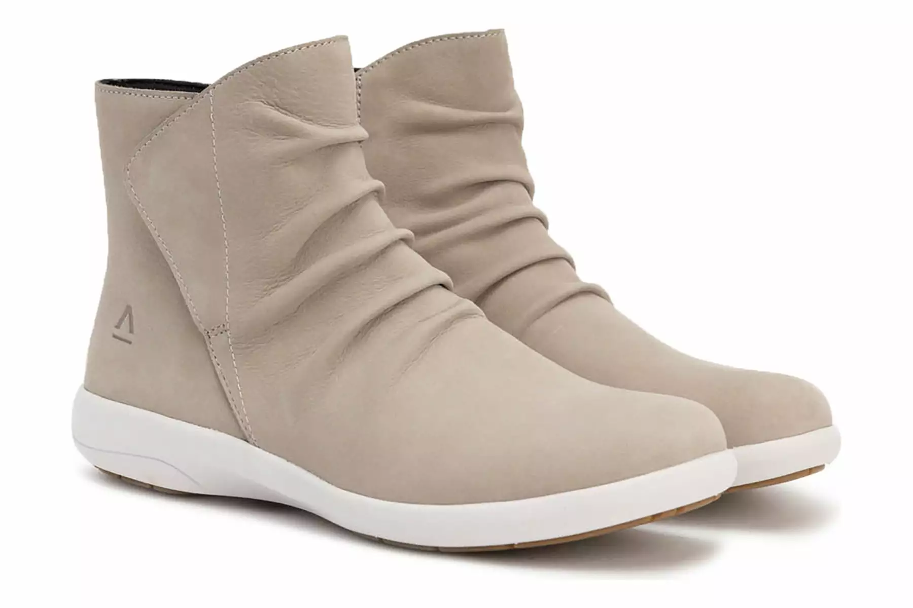 In addition to these premium comfort features, our design team created this boot with on-trend ruched styling while utilizing supeior waterproof tumbled nubuck or suede materials. The functional medial zipper and lateral hook and loop closure allow for easy on-off and a level of adjustability. The microfiber heel grip provides an additional level of comfort while holding your foot in place. The Elle is also equipped with a microsuede fabric lining for additional breathability.