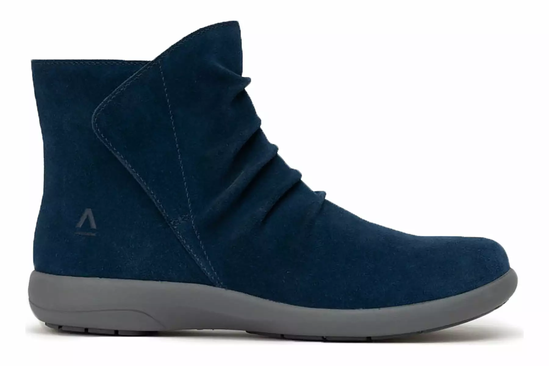 In addition to these premium comfort features, our design team created this boot with on-trend ruched styling while utilizing supeior waterproof tumbled nubuck or suede materials. The functional medial zipper and lateral hook and loop closure allow for easy on-off and a level of adjustability. The microfiber heel grip provides an additional level of comfort while holding your foot in place. The Elle is also equipped with a microsuede fabric lining for additional breathability.