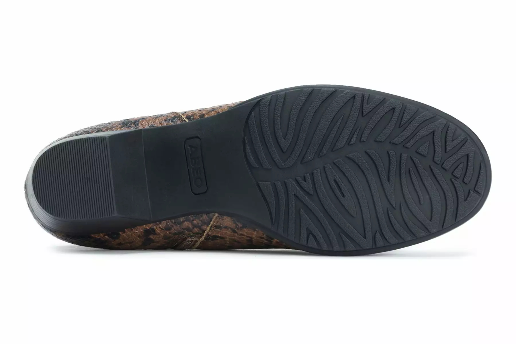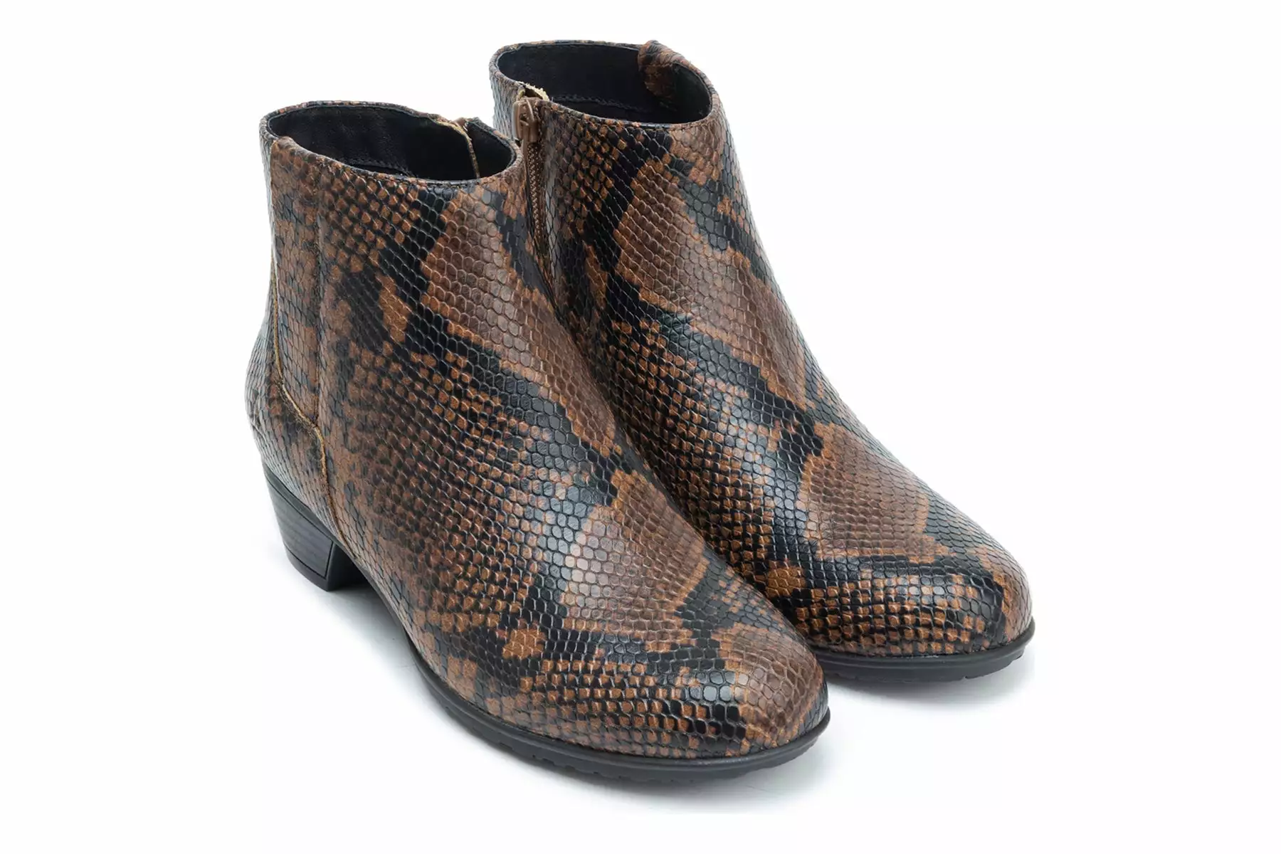 - Burnished leather upper adorned with wraparound leather straps and a medial zipper for easy entry.