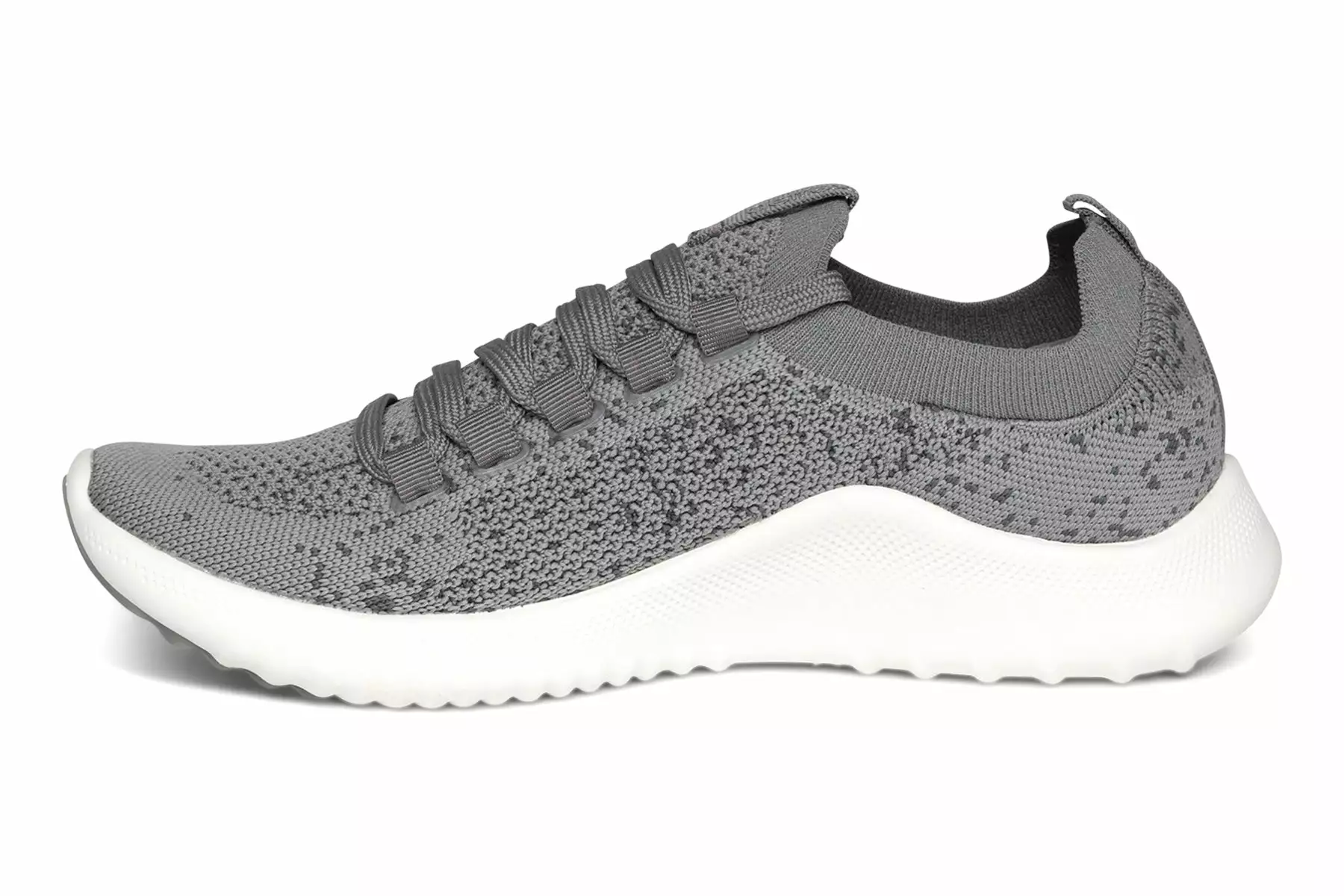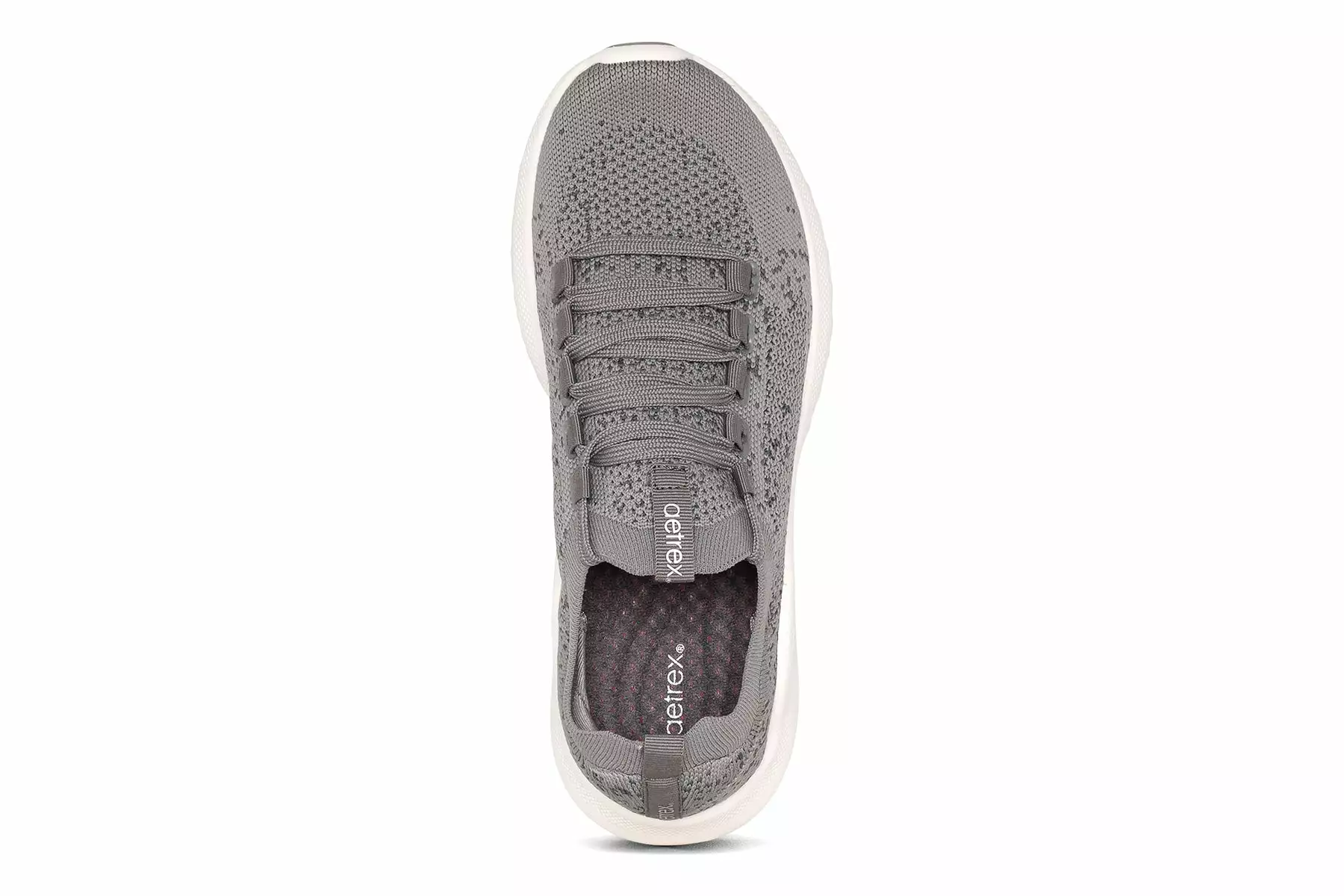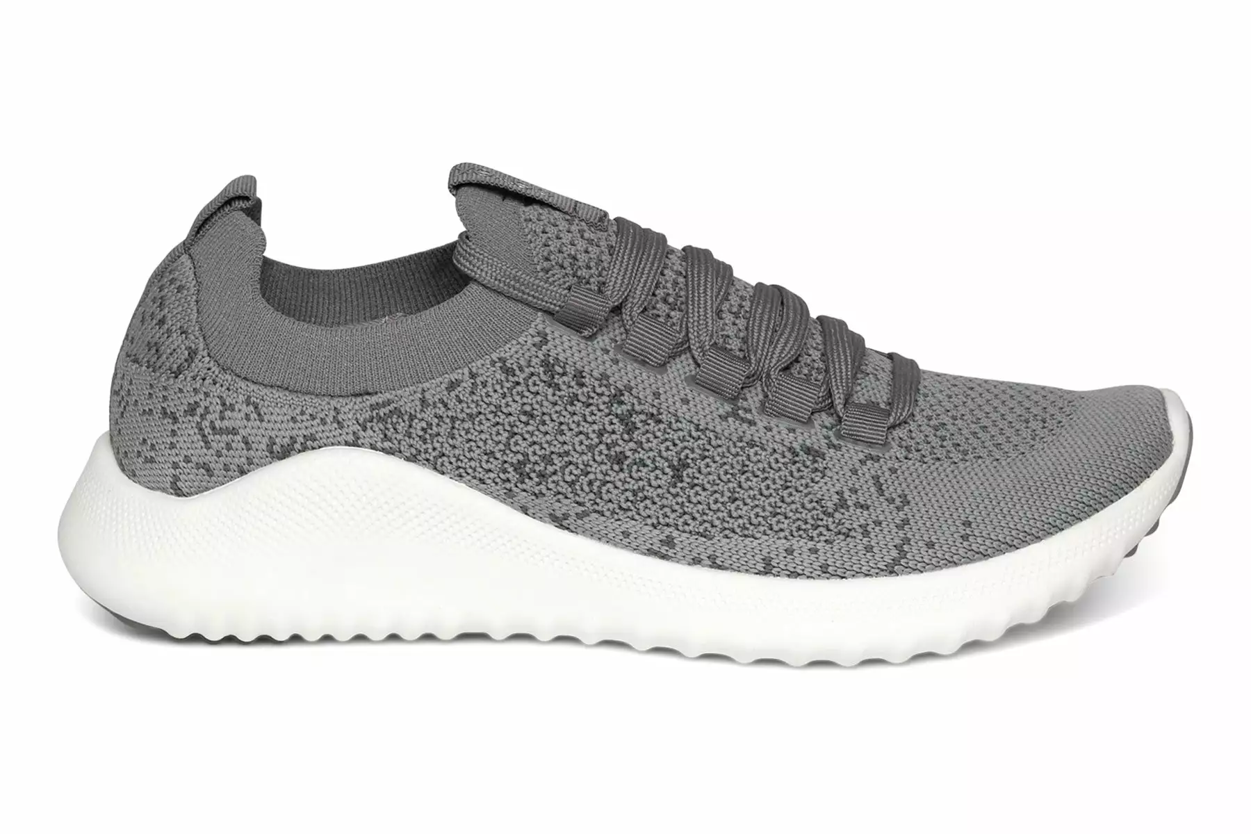 Aetrex Carly is a fashionable sneaker with great arch support. This traditional lace-up sneaker offers a snug and comfortable fit for any walk, run or workout. UltraSky EVA cushioning, padded heel and stretchy knit upper completes these adaptable sneakers.