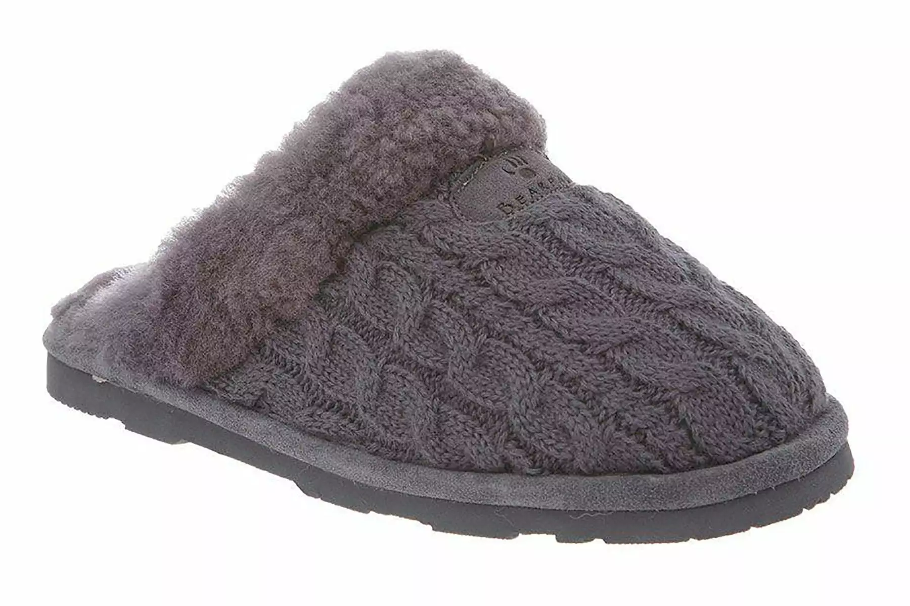 Bearpaw Effie is a snug and cozy women’s slipper. These cold weather shoes have knit or textile uppers, sheepskin collar and lining and a molded EVA outsole. A contoured footbed adds comfort, faux fur provides warmth and durable slip-on construction is long lasting.