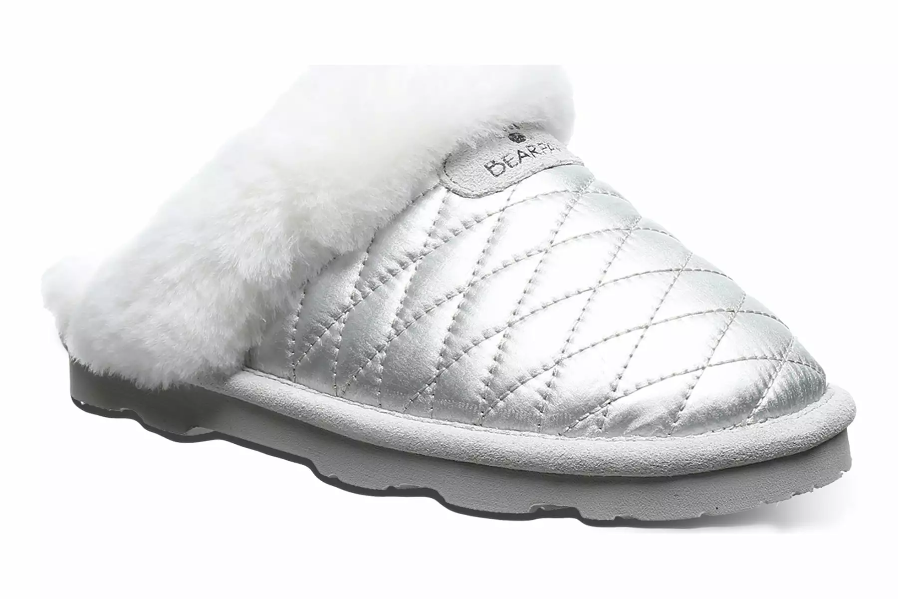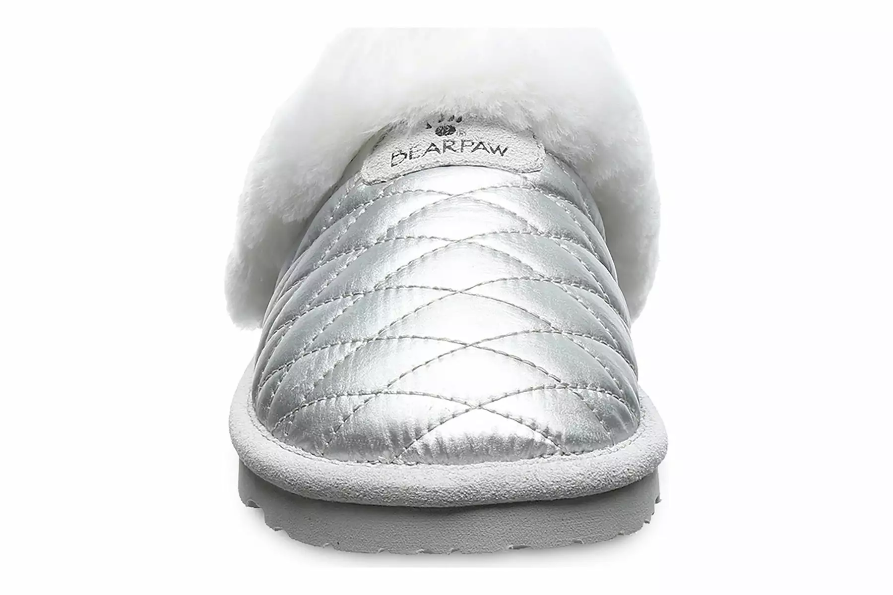 Bearpaw Effie is a snug and cozy women’s slipper. These cold weather shoes have knit or textile uppers, sheepskin collar and lining and a molded EVA outsole. A contoured footbed adds comfort, faux fur provides warmth and durable slip-on construction is long lasting.