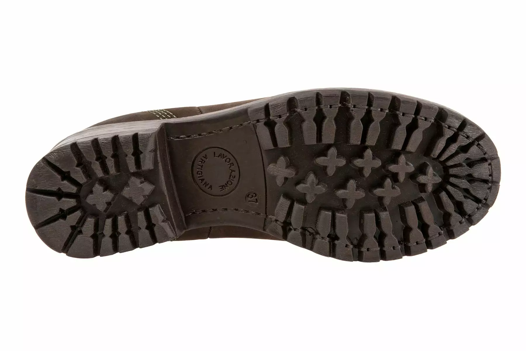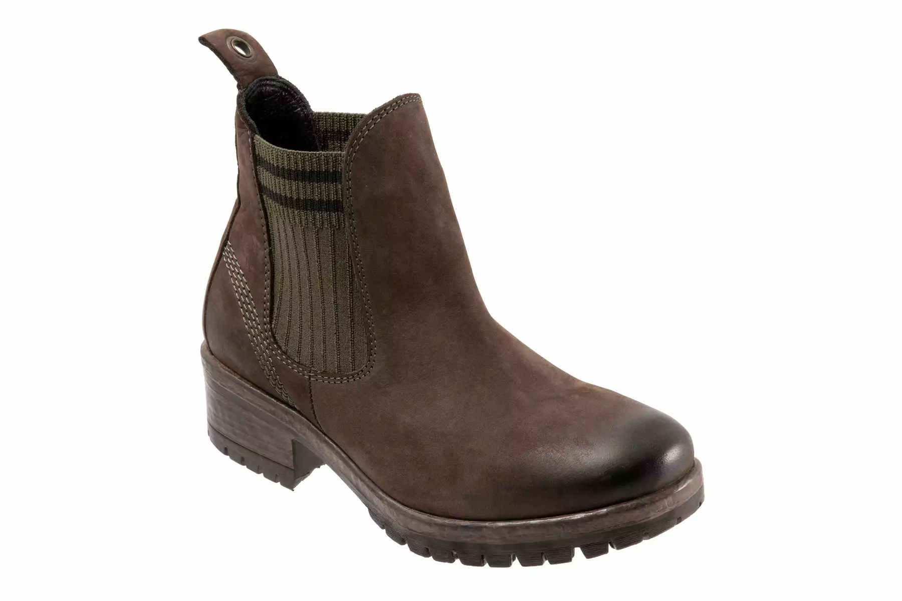 A toothy lug sole and chunky heel, lend a touch of rugged utility to a classic chelsea boot, styled with contrast goring insets and an elongated pull tab. Â Â
