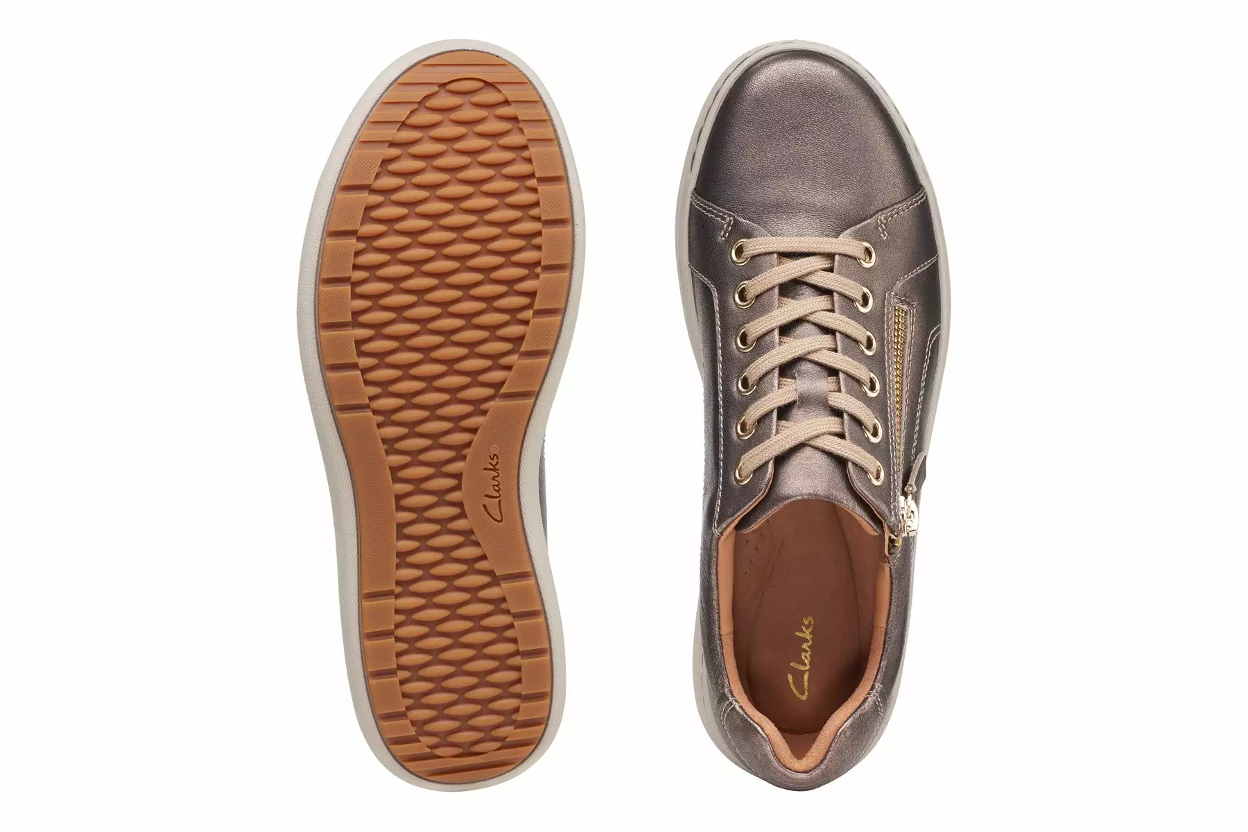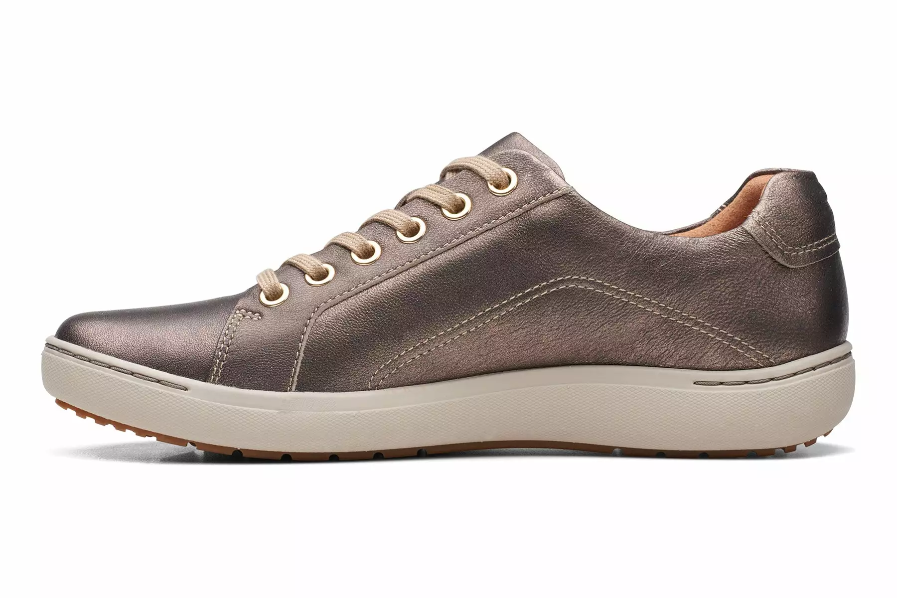 - Durable bronze metallic leather upper