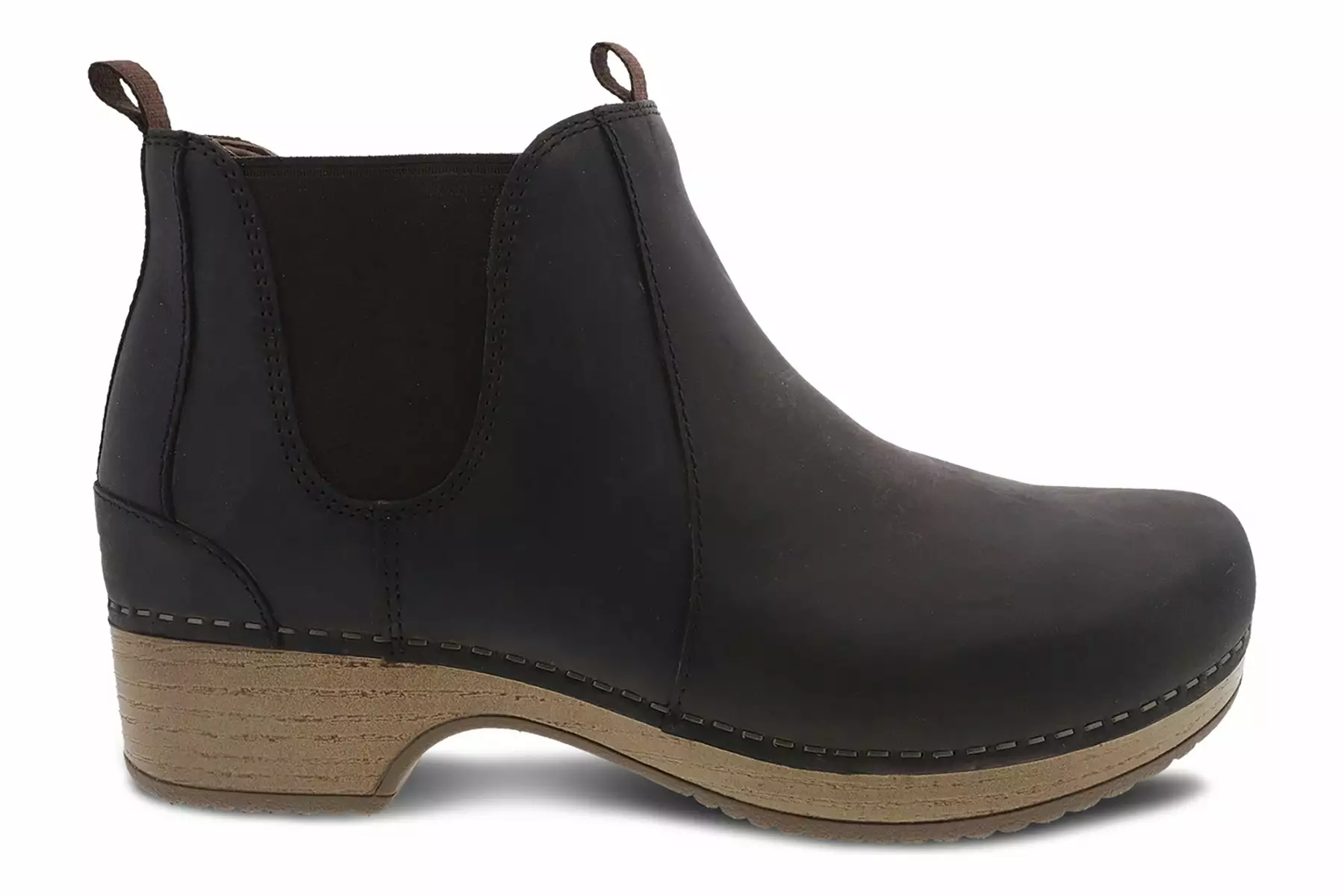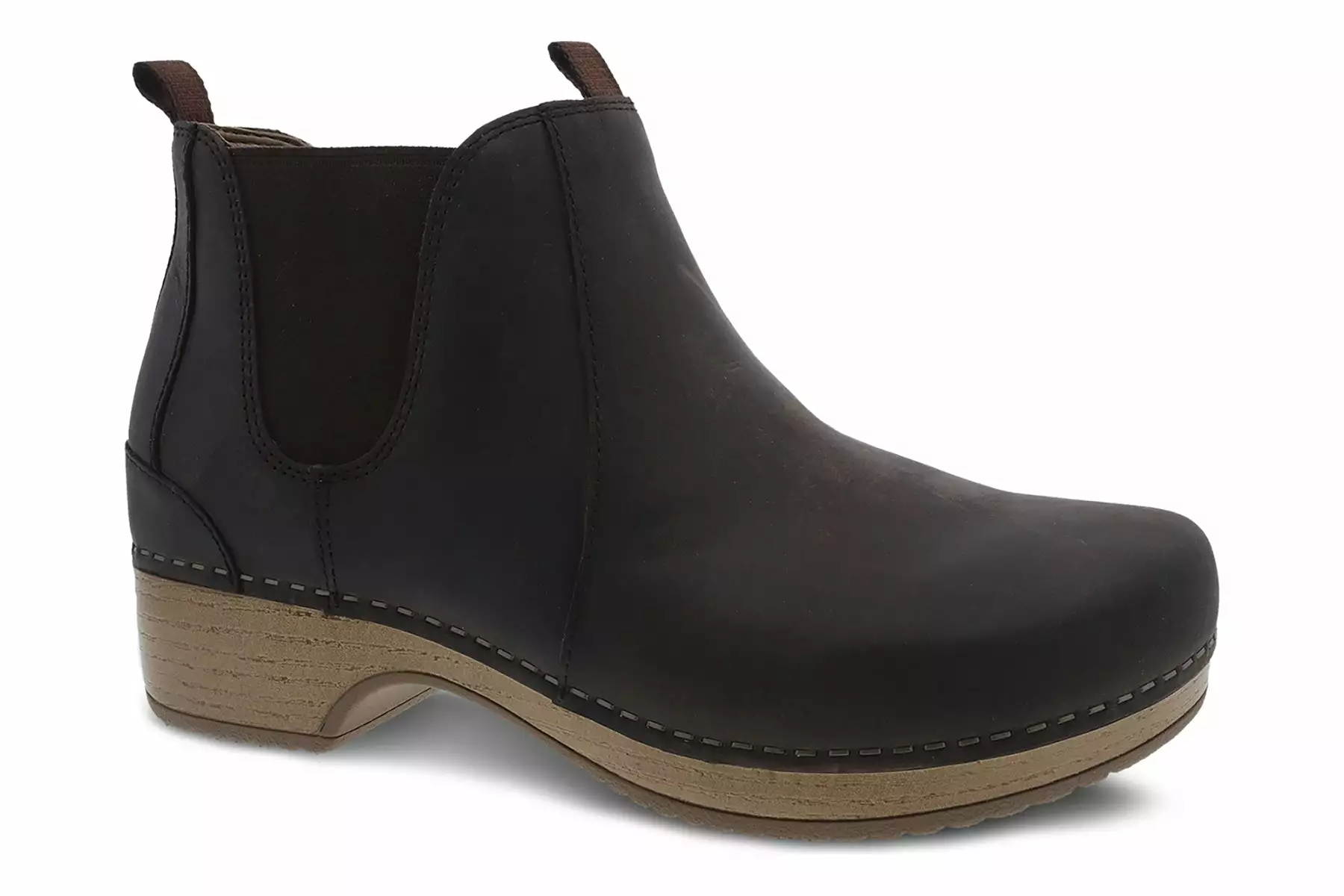 The Becka is a low bootie that combines chic simplicity with the heritage of Dansko. Double gore inserts provide adjustability and ease of entry, supplemented by back and front pull tabs. This style features our patent-pending stapled construction, linings with Aegis Microbe Shield for odor control, Nubuck uppers treated with 3M Scotchgard protector for stain resistance, and a lightweight patent-pending EVA outsole for long-lasting wear.