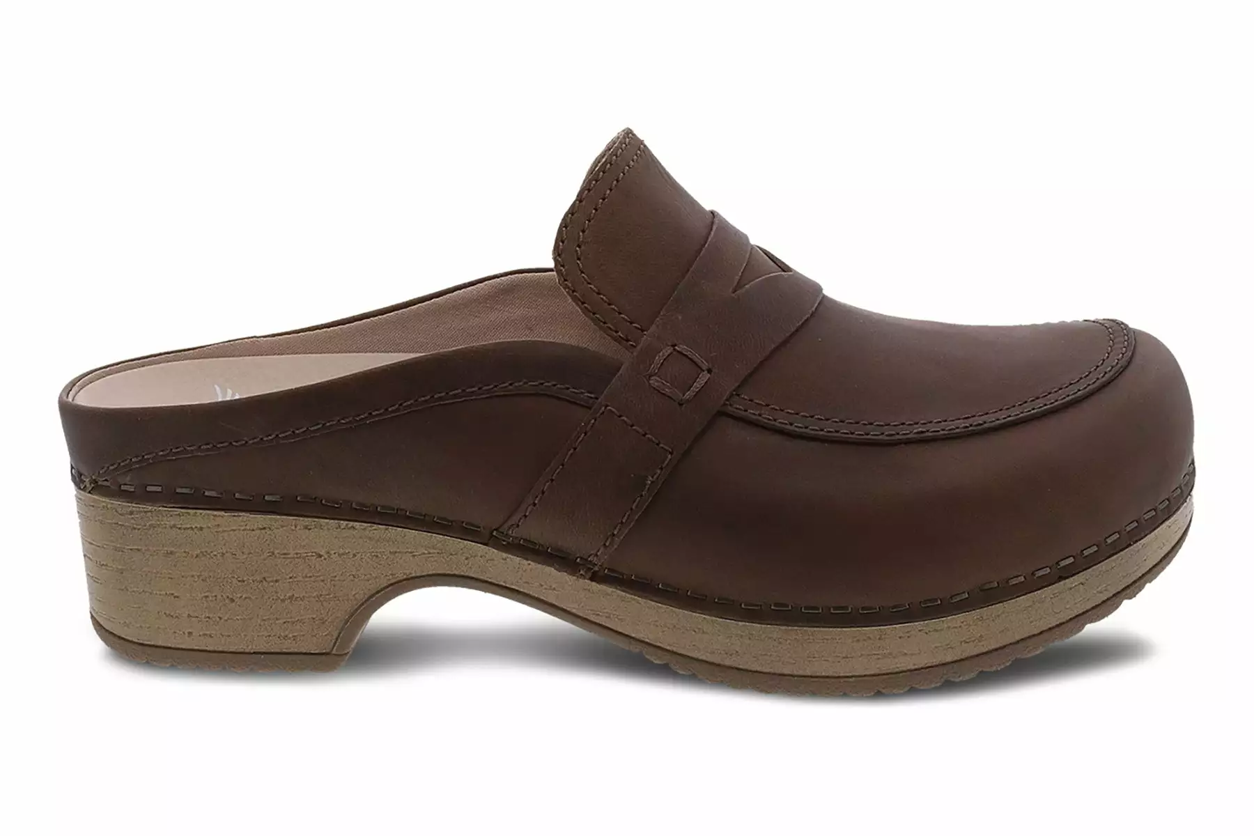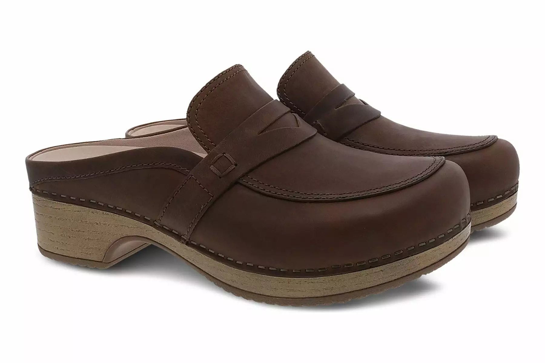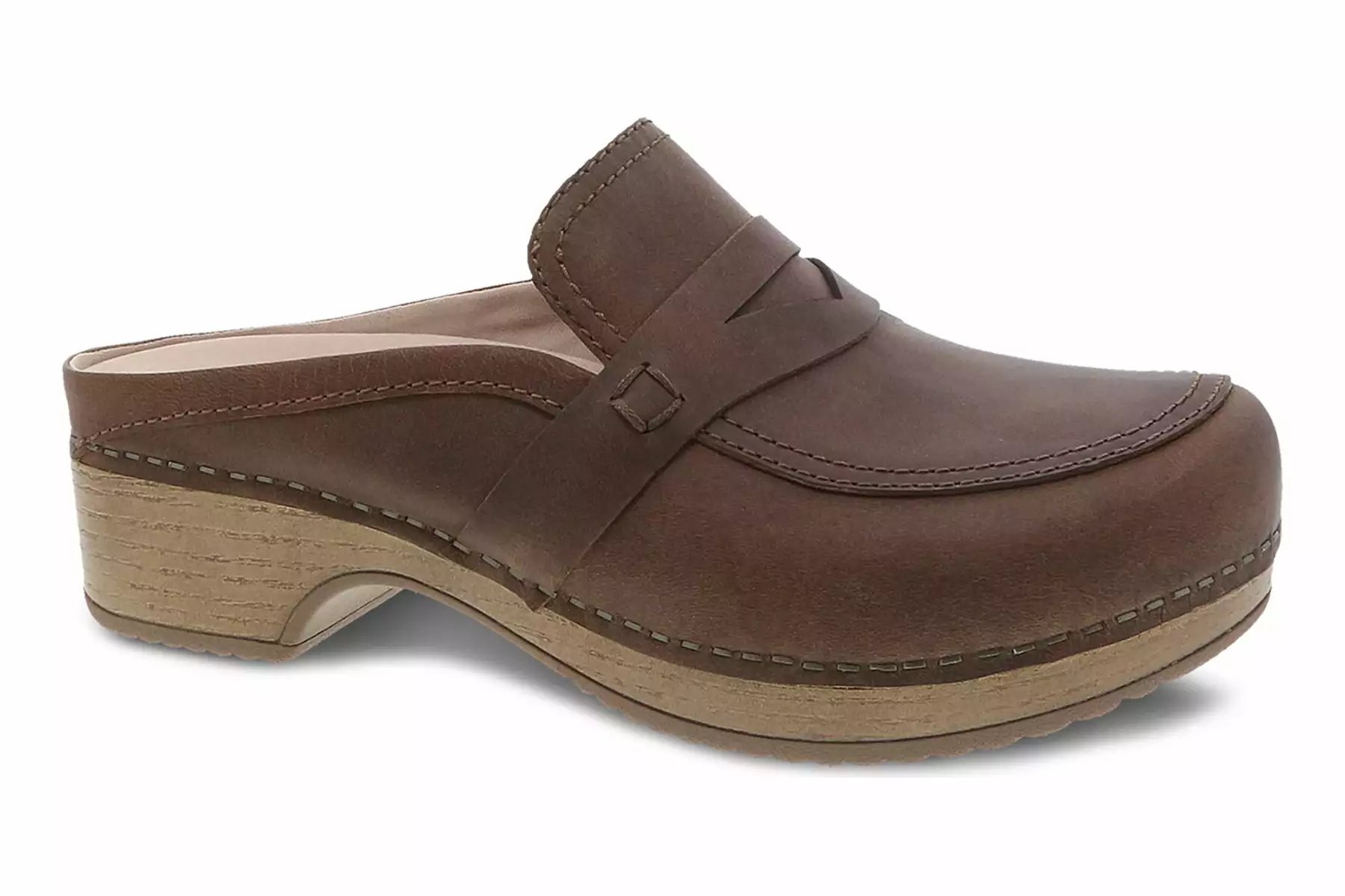 Dansko Bel is a modern mule with a moccasin toe shape. Leather uppers and lining, memory foam footbed and An EVA outsole completes these trendy clogs. These shoes also have our patented stapled construction and are made with stain-resistant, wipe-clean leather.