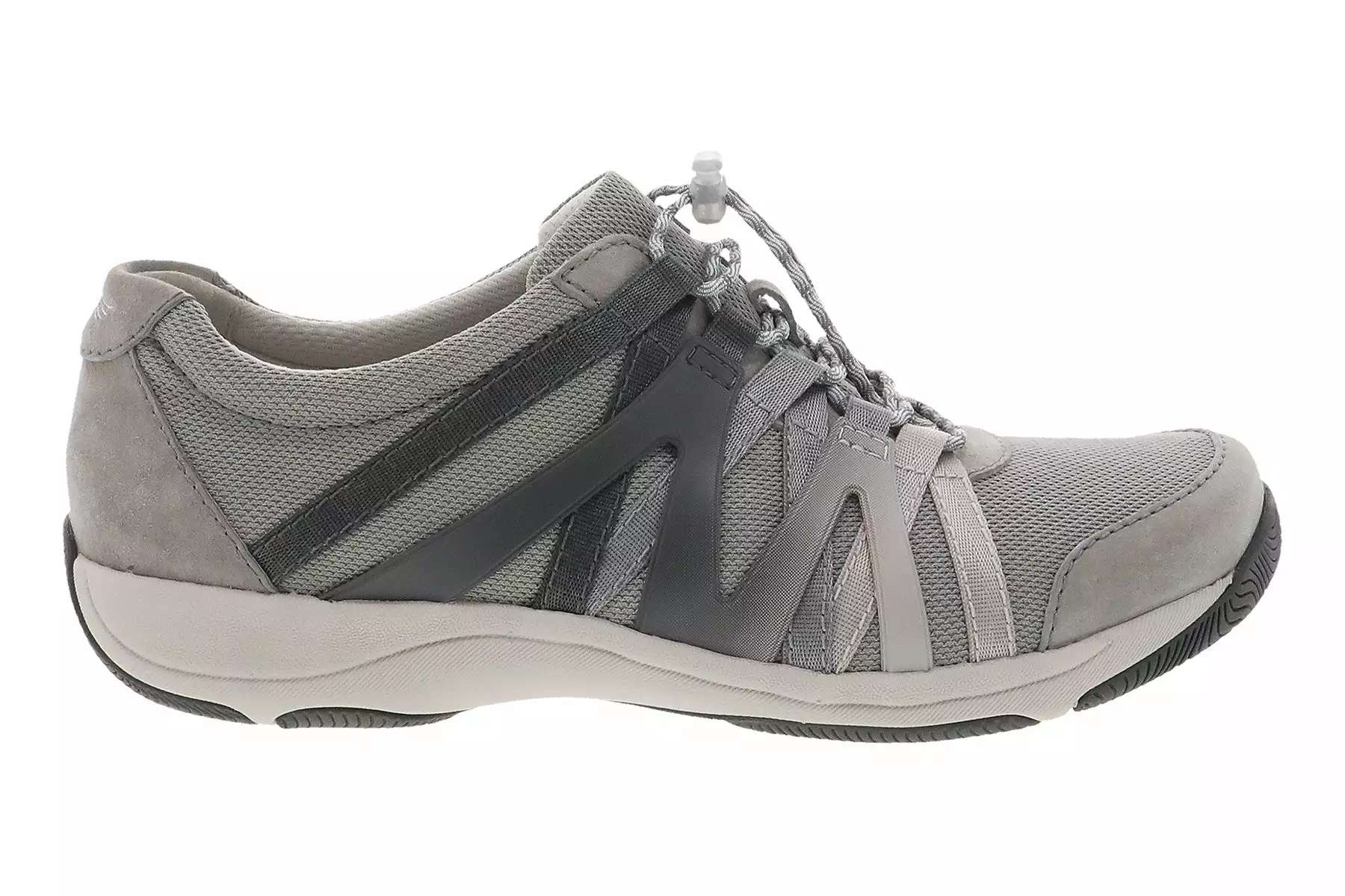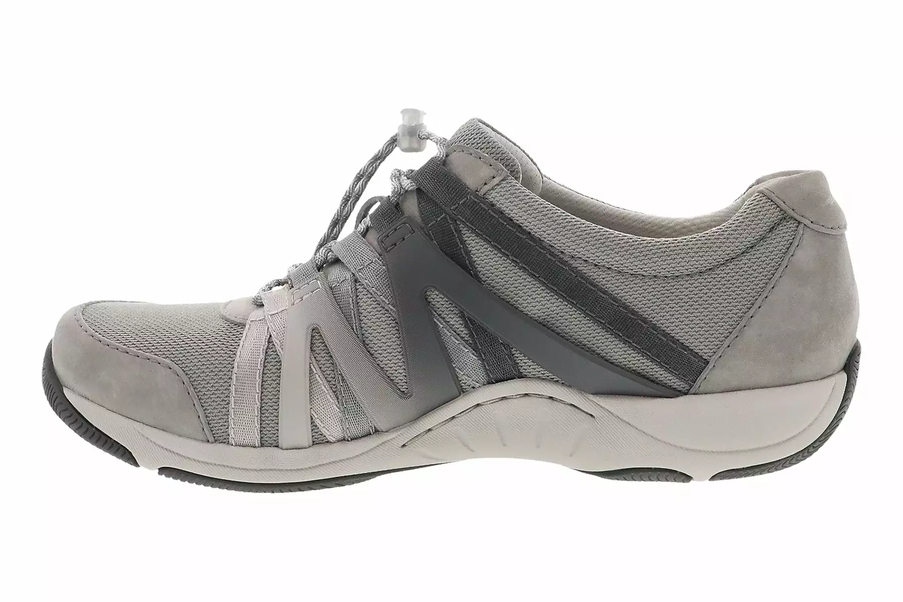 Dansko Henriette is a sporty and sleek comfort sneaker. These active shoes feature a suede and recycled nylon upper, removable EVA footbed and rubber outsole. Adjustable bungee laces, a cooling sock lining and strobel construction provides support and flexibility.