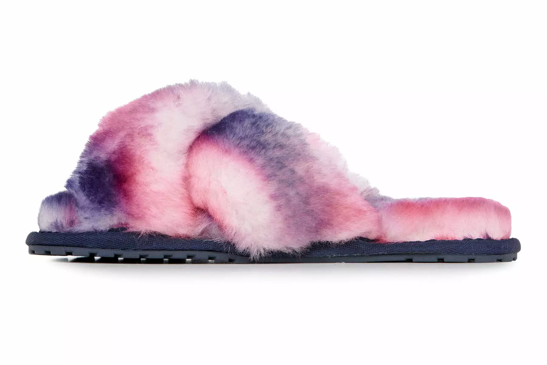 Make a statement in the Mayberry Tie-Dye. These standout slippers feature an on-trend tie-dye design using a rainbow-inspired color palette, made from the softest Australian sheepskin crossover straps and footbed to keep you comfy. Feeling firm at first, our slippers mold to your feet over time for the perfect fit. Half size? We recommend one size bigger.