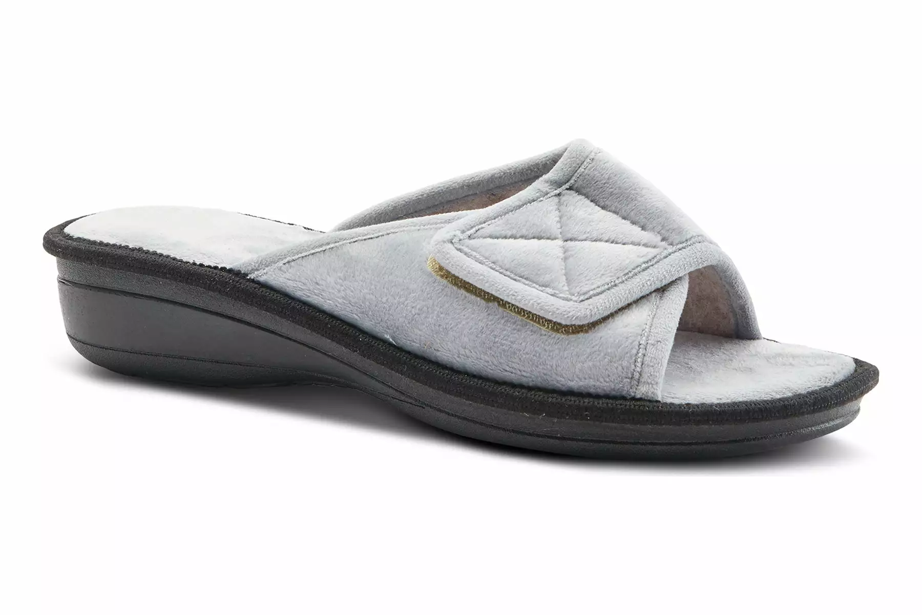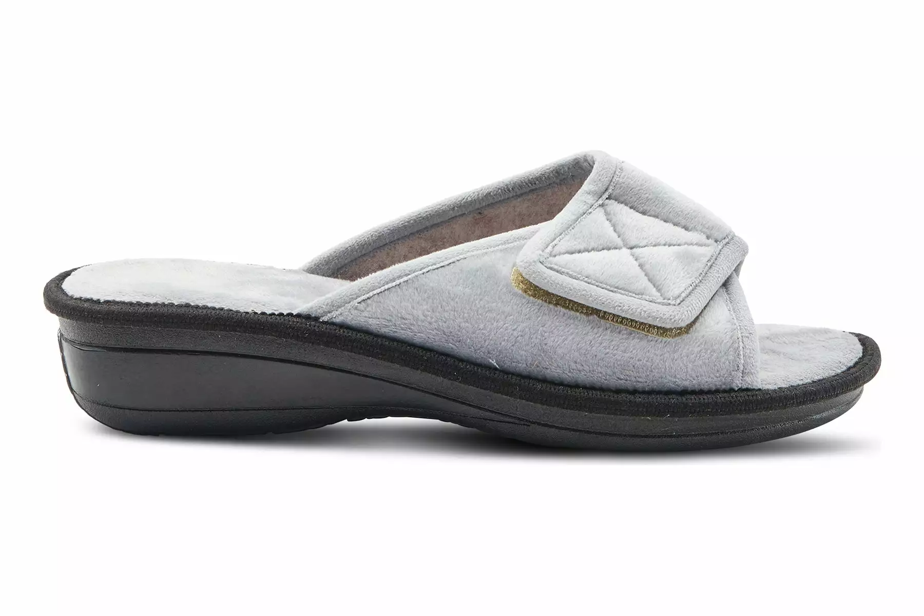 Flexus Style: Dreamsweet -Italian-made velvet-like open-toe indoor/outdoor slipper with adjustable strap for perfect fit and all-day comfort.
