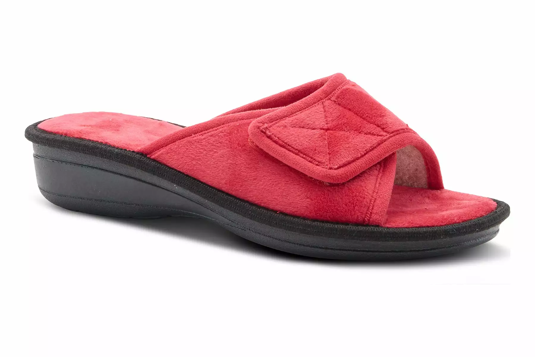 Flexus Style: Dreamsweet -Italian-made velvet-like open-toe indoor/outdoor slipper with adjustable strap for perfect fit and all-day comfort.