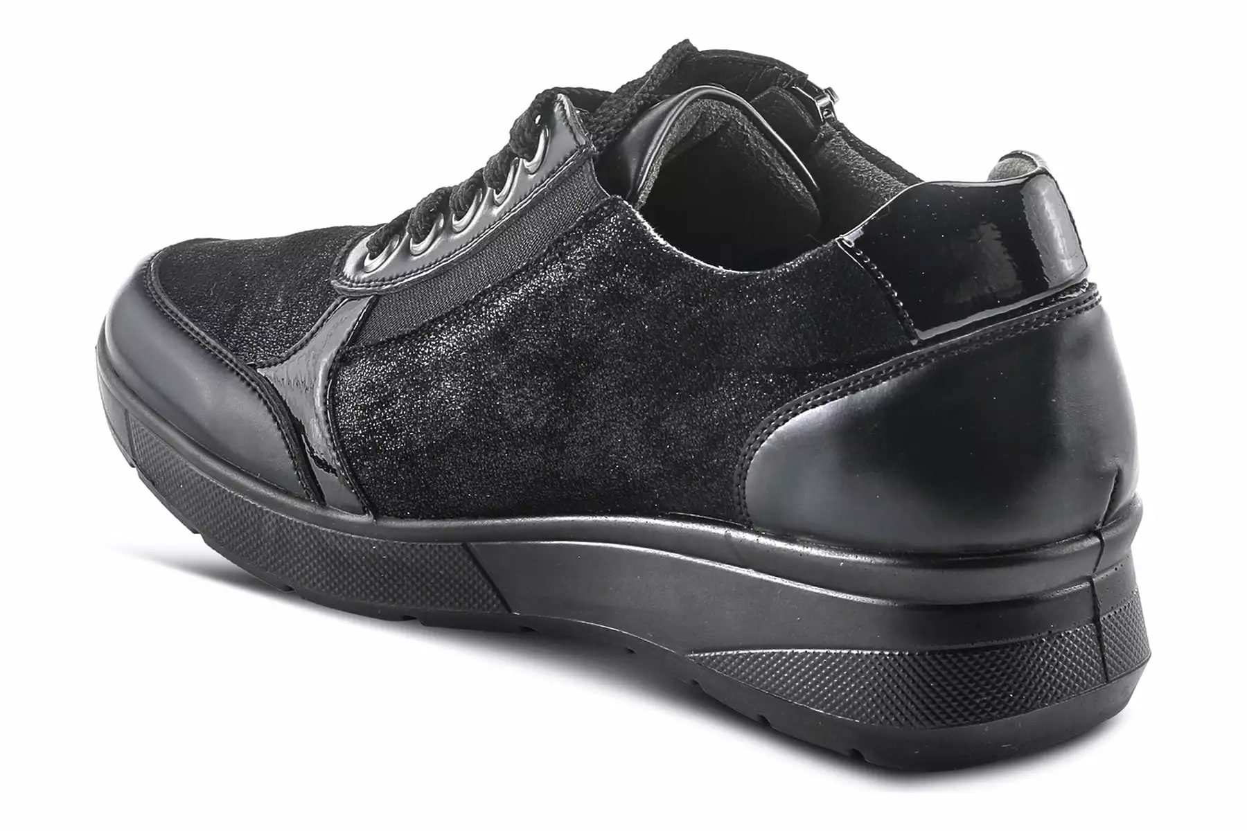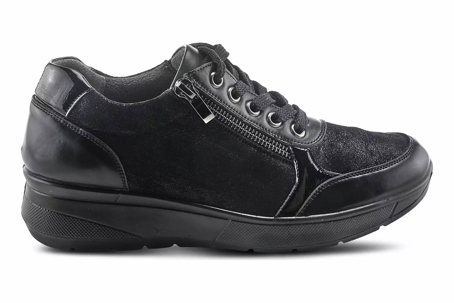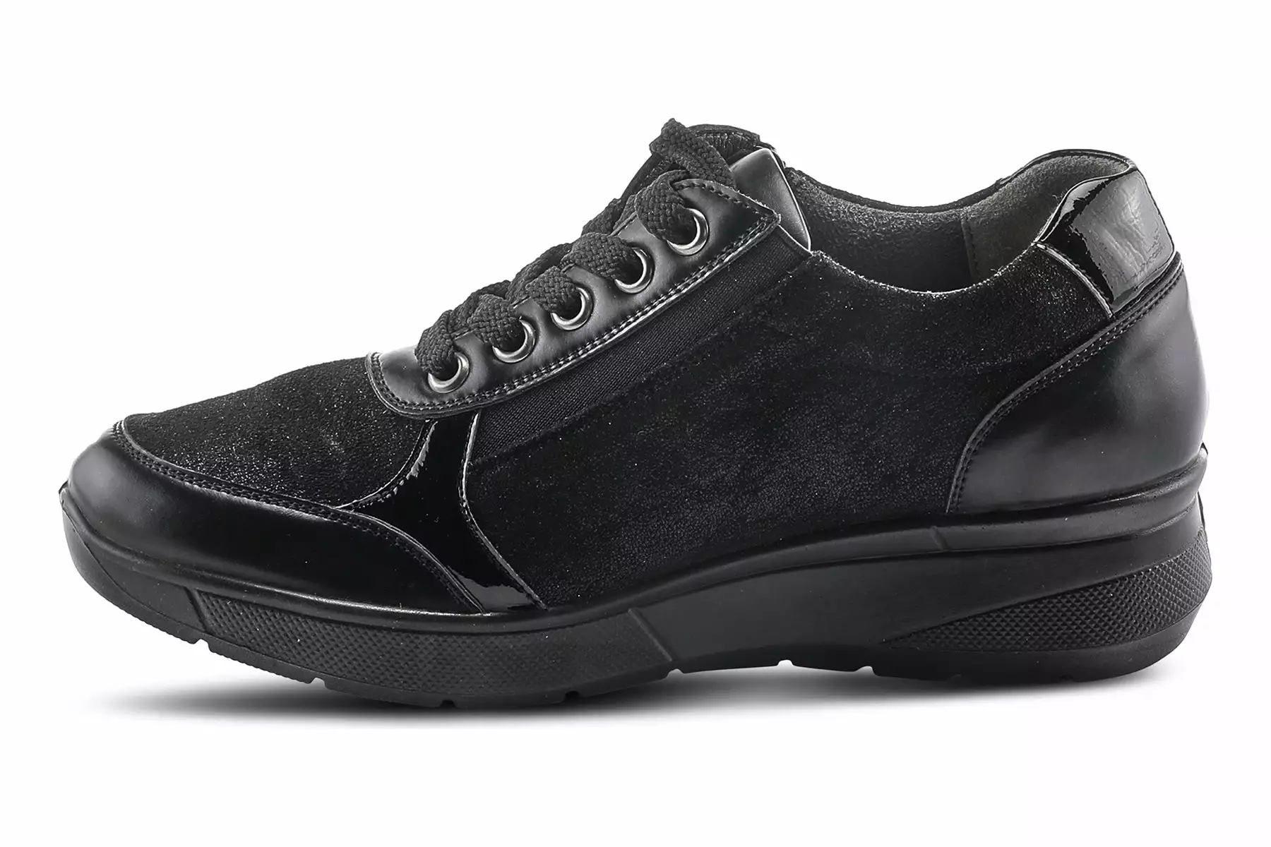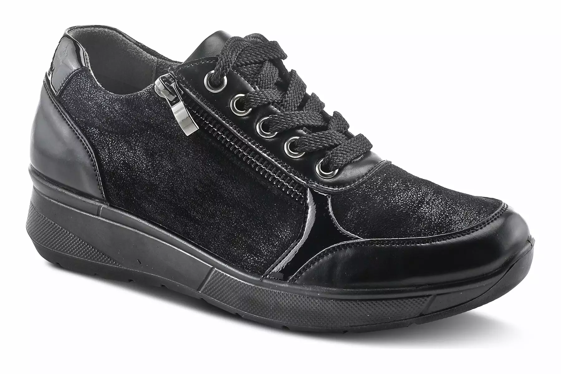 Flexus Style: Elmera -Elevate your style with this lace up and an angled zipper that traces the vamp of the sneaker. Added touches of patent evelate this style along with a nice cushioned footbed which features the ultimate in comfort.