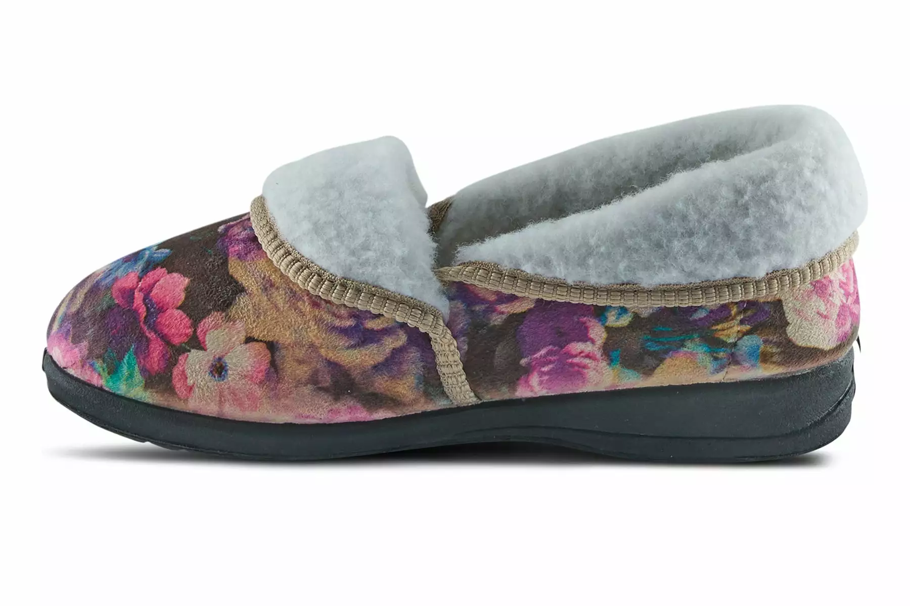 Flexus Style: PURA -Stunning indoor convertible slipper with a beautiful printed pattern, roll the foldovers up for more warmth and coverage.