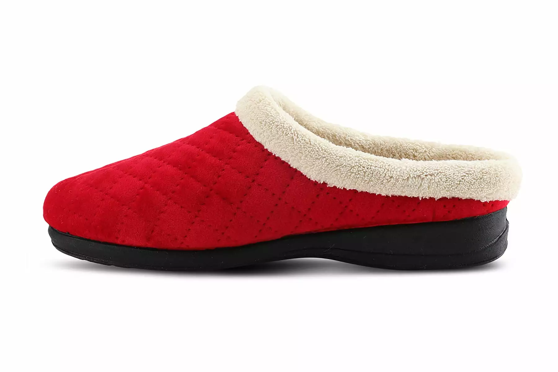 Flexus SLEEPER Beautiful slipper with diamond quilting and a center seam with a cozy lining and trim, and memory foam insole on a comfort outsole.