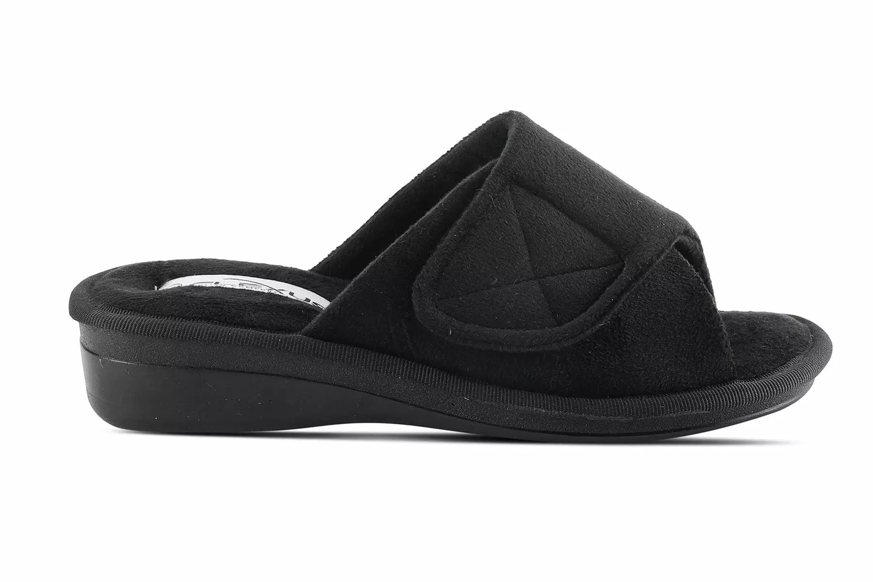 Flexus SWEETDREAMS Soft, open-toe slipper with adjustable strap for perfect fit and all-day comfort.