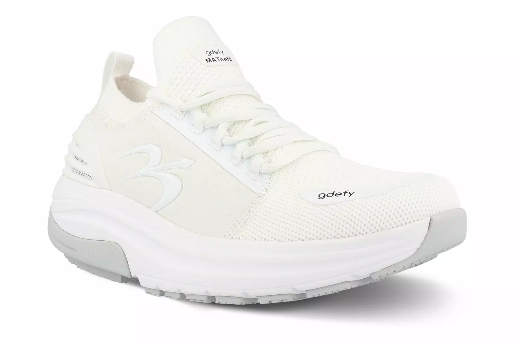 GDEFY MATeeM is a comfortable, sporty sneaker. Designed for cushioning, pain relief and recovery, these sneakers have an EVA midsole and rubber blend outsole. Mesh uppers, roomy toe box, removable insoles and adjustable lace-up closures complete these active sneakers.