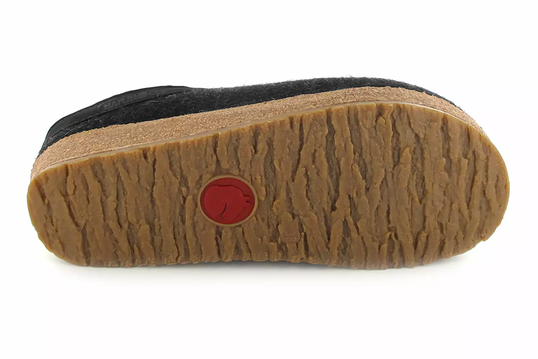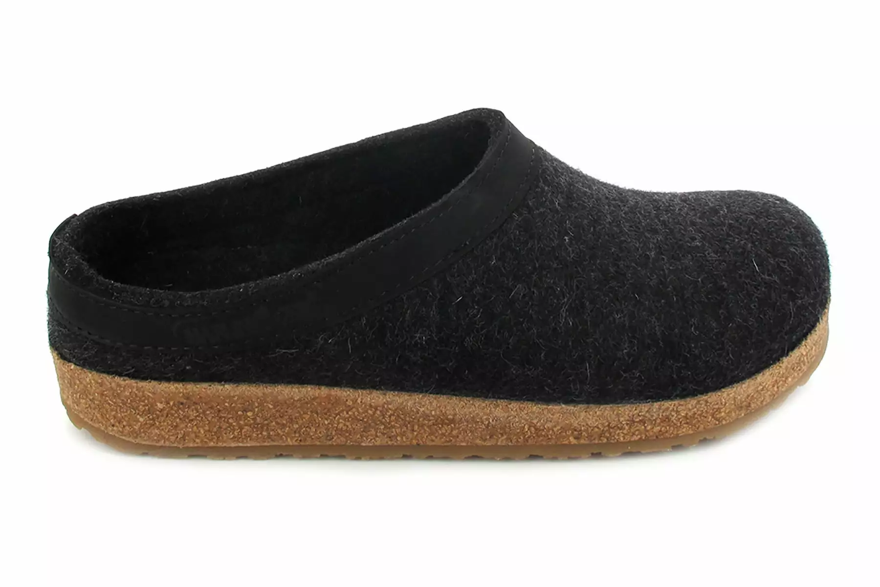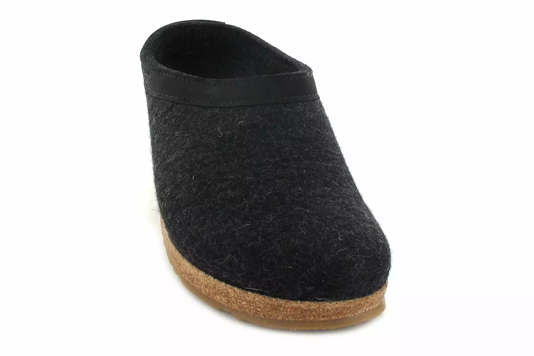 Haflinger GZL is a warm and comfortable clog. These trendy shoes have wool felt uppers with leather trim, cork and latex midsole and rubber traction outsole. A wool-covered footbed provides comfort, while a felt lined insole helps to wick away moisture.
