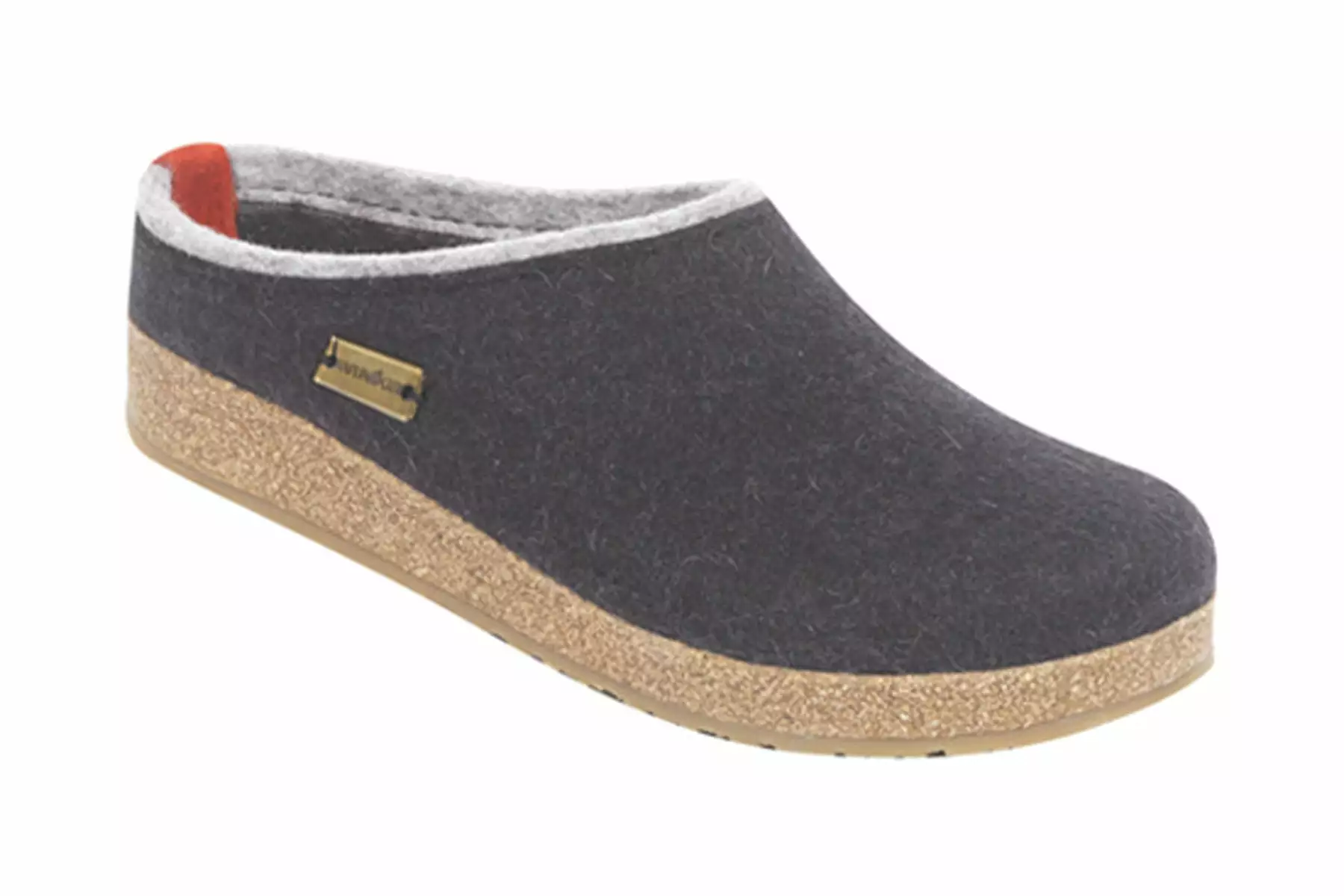 The menโs Haflinger Kris open-back clog offers all-day comfort and style. The breathable, natural boiled wool upper is matched with wool lining. The molded cork footbed is removable to accommodate custom orthotics for a personalized fit.