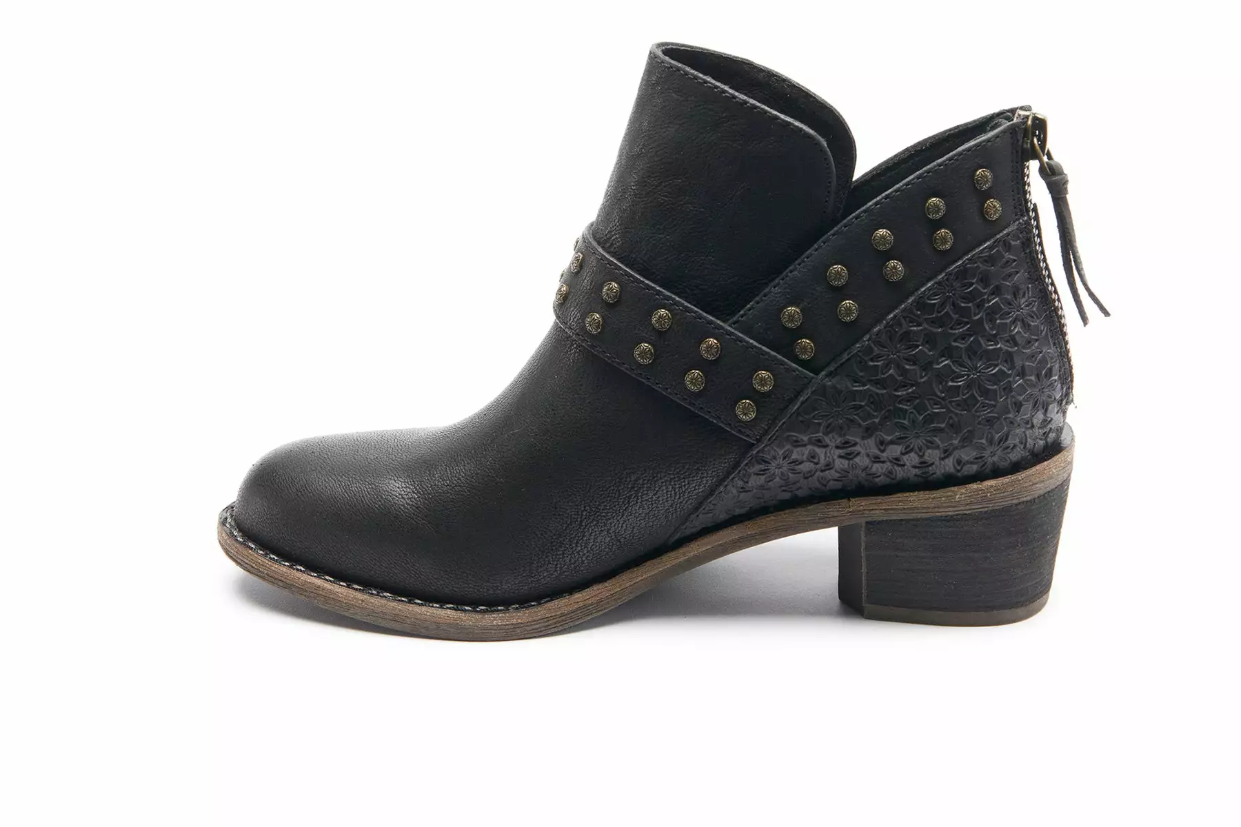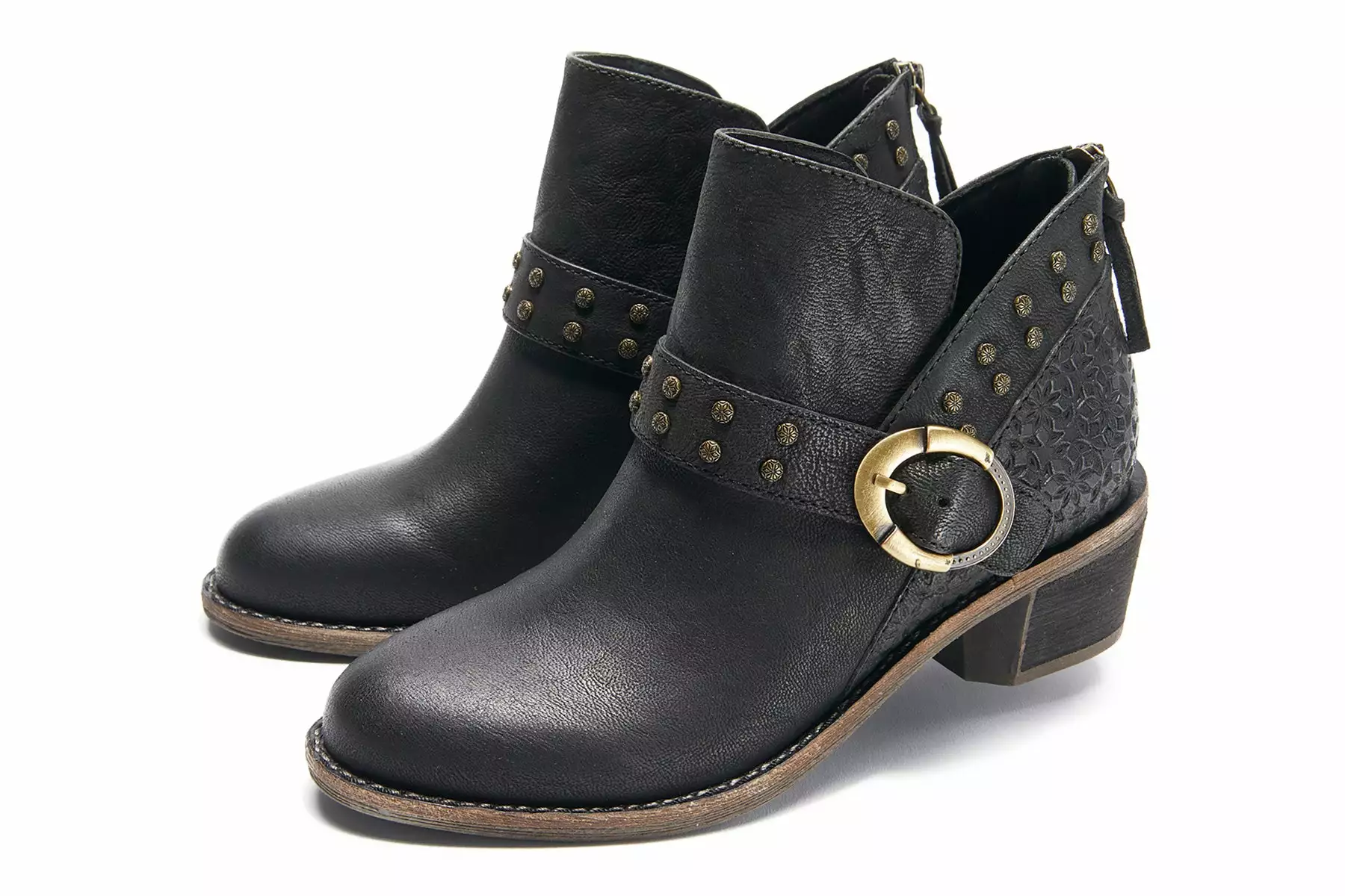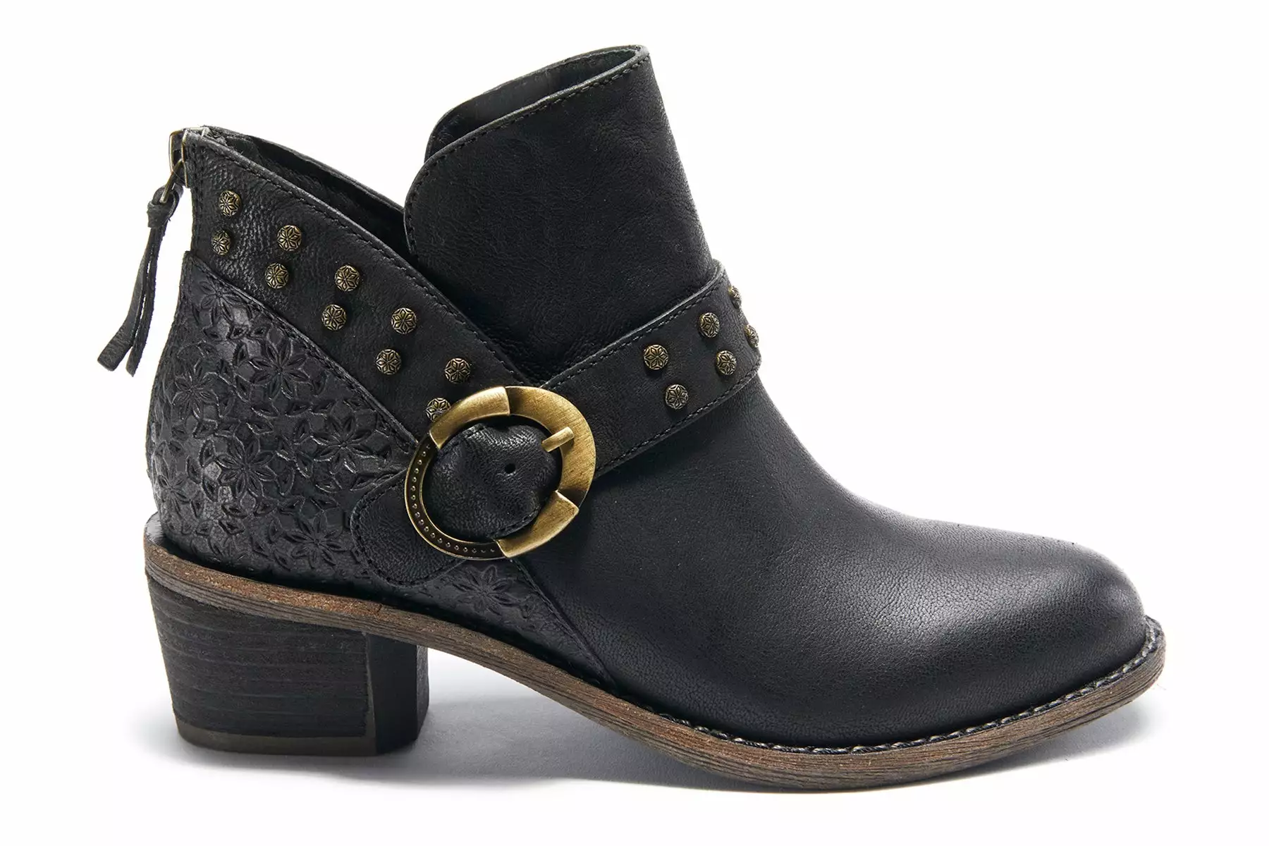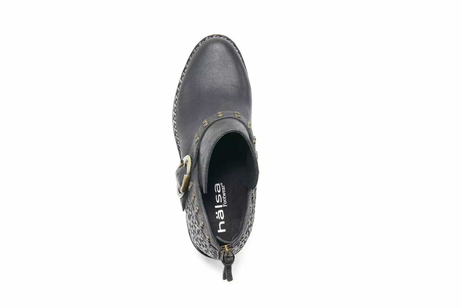 Halsa Footwear Melania is a sleek and comfortable ankle boot. Features include leather uppers, removable antimicrobial insole and durable rubber outsole. An adjustable buckle and stud detailing, cushioned EVA footbed and textile lining will make these booties a new favorite.