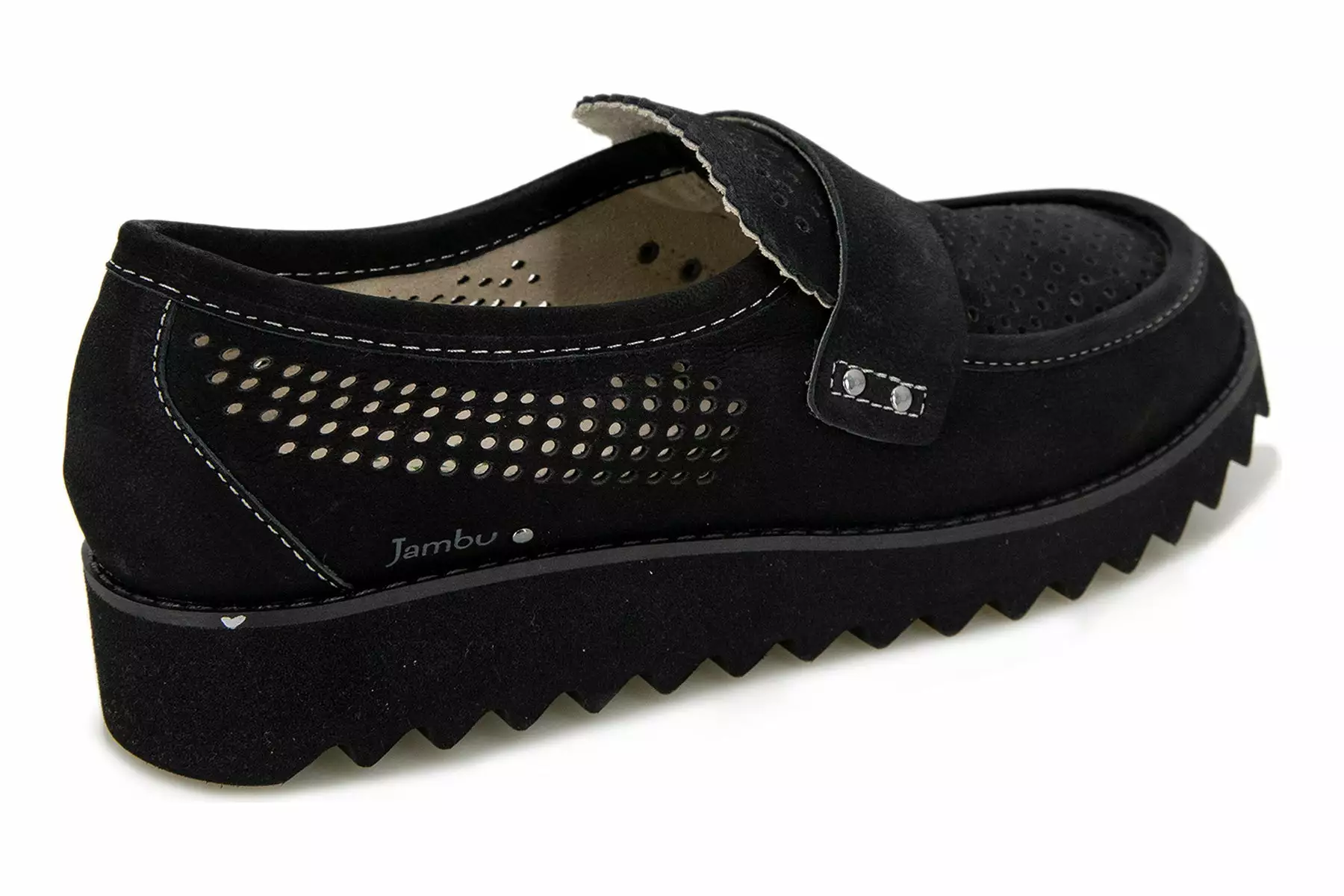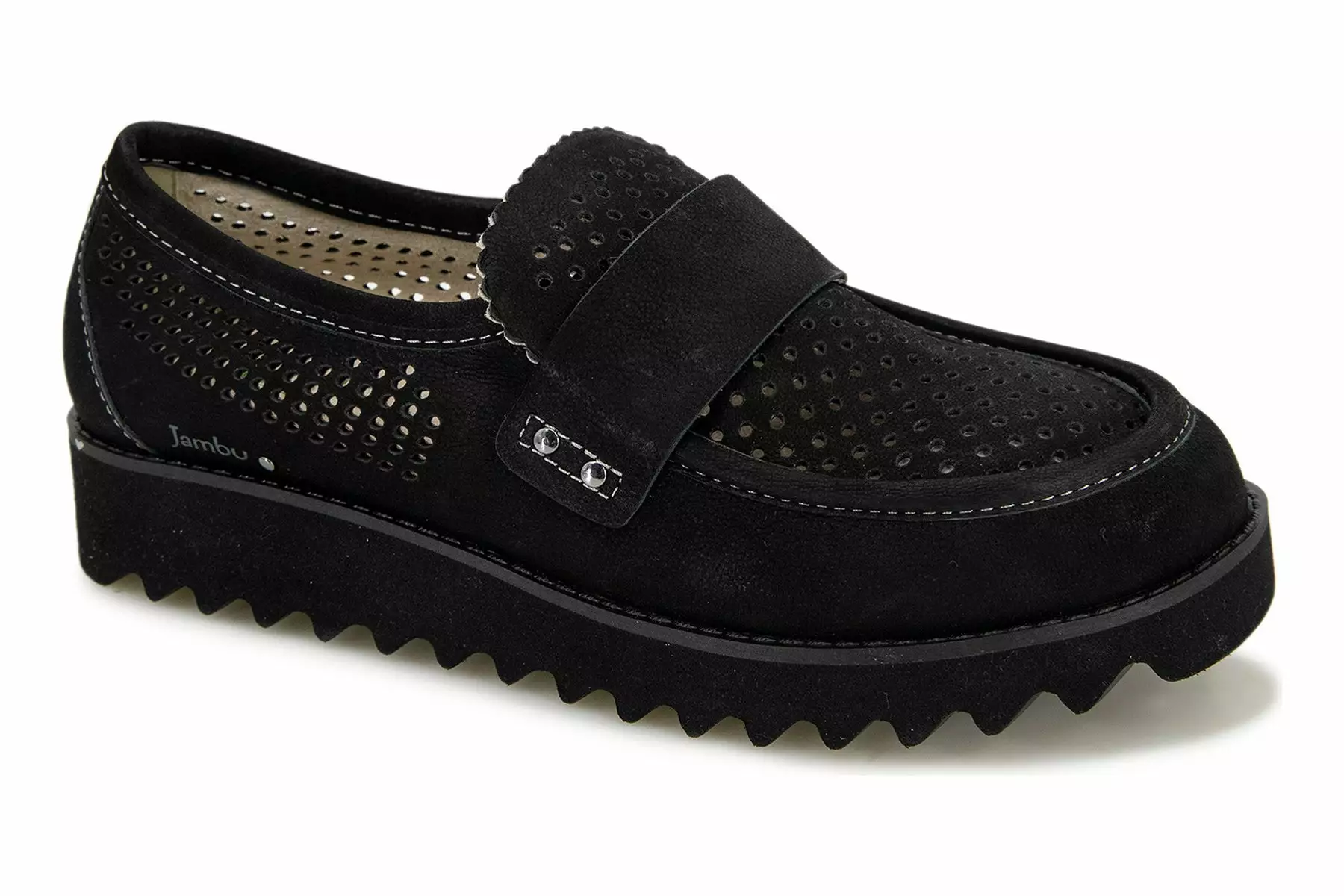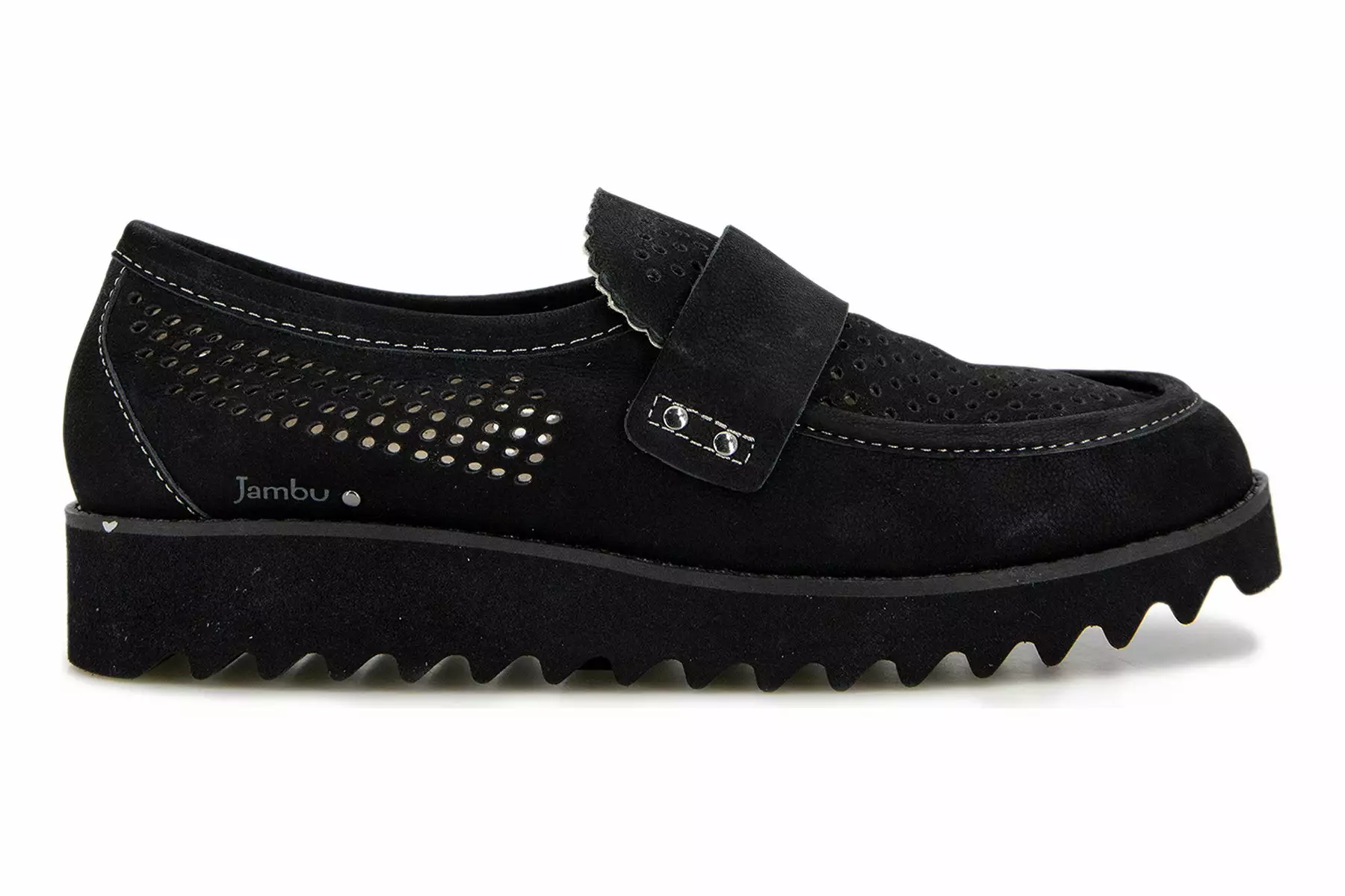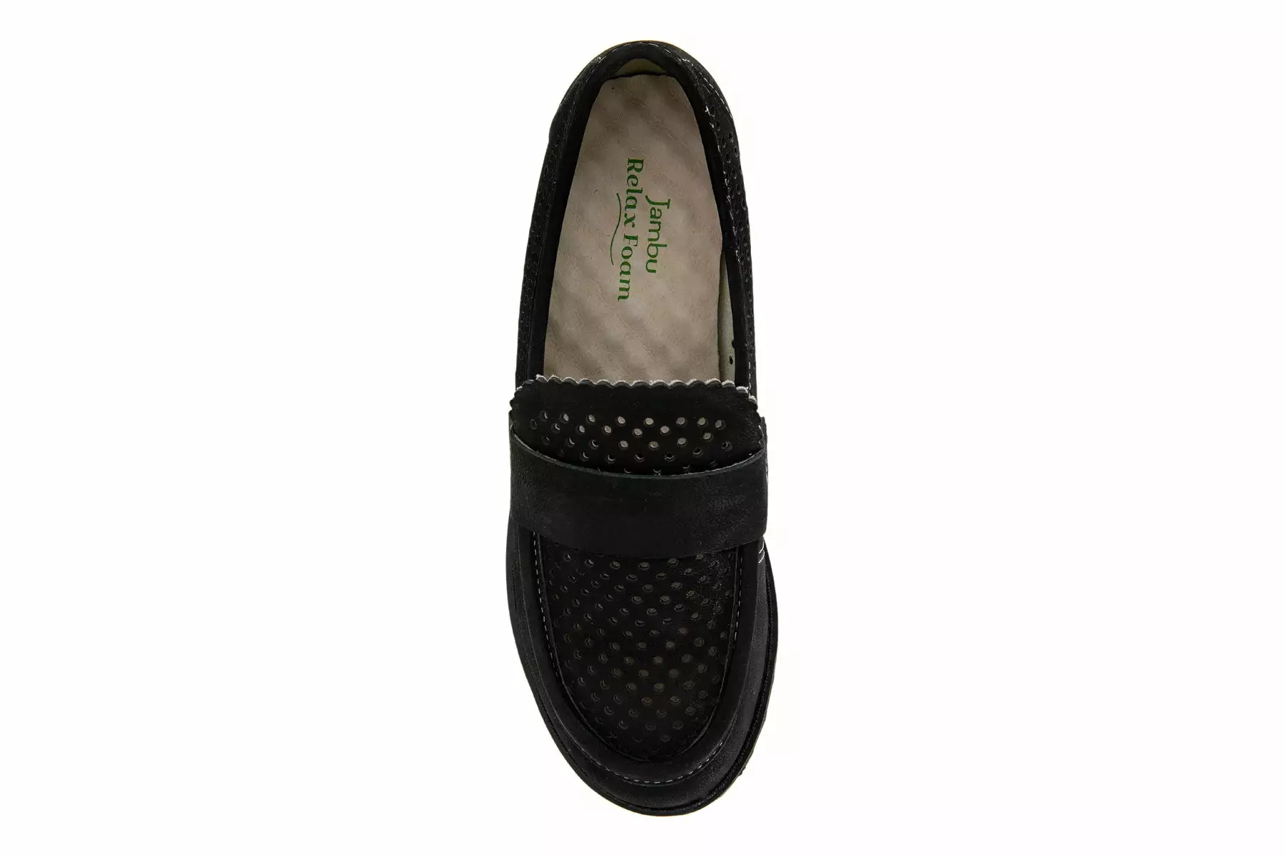 Pair functional fashion with sleek style in the Jessie. This slip on shoe features a lightweight design with airy perforations, teeth like treads for maximum grip, and playful scalloped detailing and color blocked look.