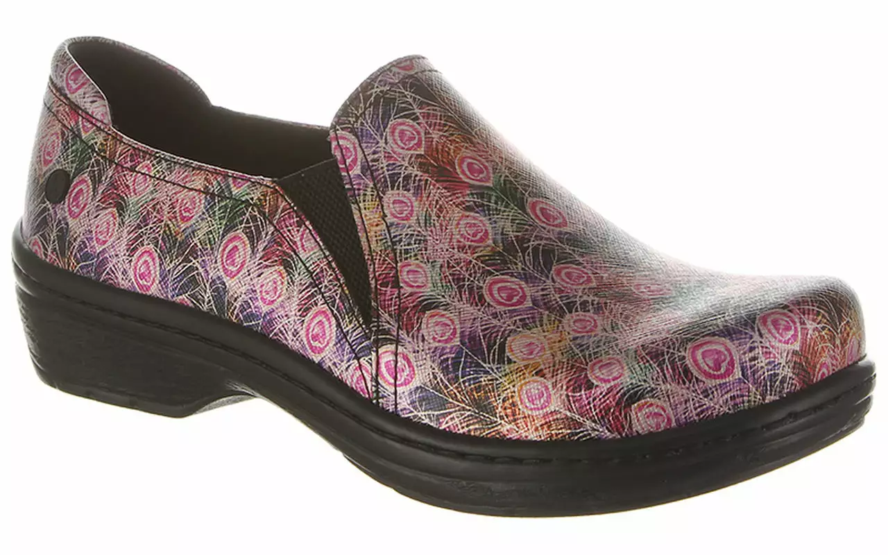 Klogs Footwear Moxy is a printed leather slip-on work shoe. These clogs have a microfiber insole, contoured footbed and durable and slip-resistant outsole. The slip-resistant TRUBase™ outsole provides a superior grip and microfiber, latex-free TRUComfort™ insole cradles and cushions, helping to reduce foot, back, and leg pain. This closed-back clog has dual goring for comfort and is perfect for healthcare workers.