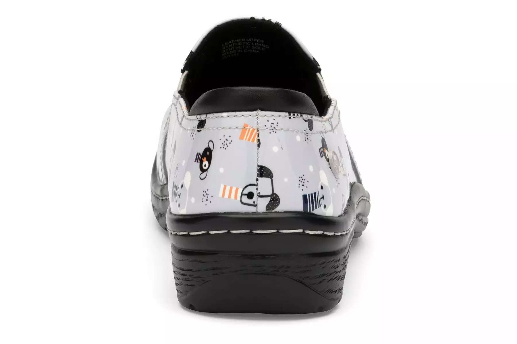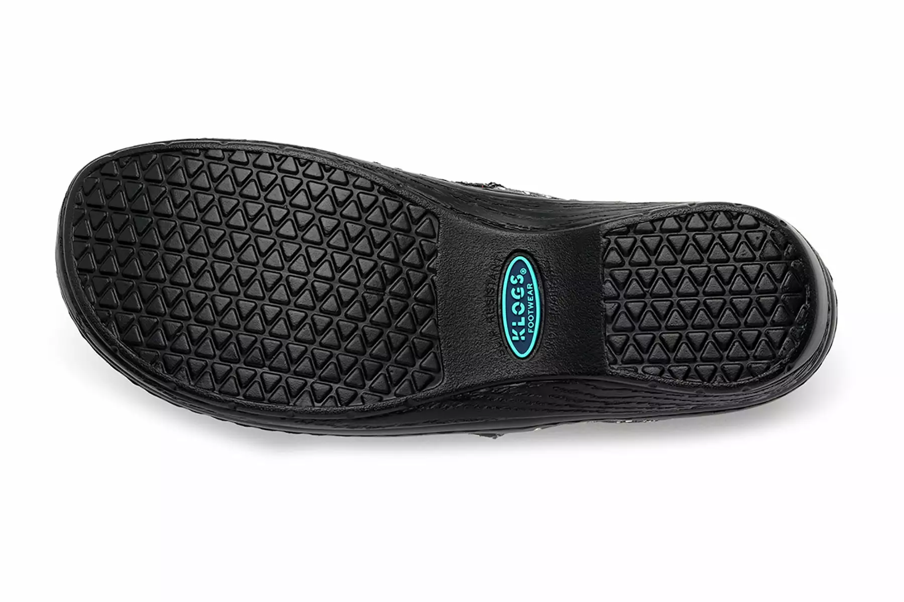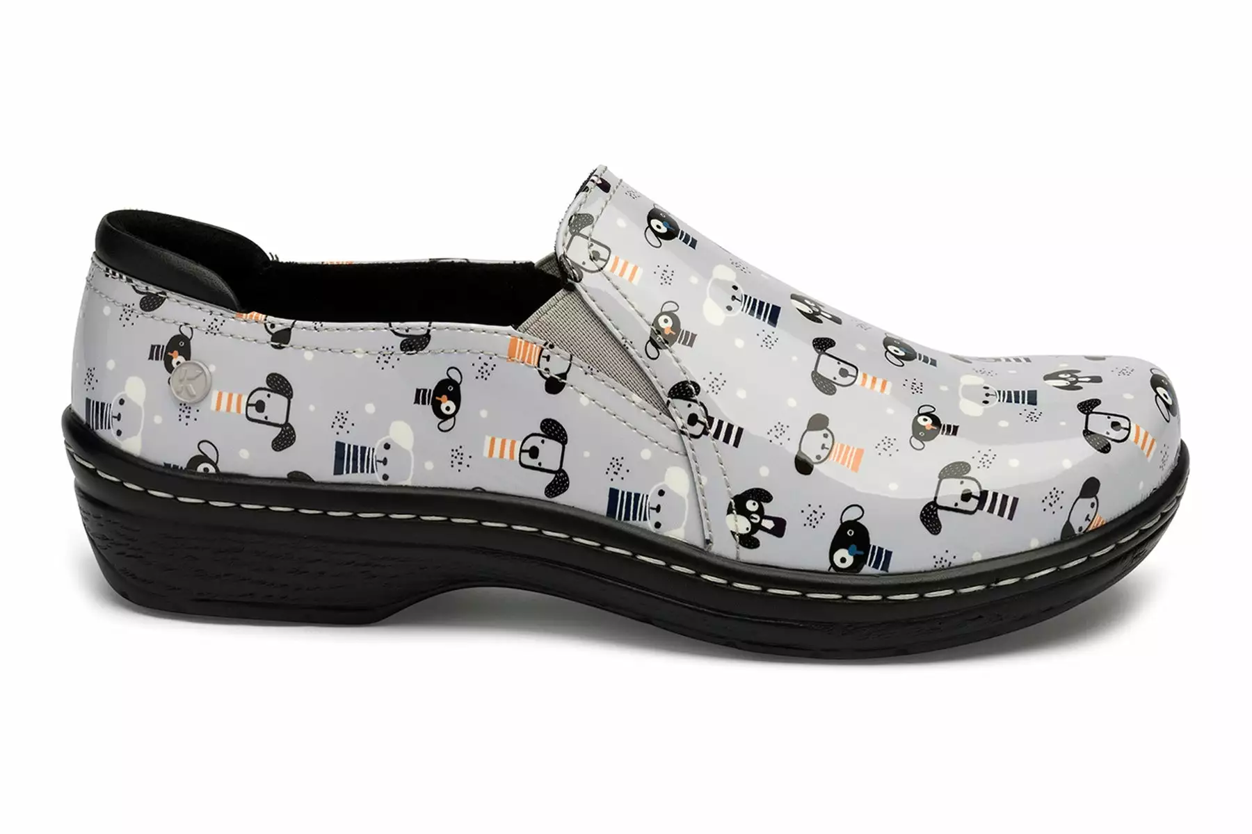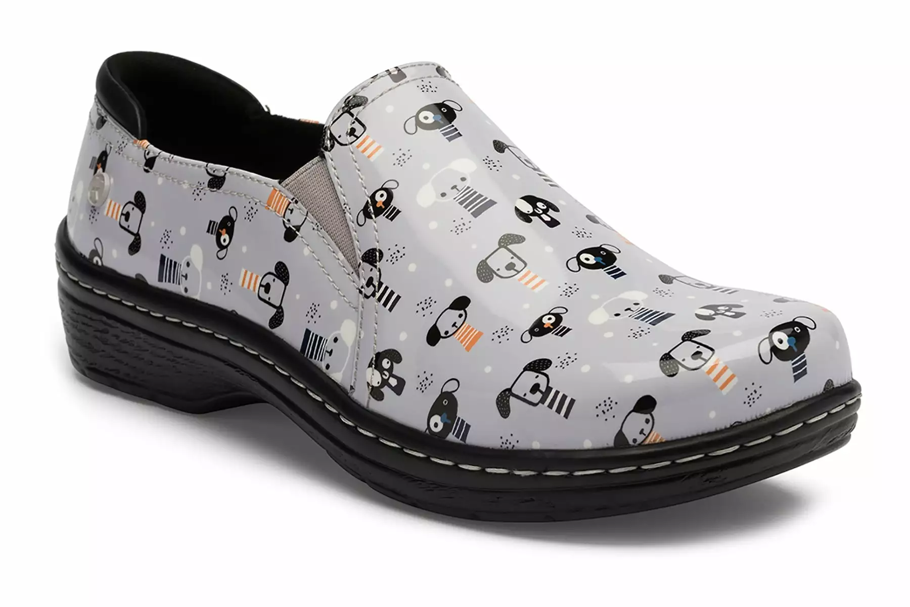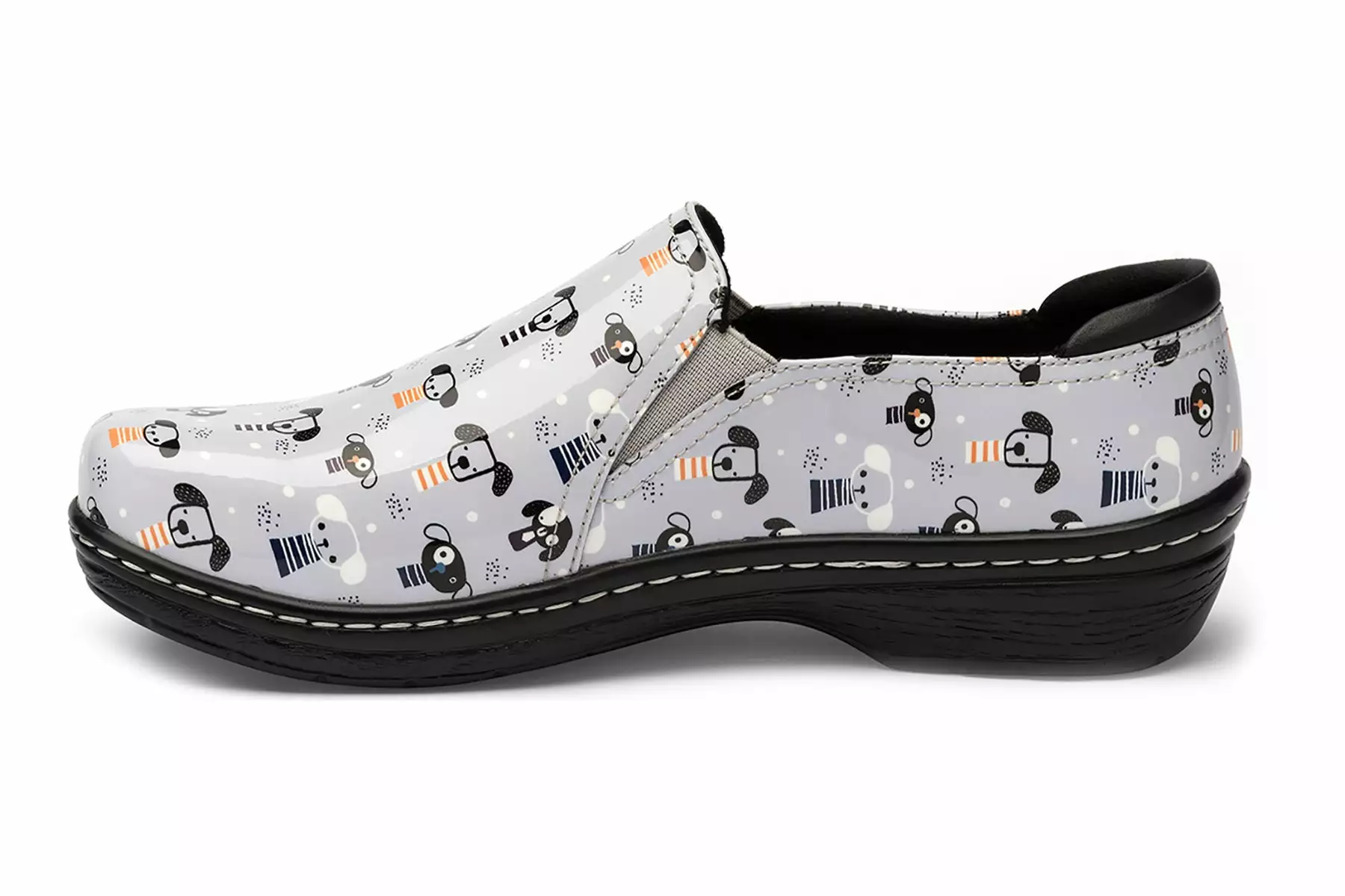 Klogs Footwear Moxy is a printed leather slip-on work shoe. These clogs have a microfiber insole, contoured footbed and durable and slip-resistant outsole. The slip-resistant TRUBaseâ„¢ outsole provides a superior grip and microfiber, latex-free TRUComfortâ„¢ insole cradles and cushions, helping to reduce foot, back, and leg pain. This closed-back clog has dual goring for comfort and is perfect for healthcare workers.
