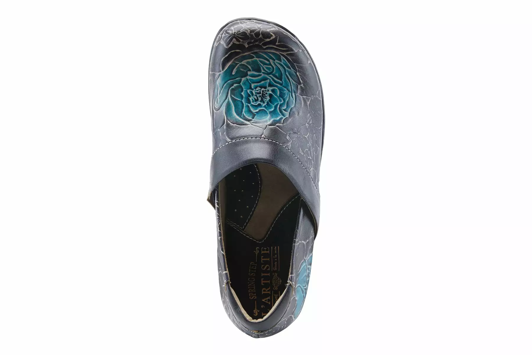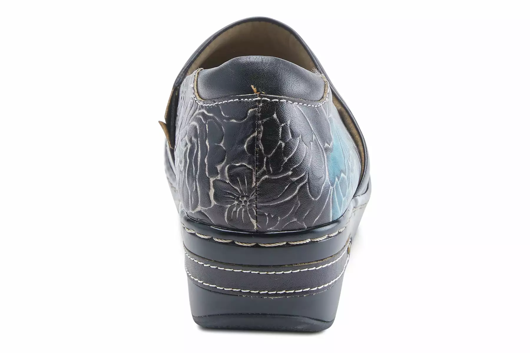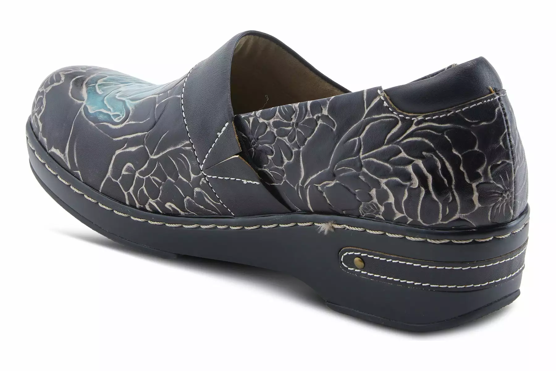 L`Artiste Style: Elkayjay -Premium hand selected embossed leathers featuring hand painted rose design in soft but striking contrast colors. Inside stretch “V” gore for easy Slip-on convenience and so much soft interior padding you’ll forget you’re wearing shoes!