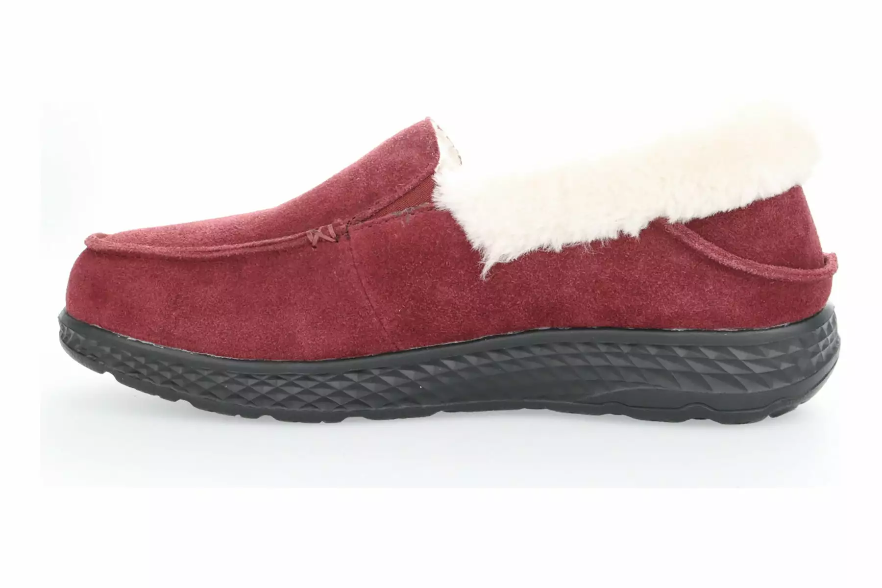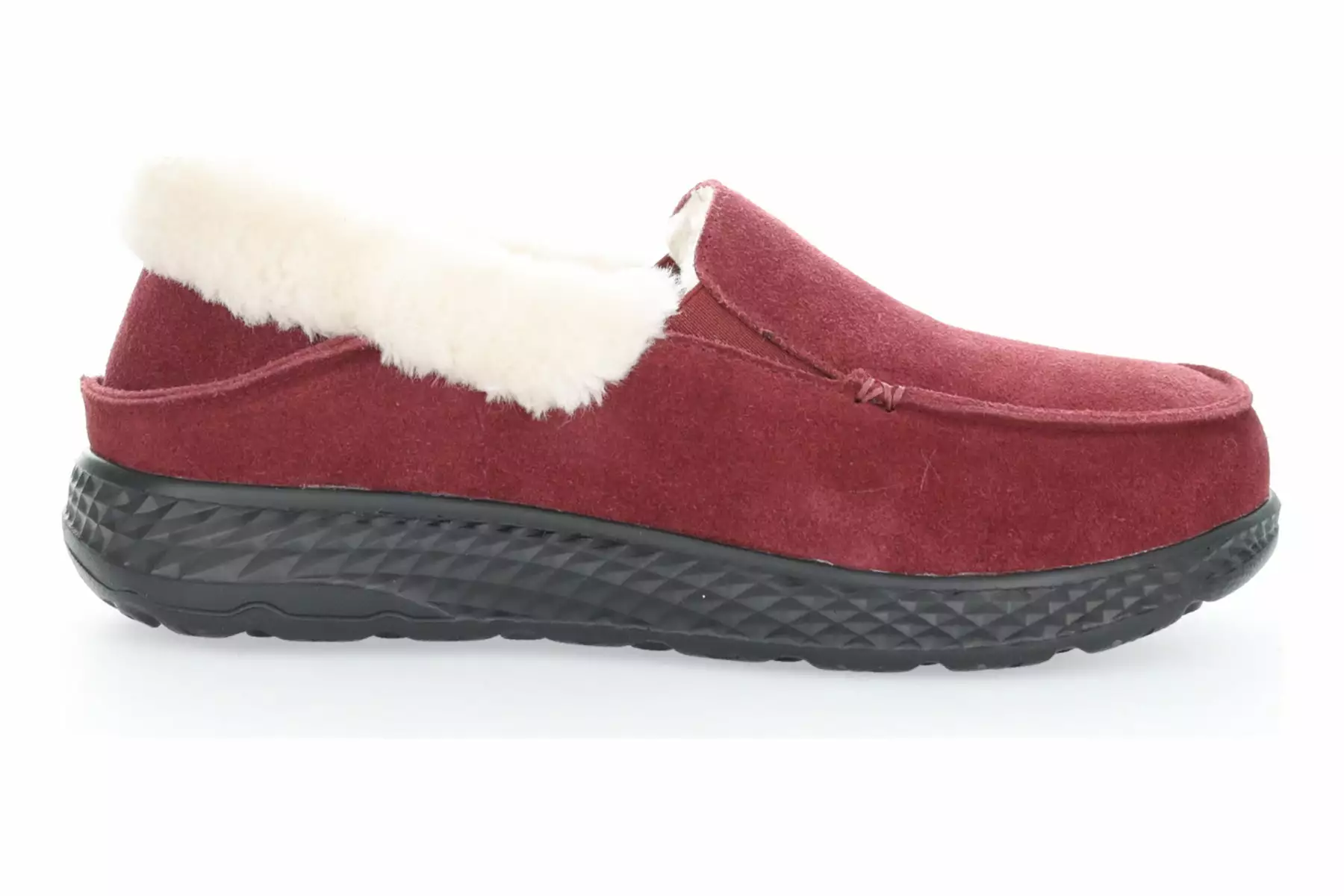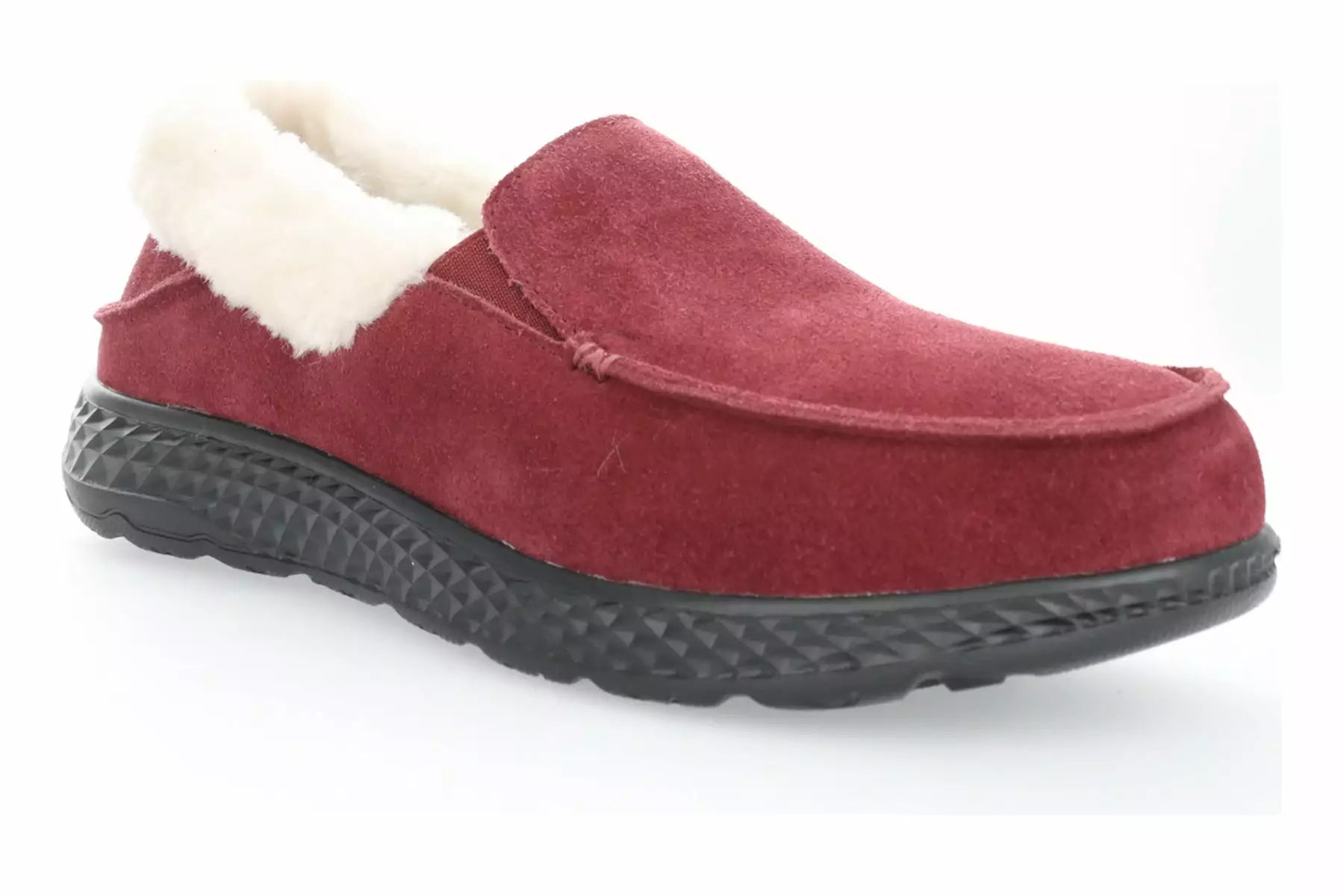 Propet Britt is a cozy, warm weather women’s slipper. These comfortable shoes have suede uppers, faux fur lining, removable footbed and EVA and rubber outsole. A moc toe construction, deep tread pattern and twin gores come together to create the only house slipper you’ll ever need.