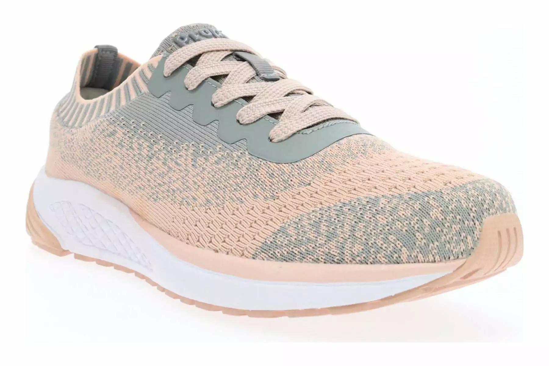 Propet EC is a comfortable active sneaker. These trendy and dependable shoes have a knit mesh upper, removable textile insole, EVA midsole and rubber tread. A round toe silhouette offers a roomy toe box, while a padded tongue and lining provides added comfort.