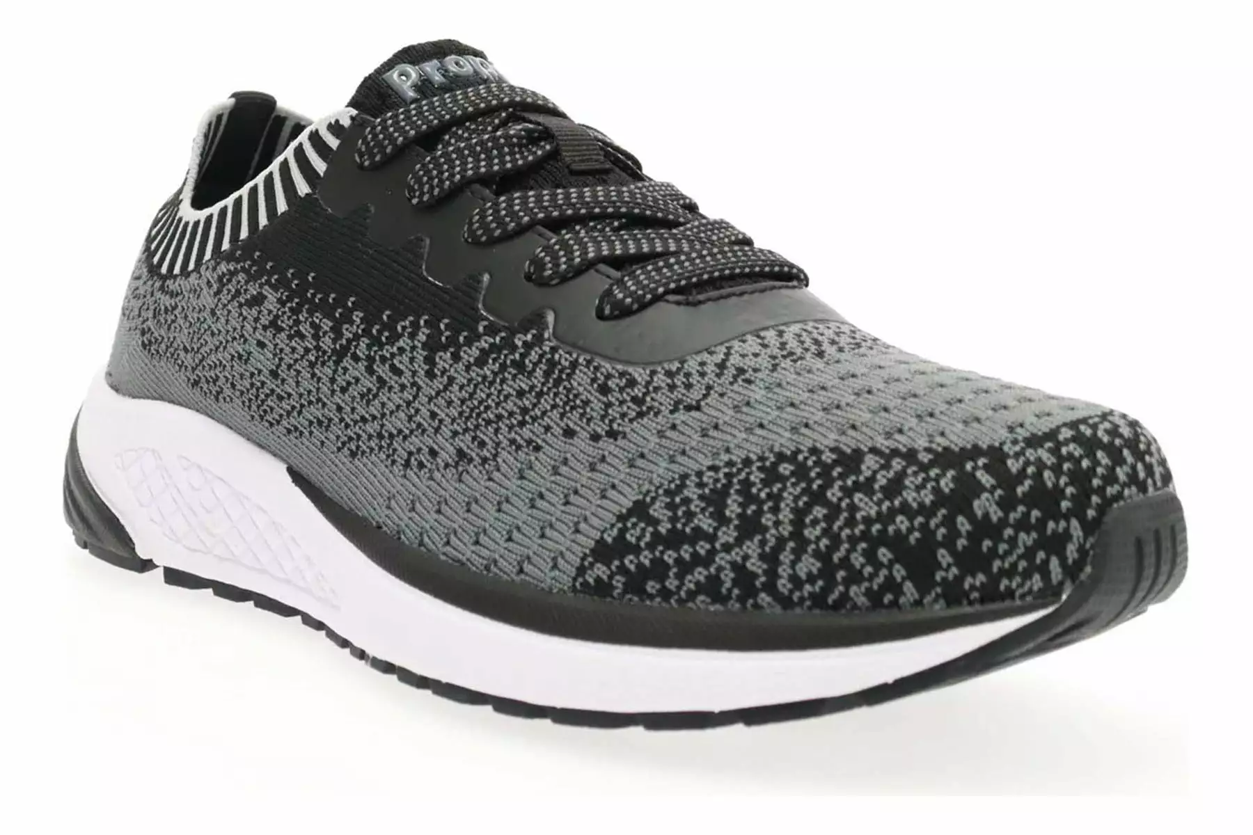 Propet EC is a comfortable active sneaker. These trendy and dependable shoes have a knit mesh upper, removable textile insole, EVA midsole and rubber tread. A round toe silhouette offers a roomy toe box, while a padded tongue and lining provides added comfort.