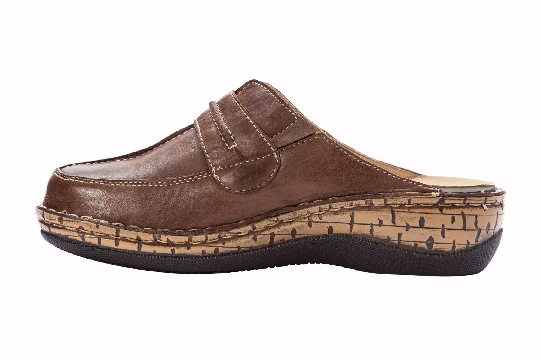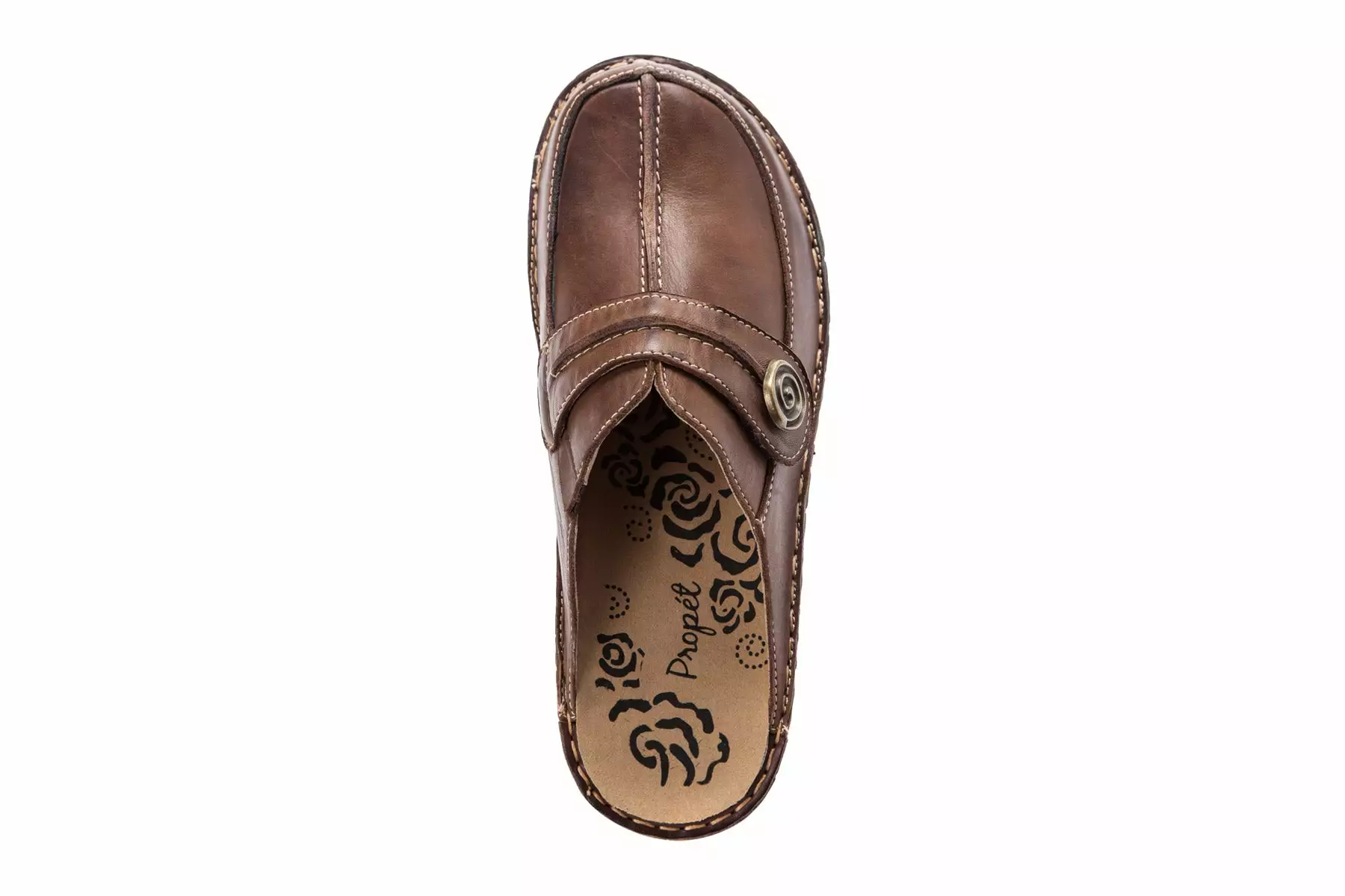 Slide into the women’s Propet Jana clog and experience all-day comfort. The full-grain leather upper is adorned with a decorative strap for added style. The removable OrthoLite® footbed accommodates custom orthotics, while the durable polyurethane outsole provides traction.