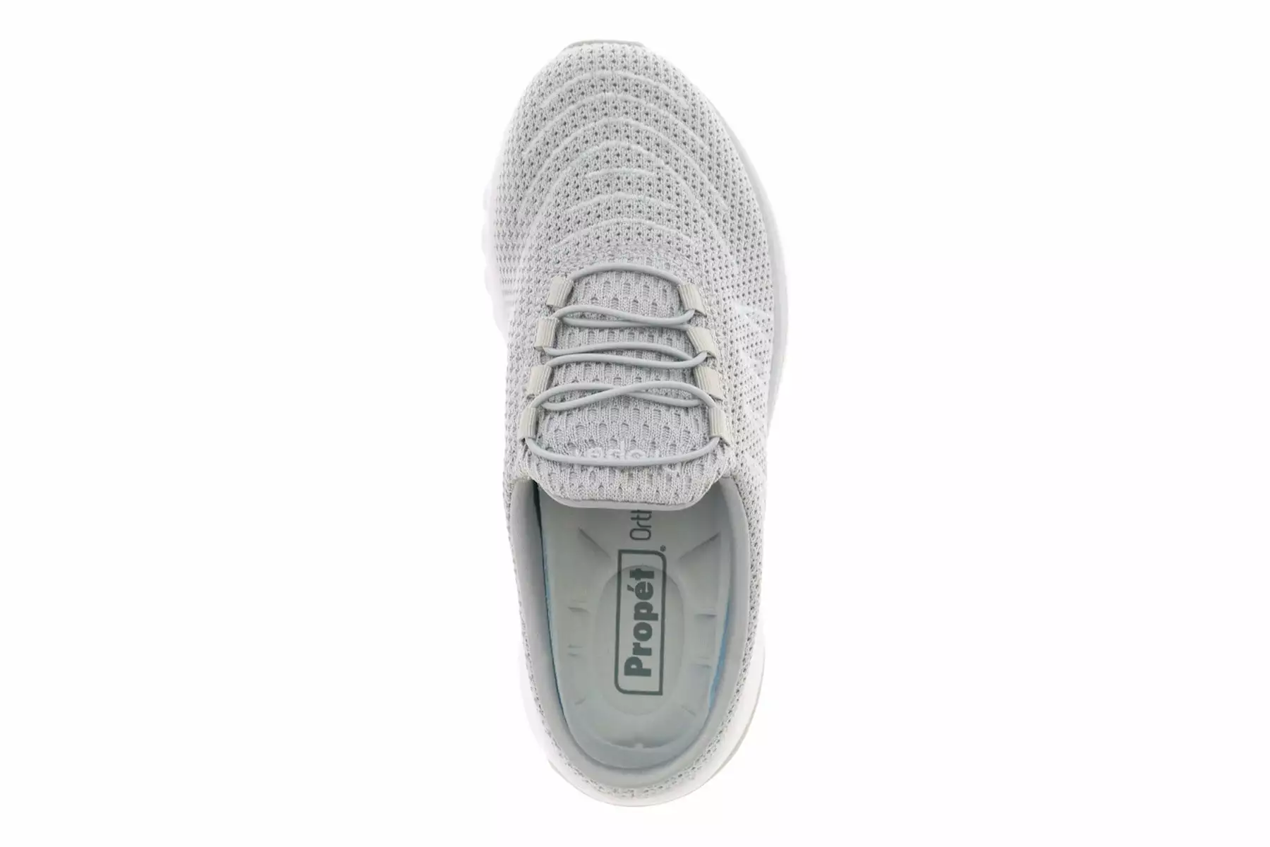 Propet Tour Knit Slide is a comfortable open back sneaker. These active slides have breathable knit uppers, lightweight EVA midsoles and rubber treads. X25â„¢ Open Cell foam adds superior cushioning, while a deep toe box and extra depth accommodates many different feet.