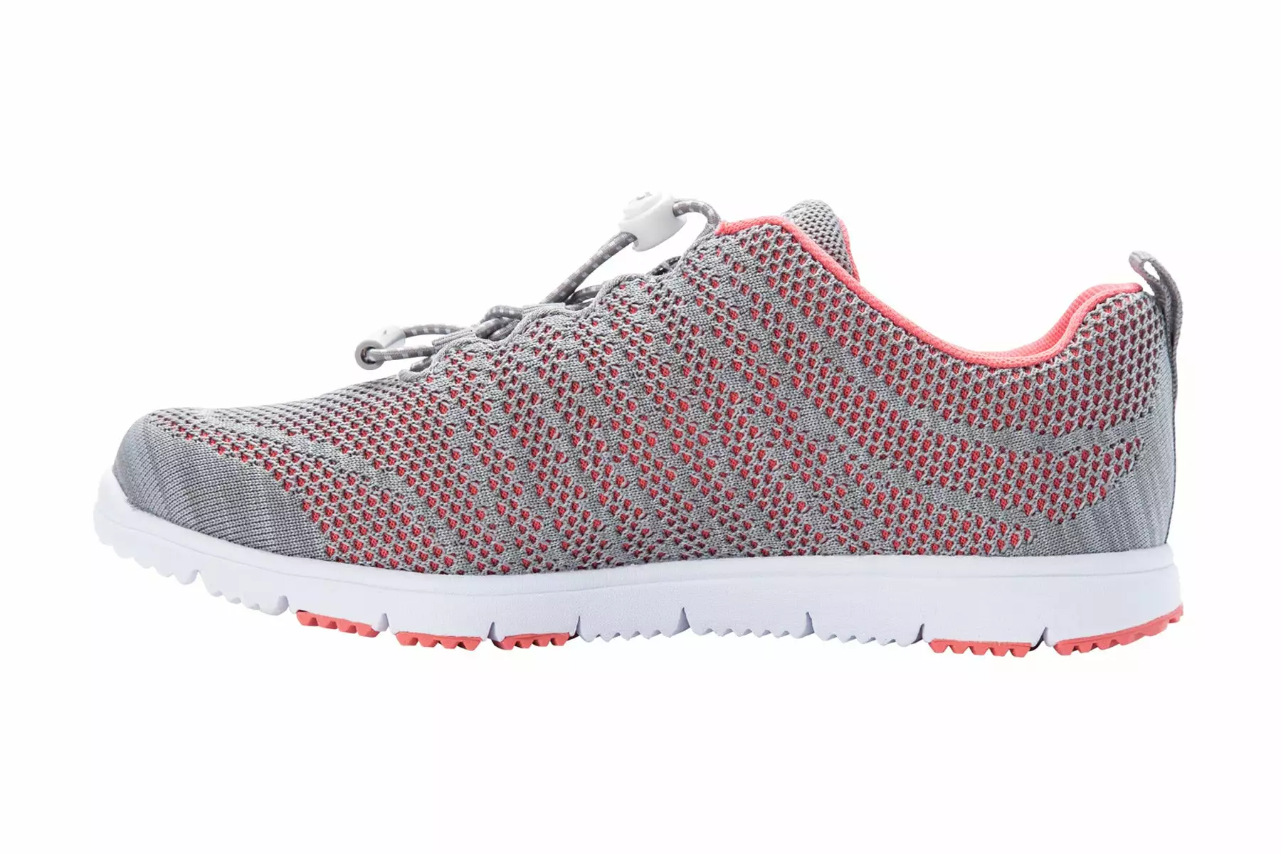 Go anywhere in the women’s Propet Travel Walker Evo! The breathable knit and mesh upper features a toggle lacing system for convenience. The cushioned footbed is easily removed to accommodate a custom orthotic, while the durable rubber outsole provides traction and stability. The Travelwalker will keep your feet dry and comfortable on all of your outdoor excursions.