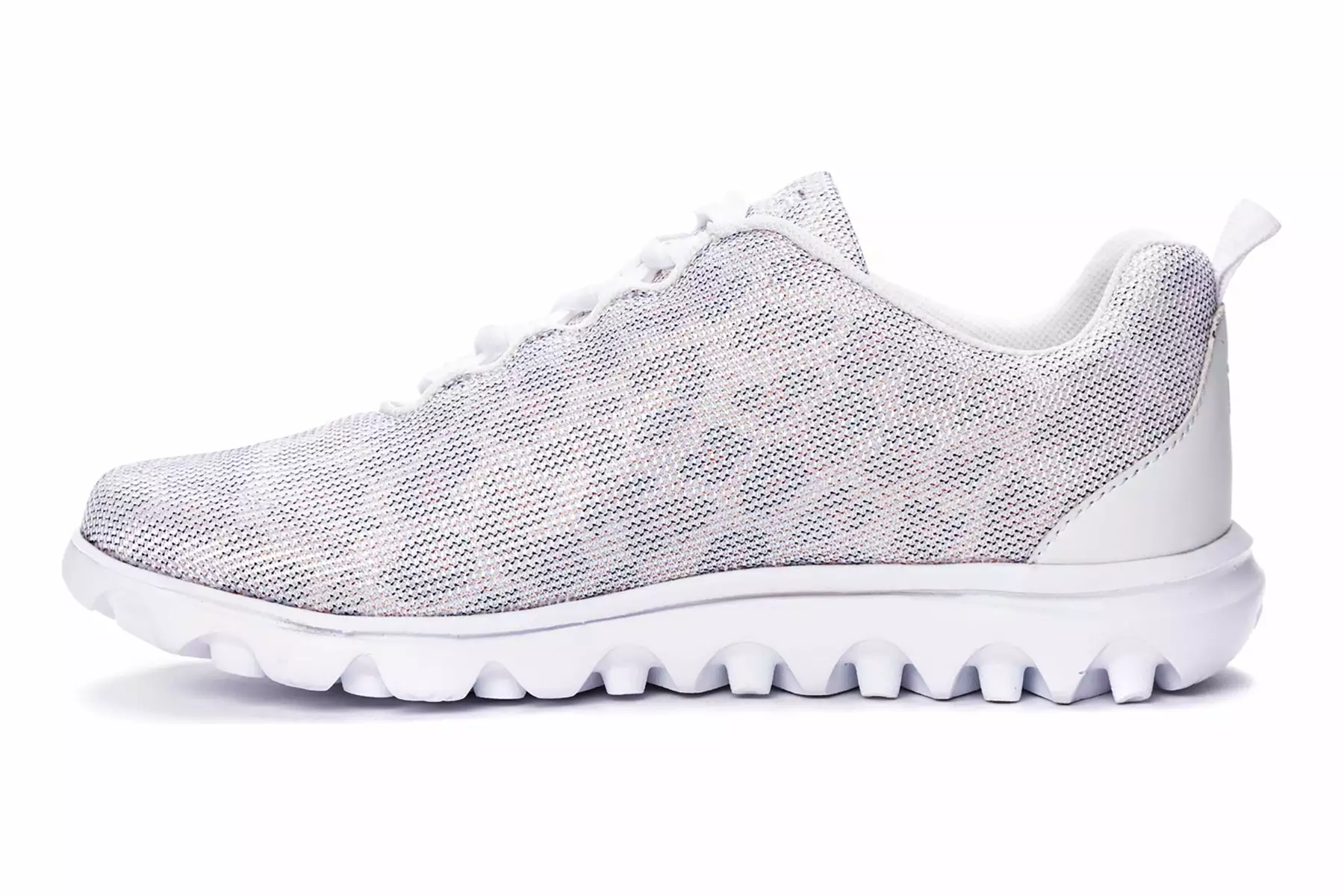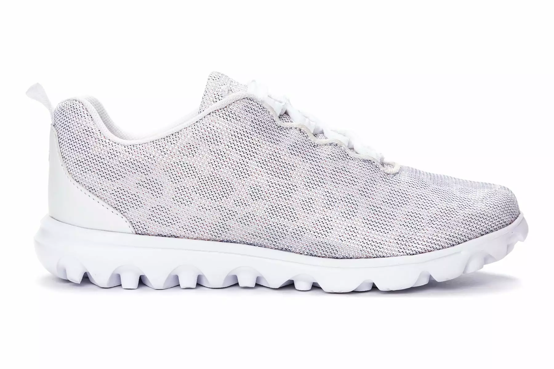 Precision knit upper with mesh lining and adjustable elastic lacing with toggle. Arch supporting high density Open Cell PU foam allows air to flow for a cooler, healthier footbed. The lightweight TravelTek outsole combines EVA and rubber for long lasting wear and a deep tread pattern for traction.