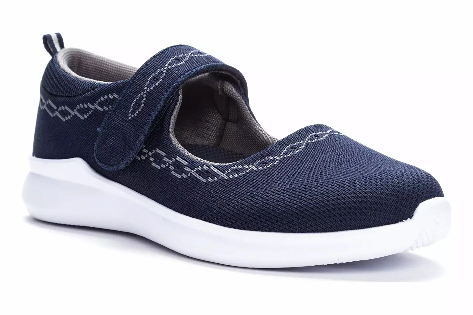 Jersey mesh upper with hook and loop strap and firm heel counter. Arch supporting high density Open Cell PU foam allows air to flow for a cooler, healthier footbed. Thermally controlled rubber provides long lasting responsive cushion that keeps feet energized.