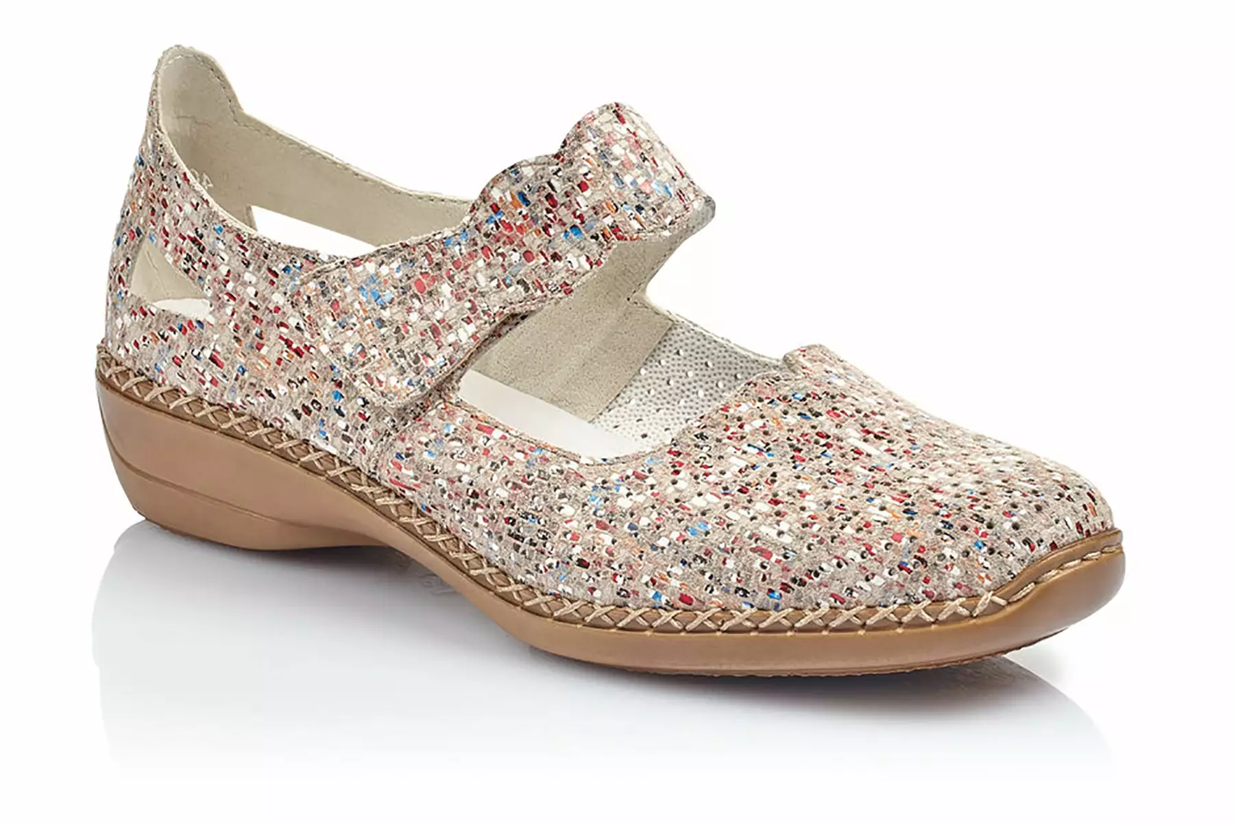The women’s Rieker Doris J2 mary jane features an adjustable hook and loop strap for a secure and customized fit. The premium leather upper is embellished with a pattern of laser cutouts for added flair.