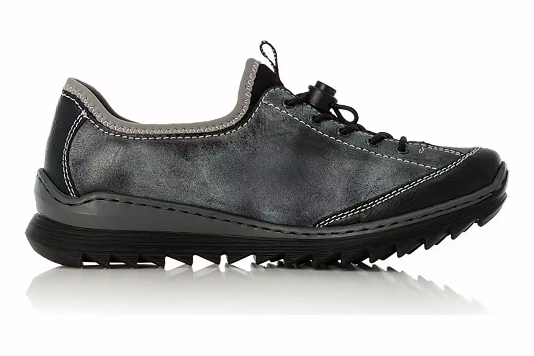 The M6269 lace-up sneaker from Rieker is a combination of fashion and function. Sporty, yet casual, this shoe has a soft synthetic upper enhanced with a padded knitted collar which snuggles against your foot. The trendy rubberized outsole is saw-toothed for extra grip while the 37mm heel gives just the right amount of lift. An adjustable toggle with bungee lace ensures the perfect fit while the memo soft cushioned insole provides superior all-day comfort.