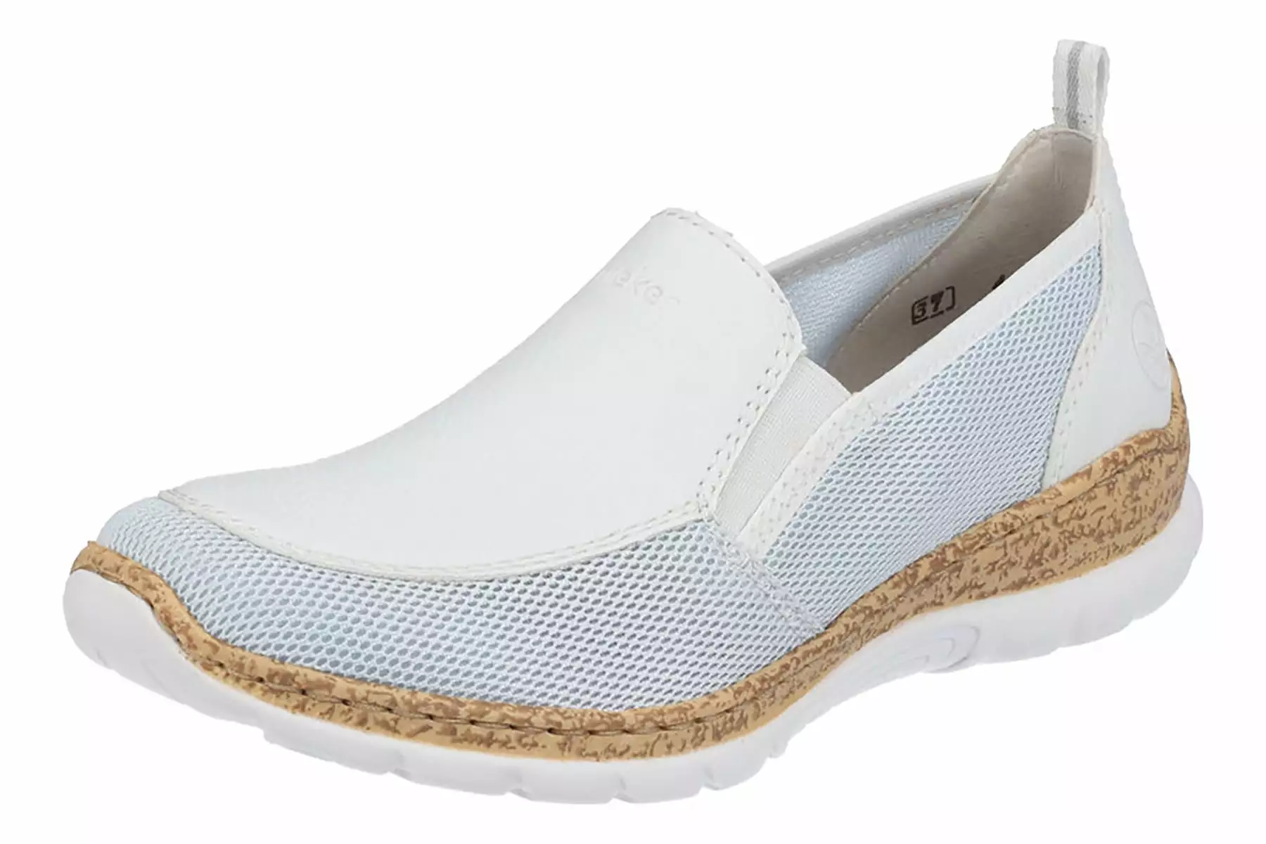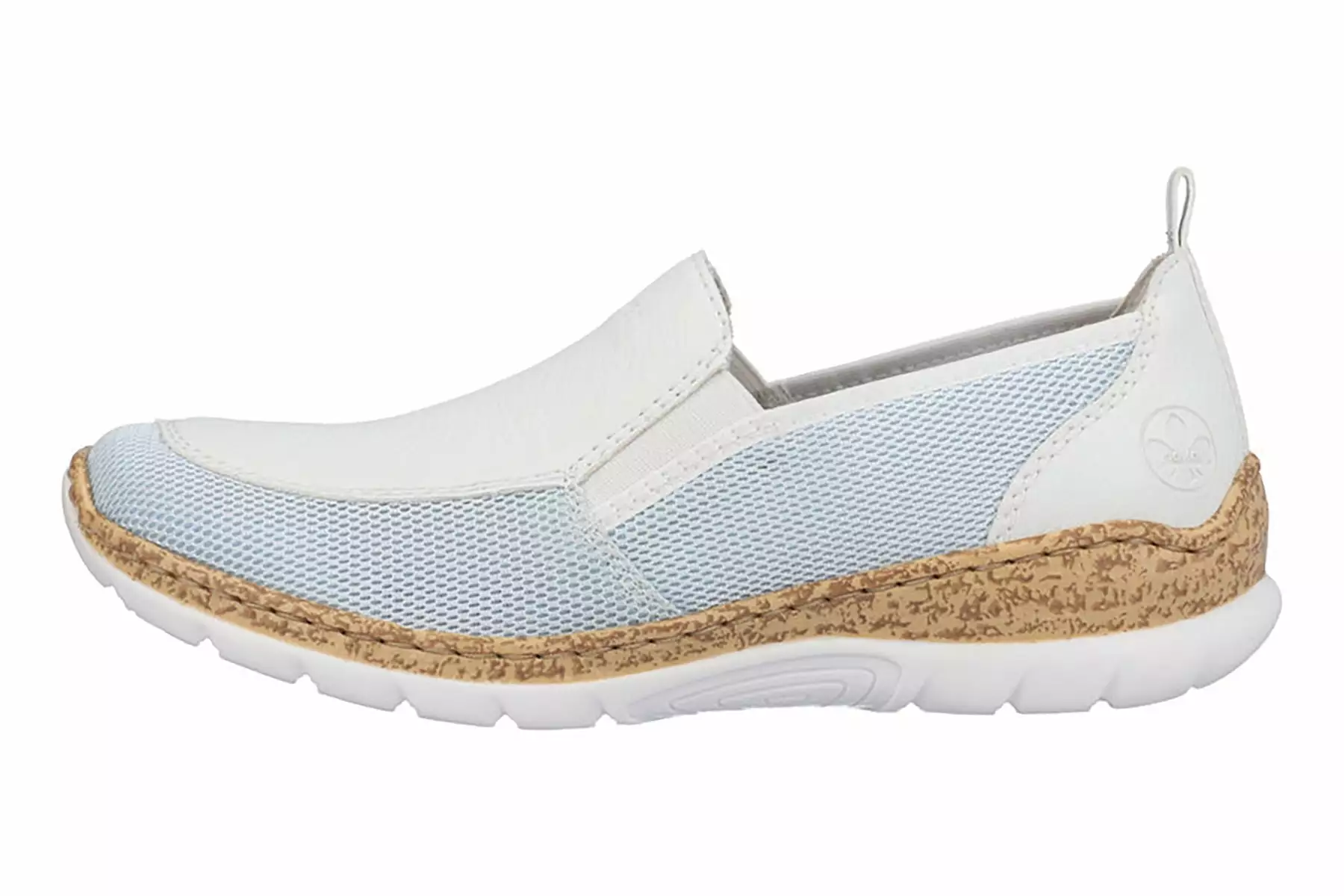 Rieker Nikita 75 offers innovative design in a women’s slip-on shoe. A colorful imitation leather upper and memory foam insole makes this casual footwear ideal for all day comfort. With synthetic lining for a snug fit and antistress footbed, the Rieker Nikita 75 will become your new favorite casual ladies shoe.