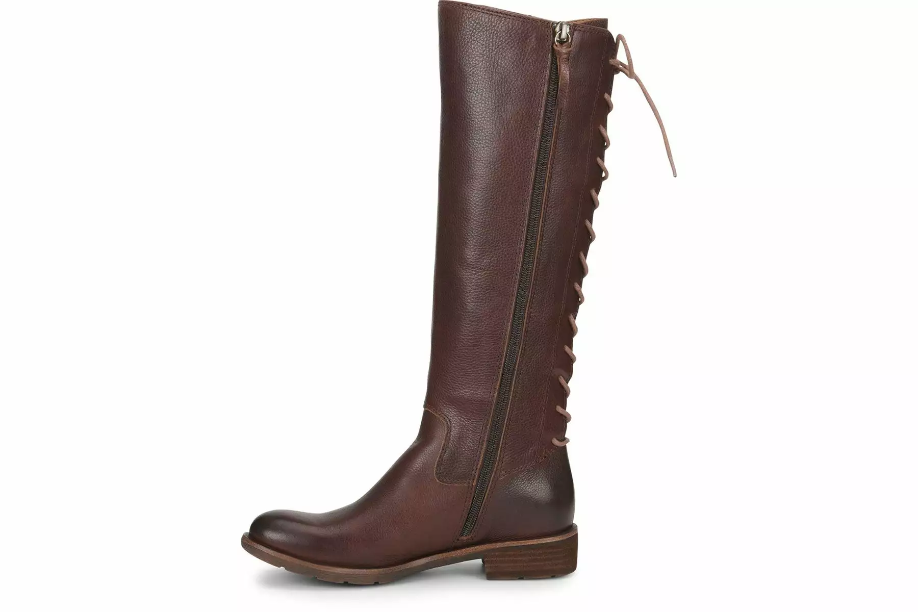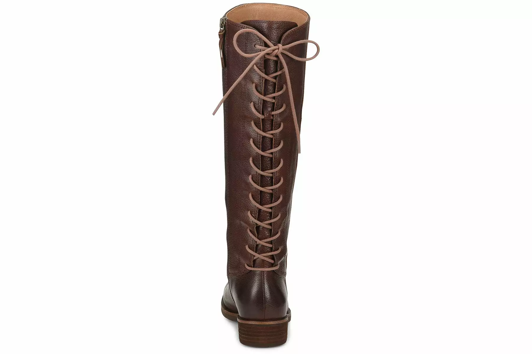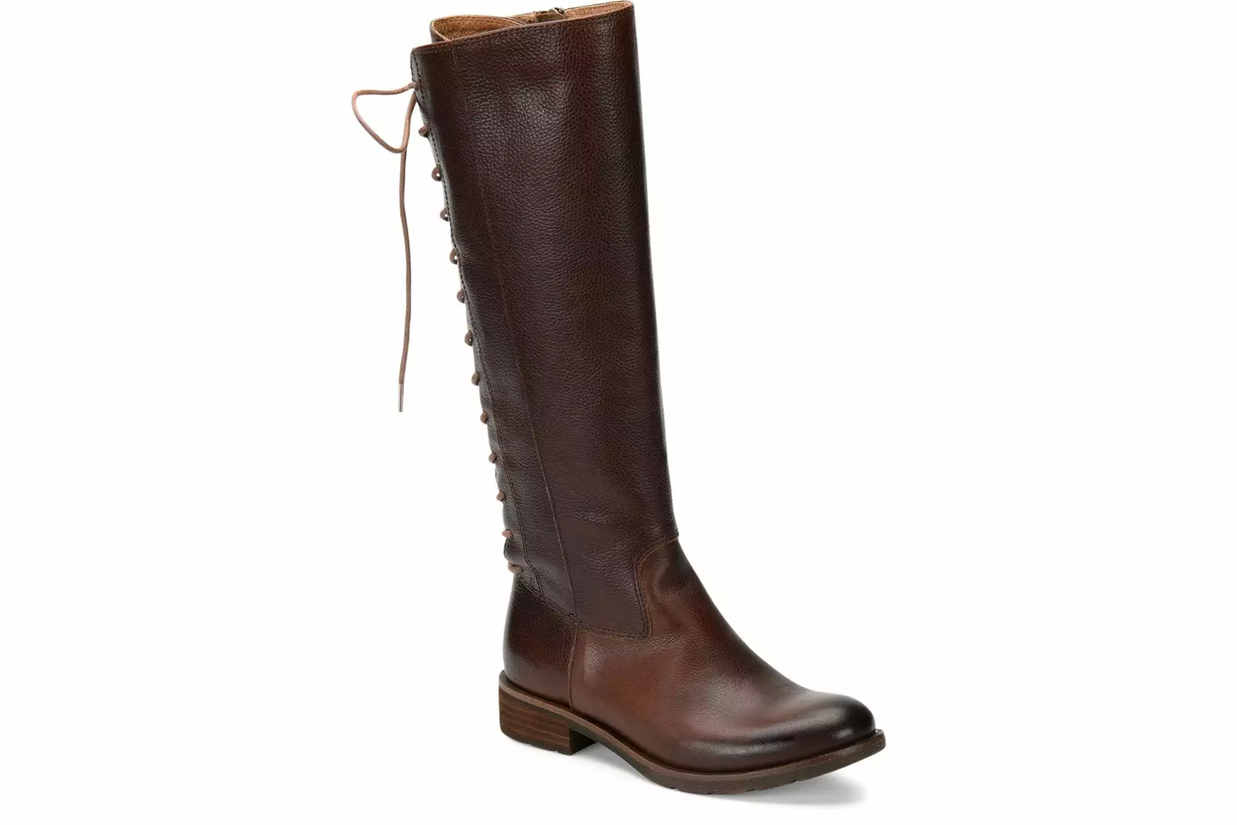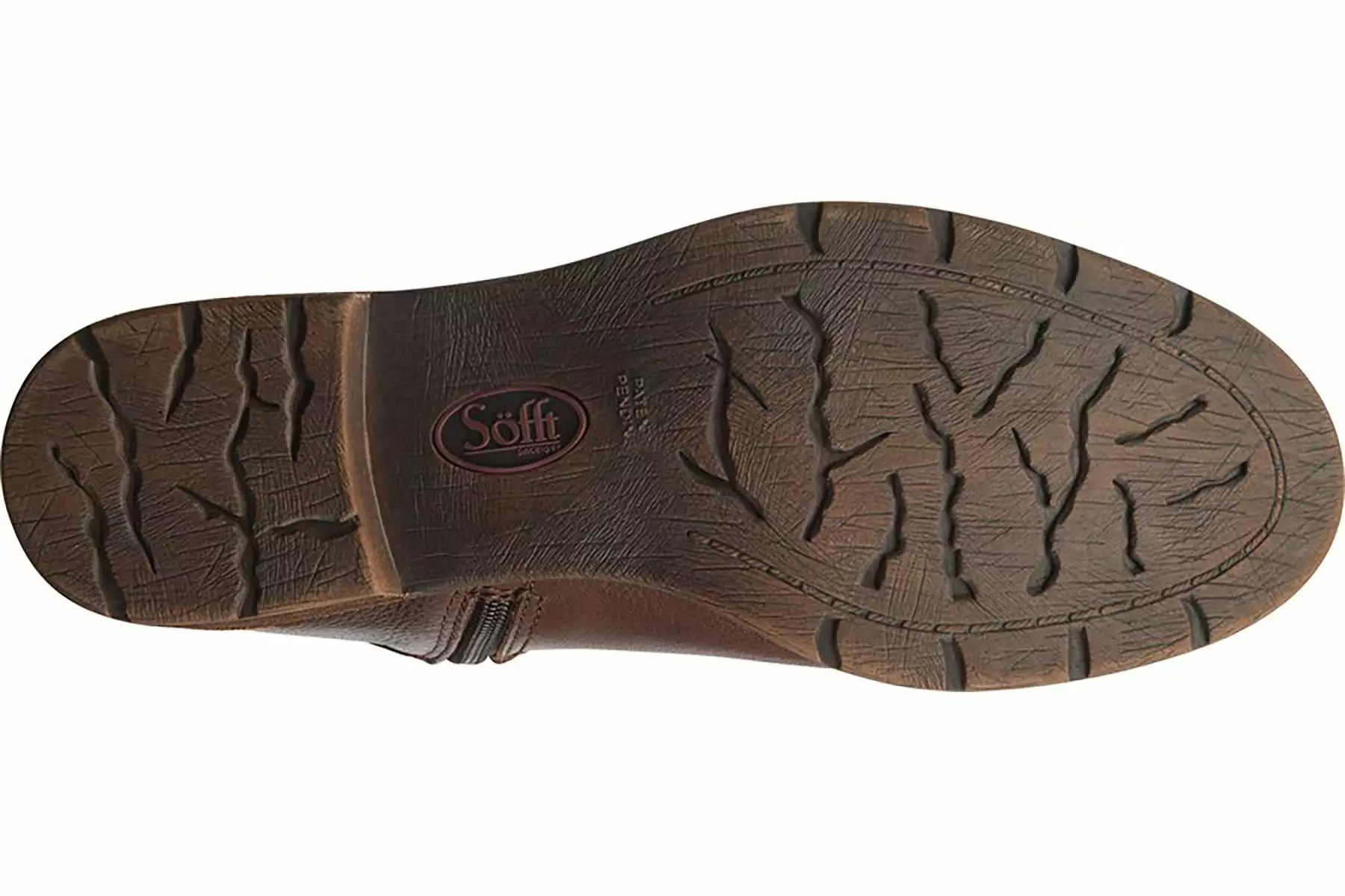 The women’s Sofft Sharnell II boot will be the perfect addition to your cold weather wardrobe. The unique lace up closure at the rear of the shaft provides a fully adjustable fit that accommodates a narrow and wider calf. A side zipper provides easy entry. The leather-covered, cushioned footbed delivers comfort in every step, while the flexible rubber outsole provides superior traction. Packed with unrivaled comfort, the Sharnell II will be a seasonal staple!