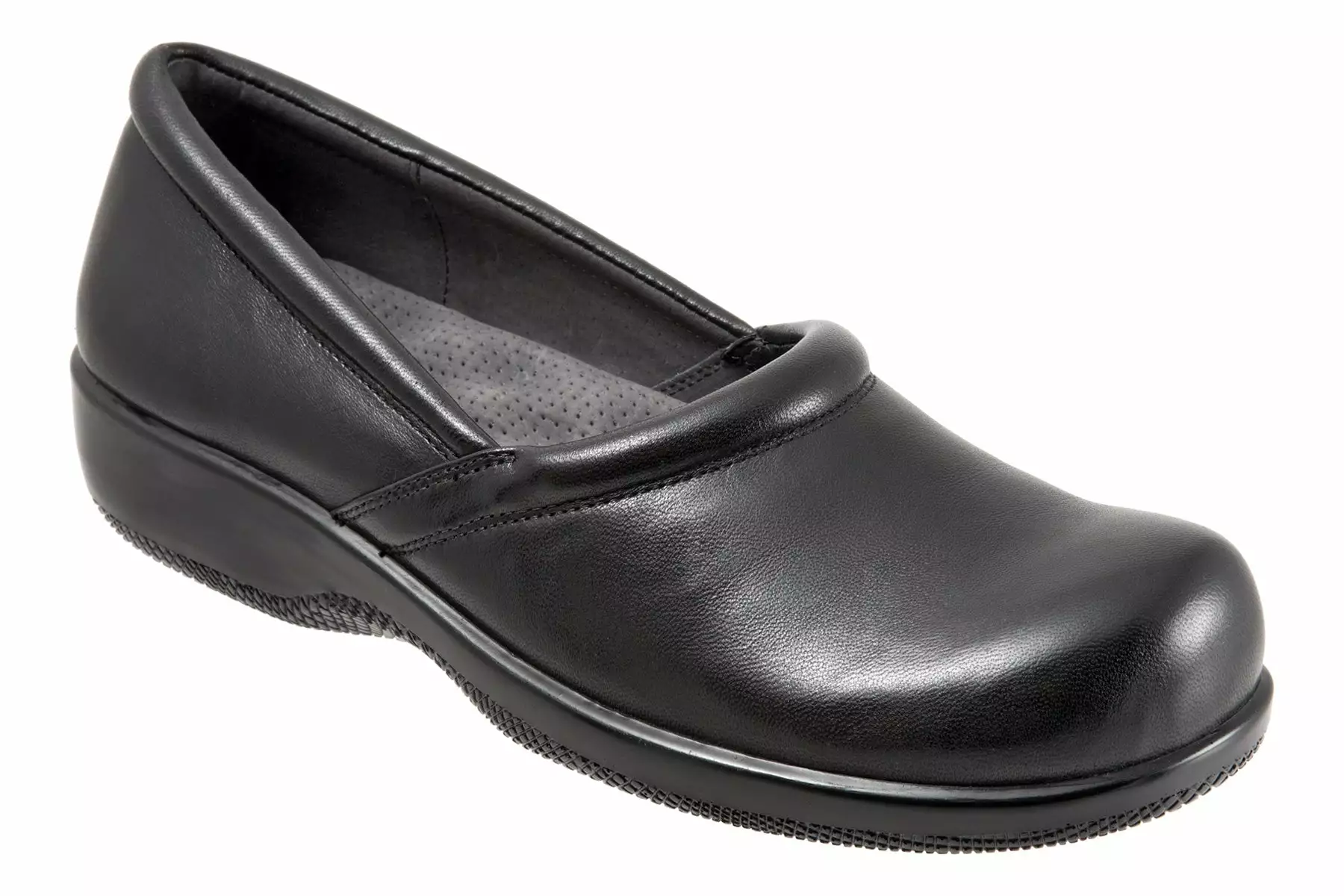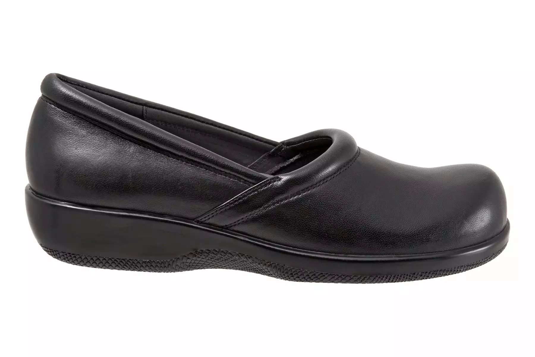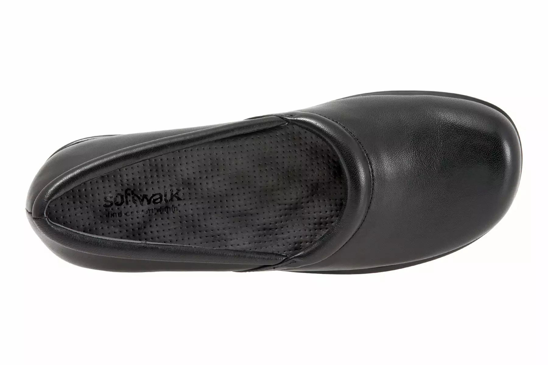 Slip into everyday style and comfort with the women’s Softwalk Adora clog. The rich leather upper features hidden gore detail to secure the foot in place. The signature eggcrate footbed cushions and contours the foot to deliver superior support and comfort where you need it most.
