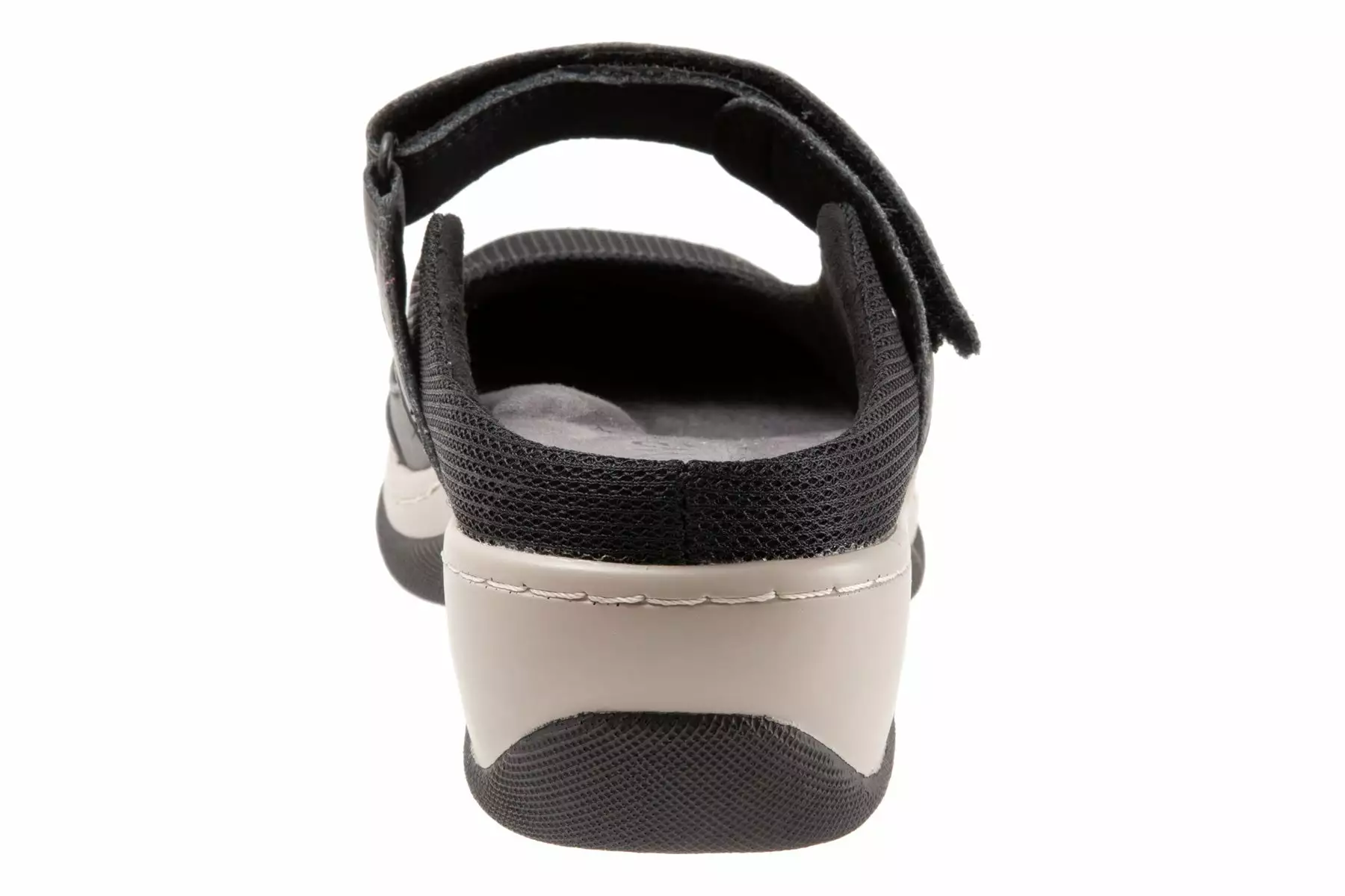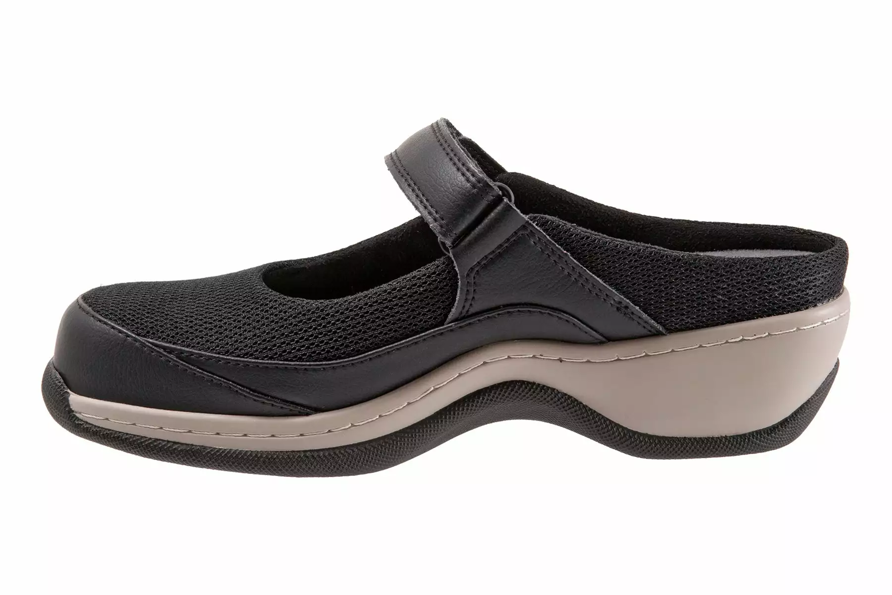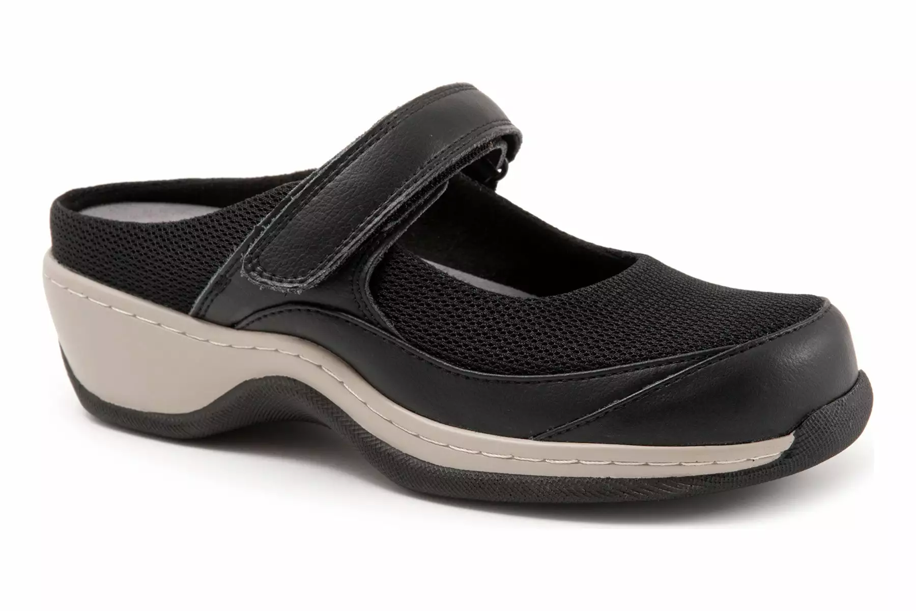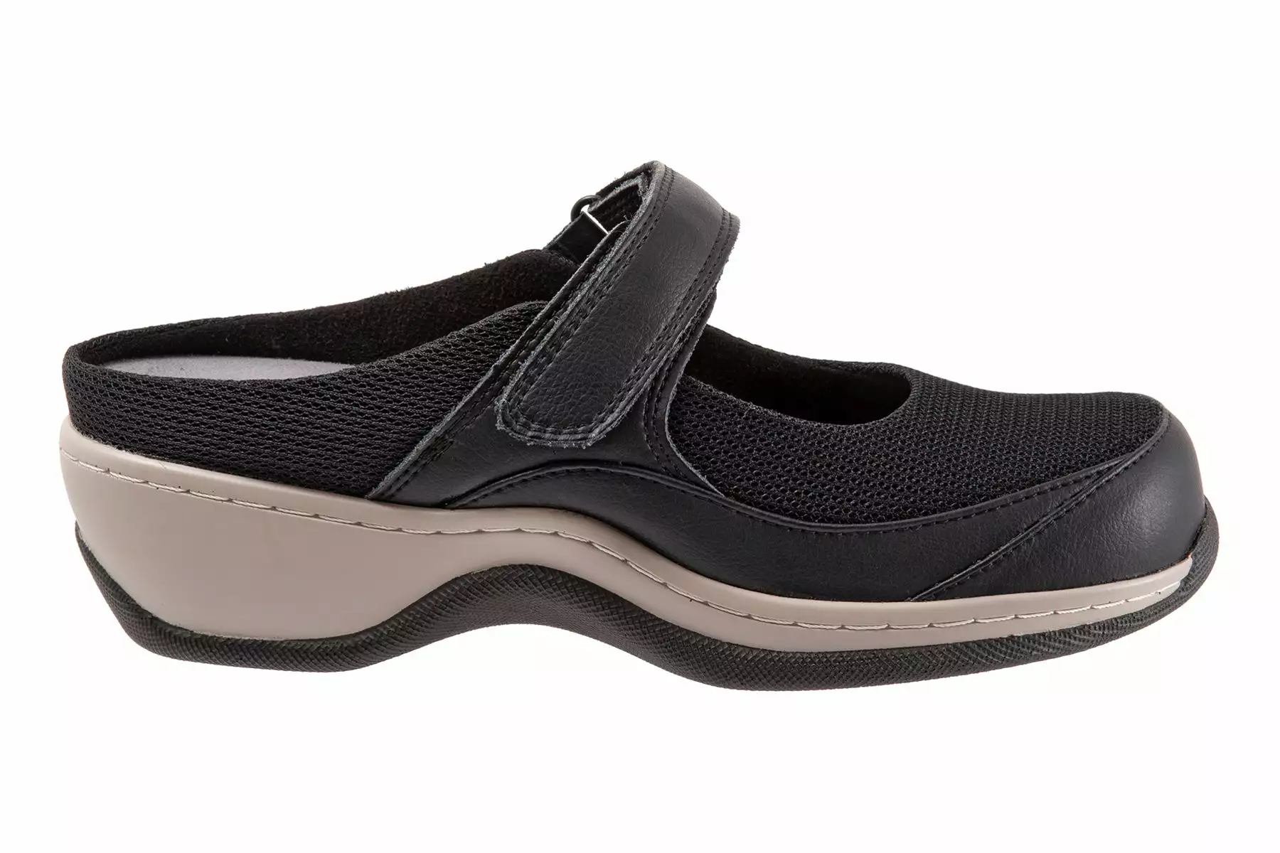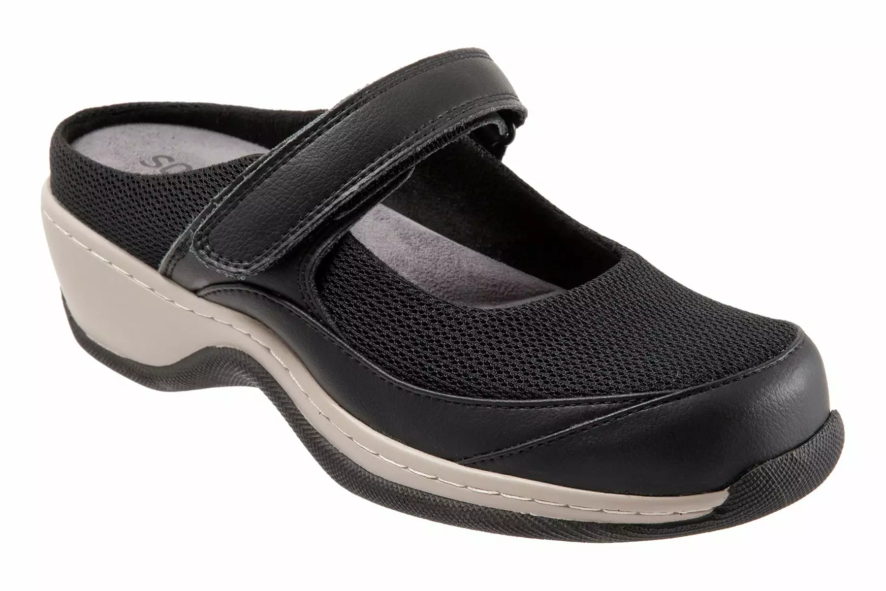 Softwalk Arcadia is an adjustable and versatile Mary Jane clog. A mesh leather upper, removable footbed, cushioned insole and PU outsole makes these clogs. An instep hook and loop strap provides support, while a memory foam cushioned midsole provides added comfort.