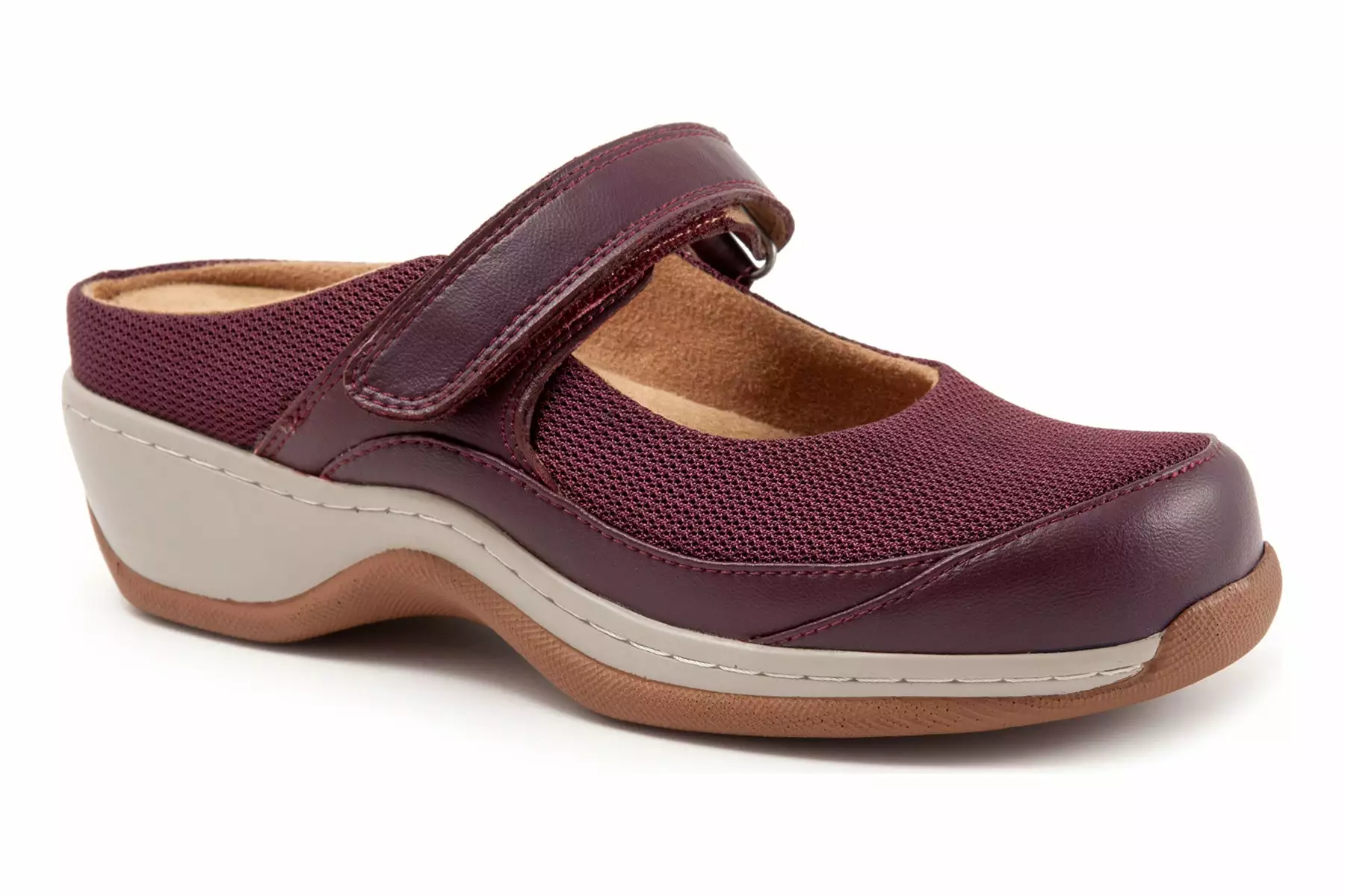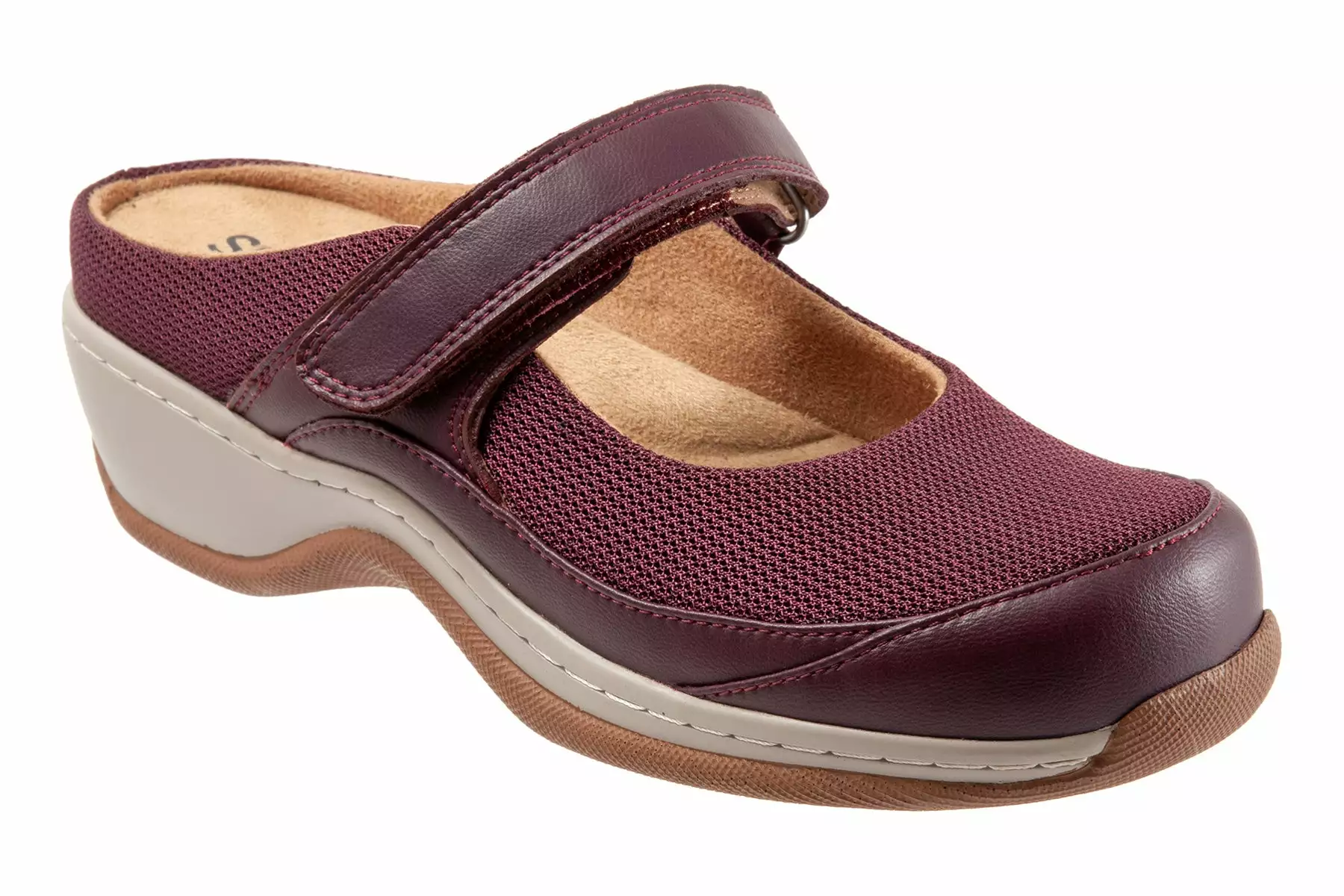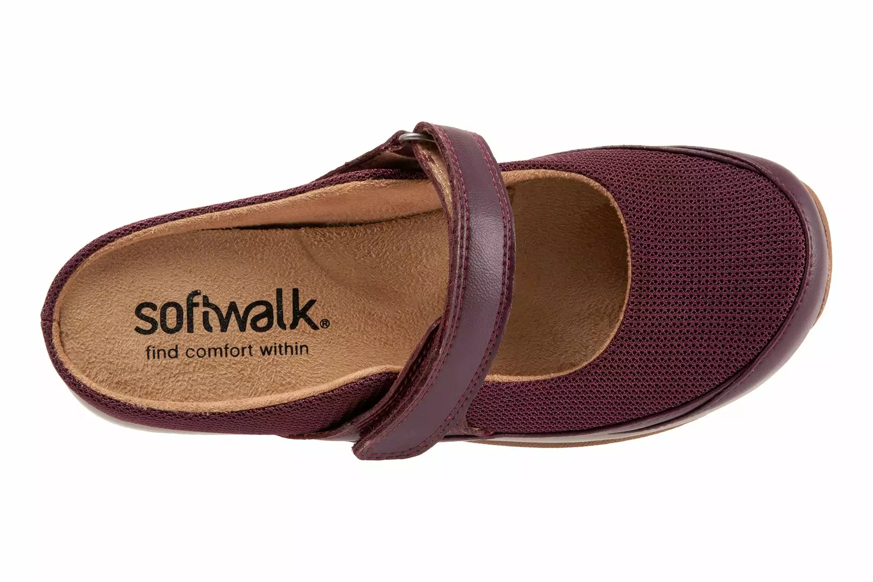 Softwalk Arcadia is an adjustable and versatile Mary Jane clog. A mesh leather upper, removable footbed, cushioned insole and PU outsole makes these clogs. An instep hook and loop strap provides support, while a memory foam cushioned midsole provides added comfort.
