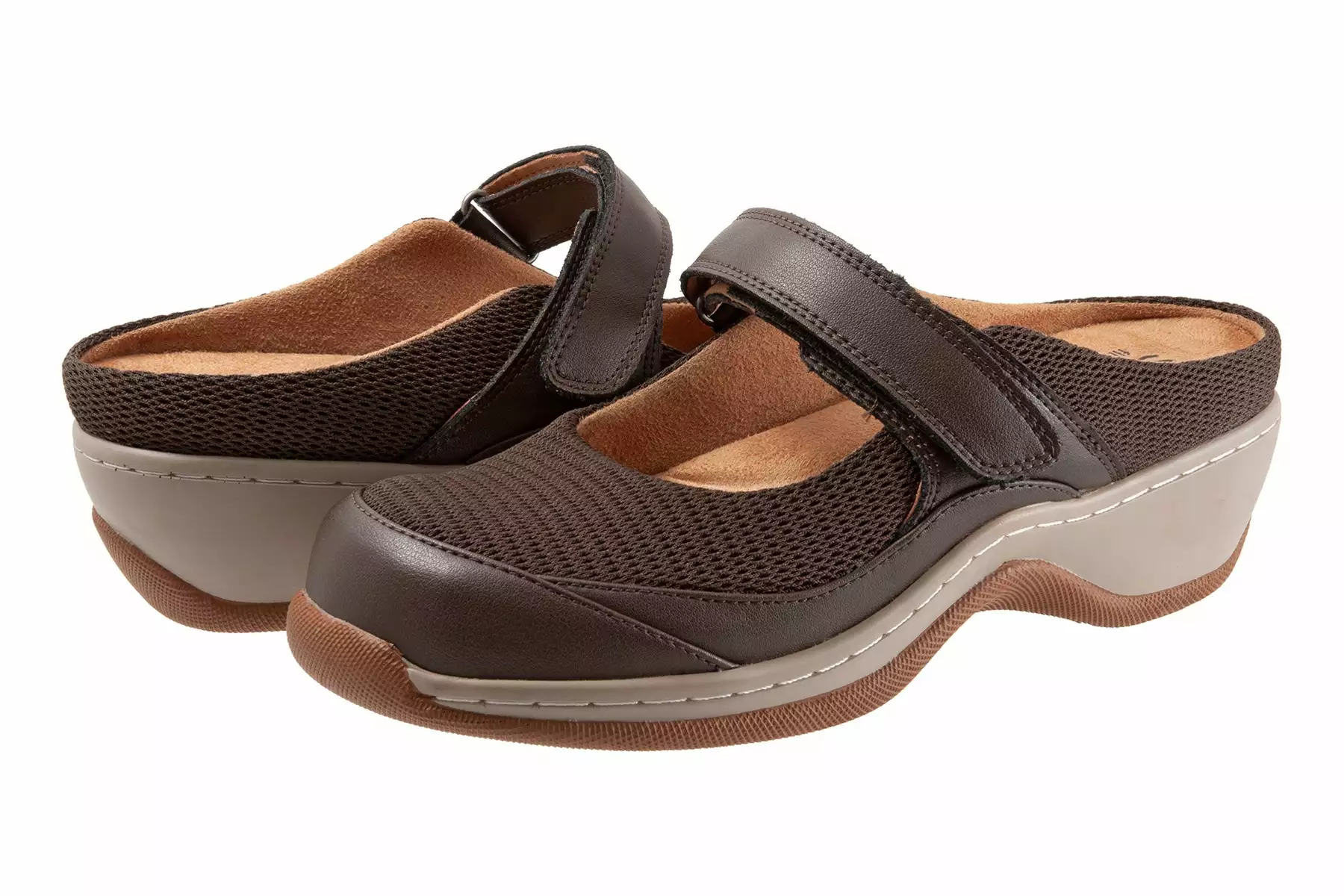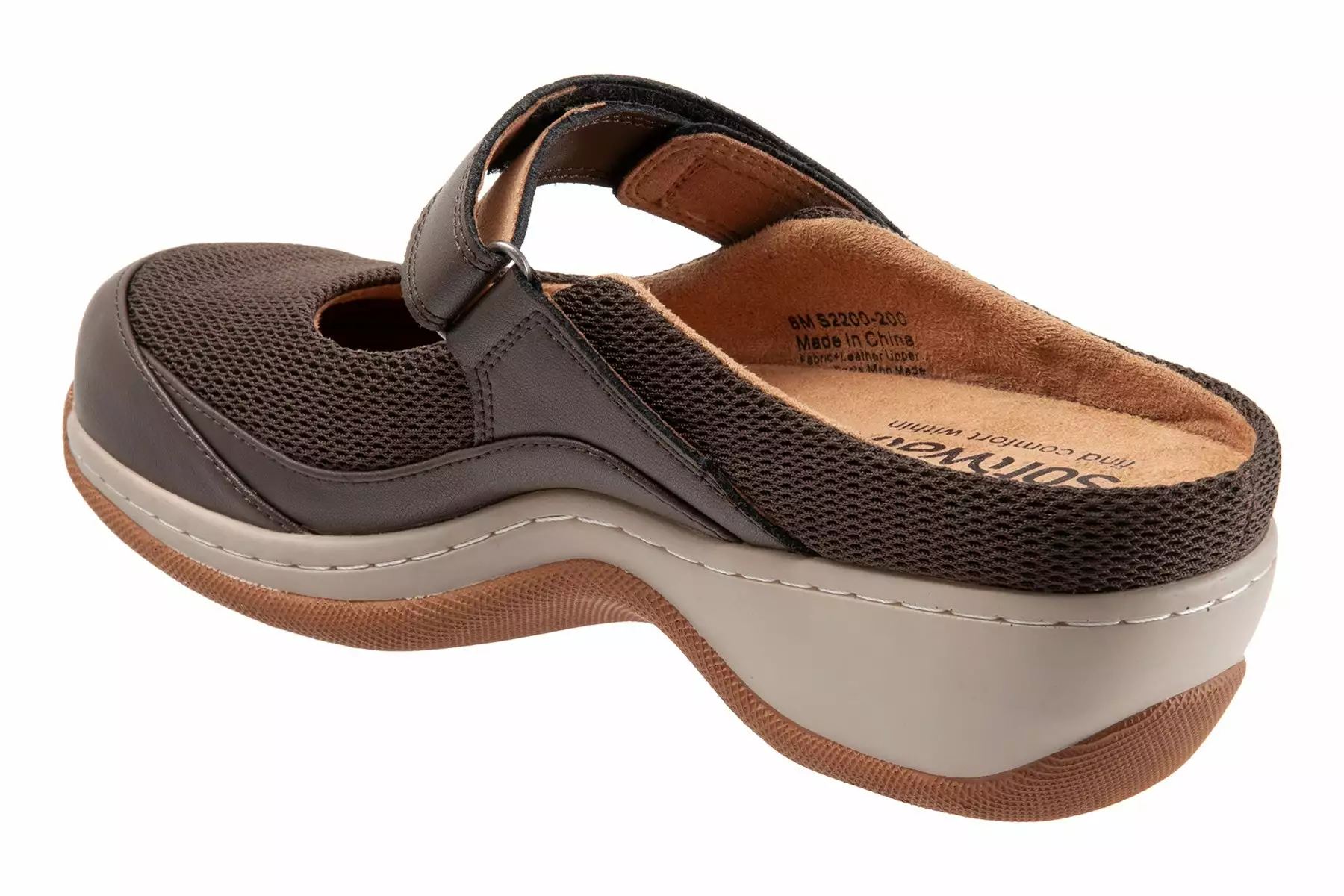 Softwalk Arcadia is an adjustable and versatile Mary Jane clog. A mesh leather upper, removable footbed, cushioned insole and PU outsole makes these clogs. An instep hook and loop strap provides support, while a memory foam cushioned midsole provides added comfort.