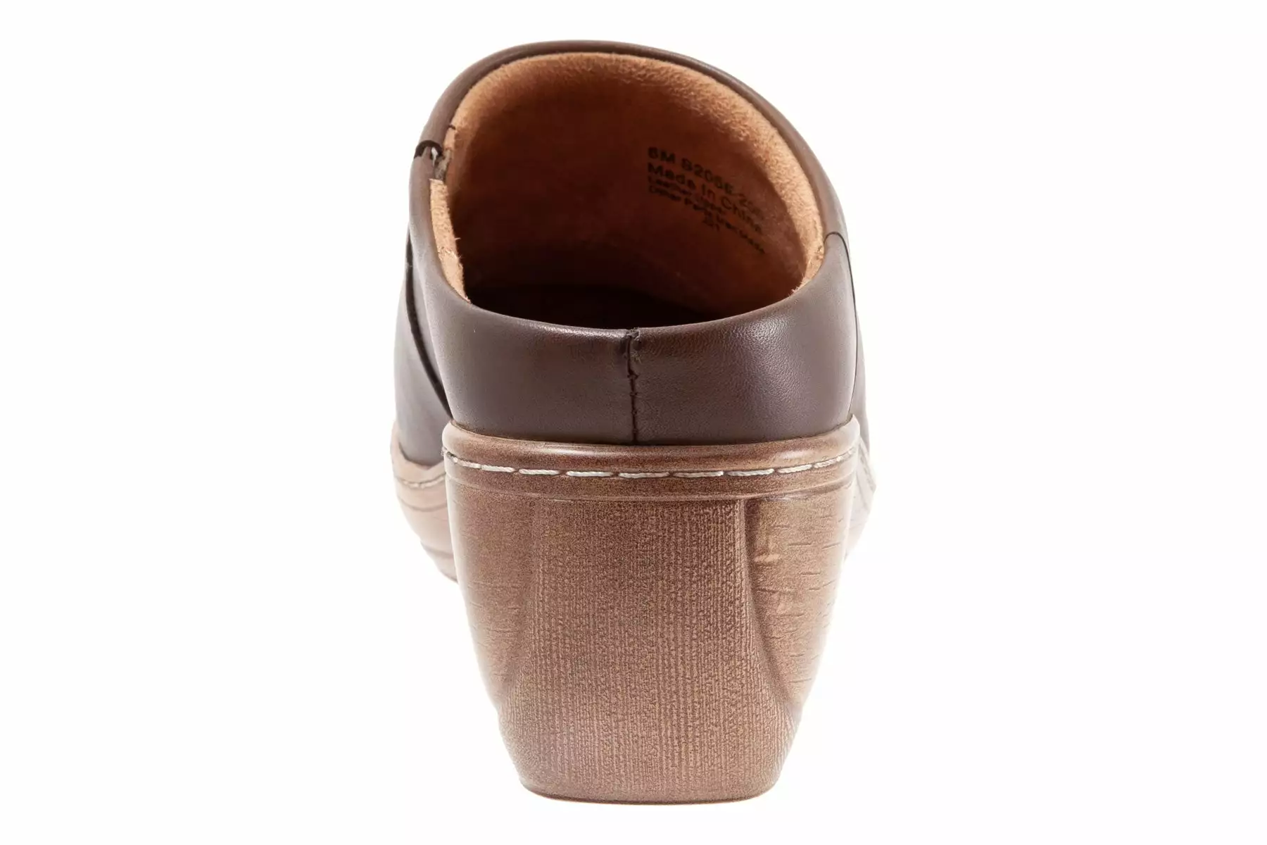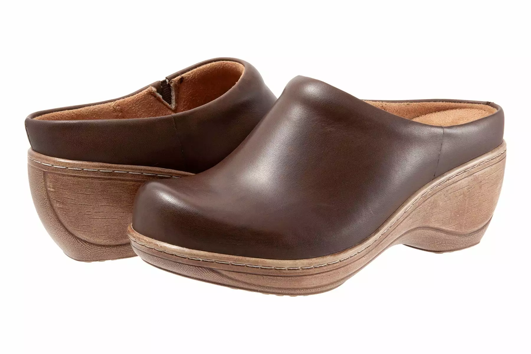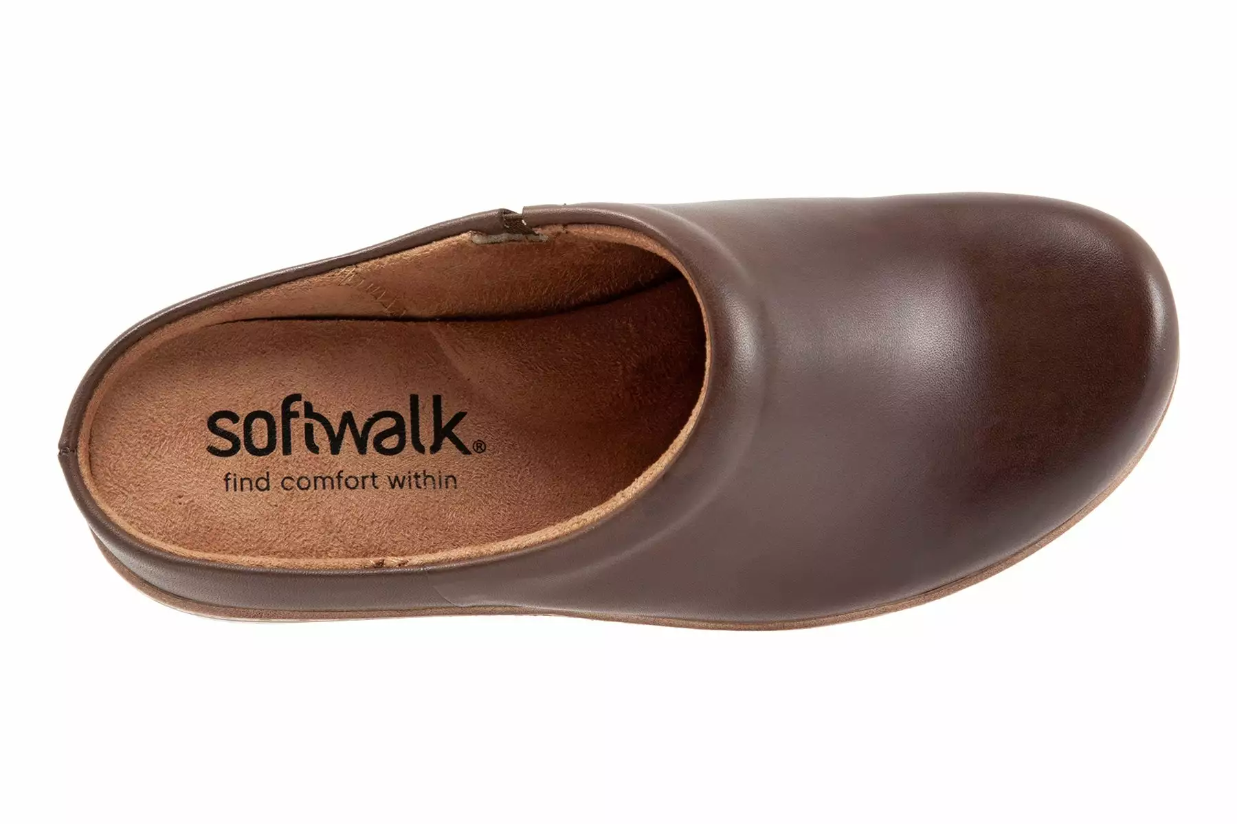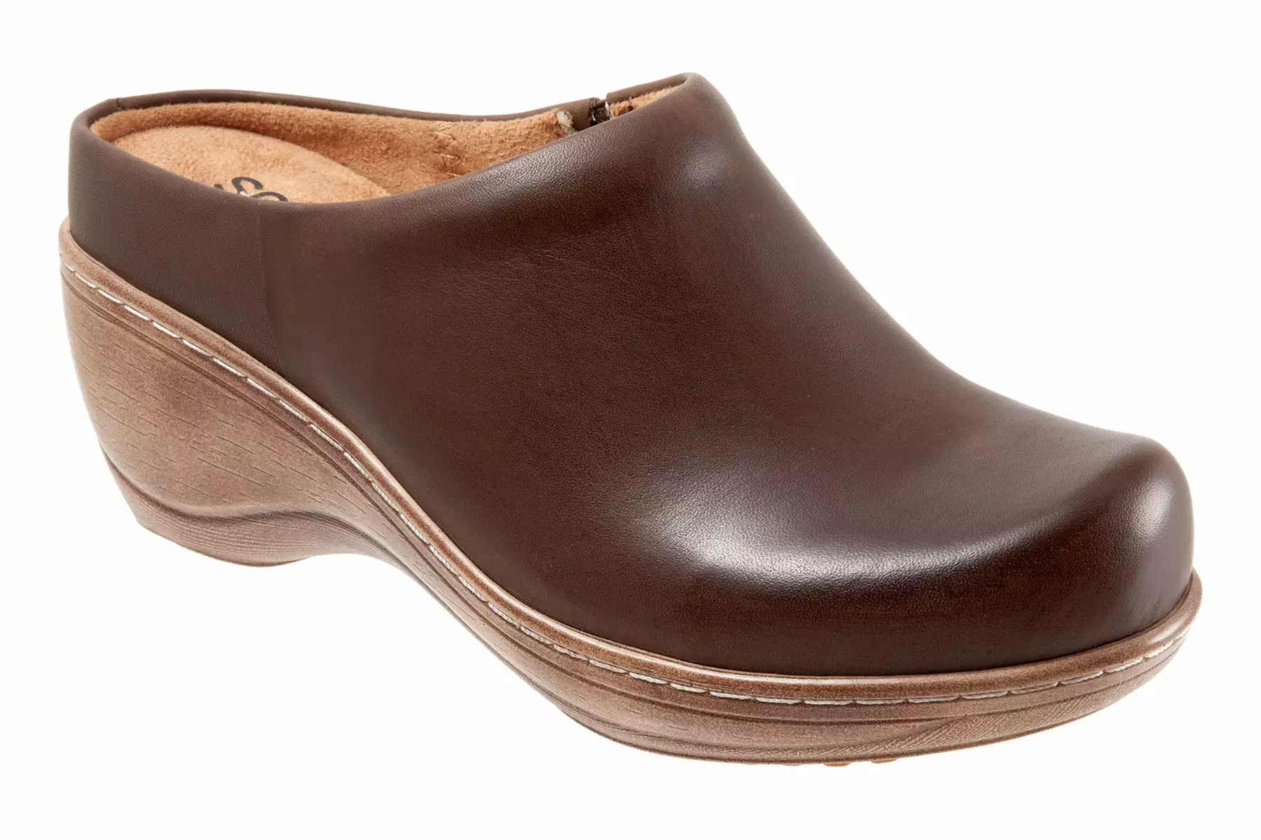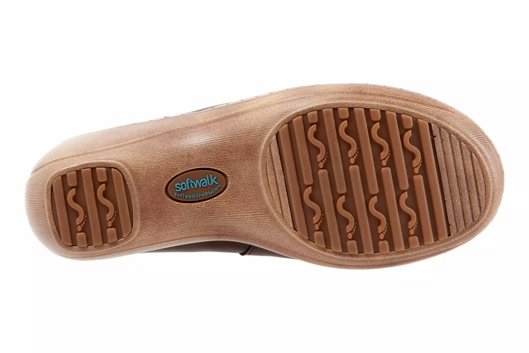 Softwalk Madison is a curvy platform wedge. These clogs have full grain leather uppers, removable footbed, elastic goring and a sturdy rubber outsole. A supportive steel or iron shank, microfiber footbed lining and 2 ¼ inch platform wedge heel will make these clogs a new favorite.
