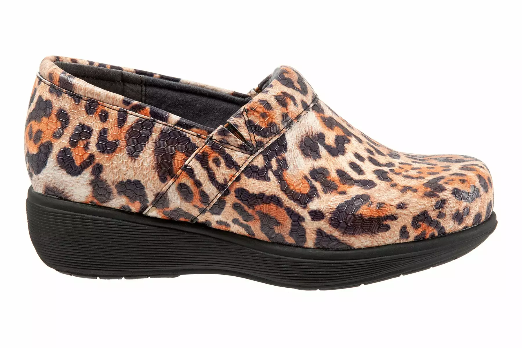 Meredith Sport is a slip-on clog for service professionals. A leather upper, contoured and cushioned footbed and flexible EVA outsole helps feet on long shifts. Nurses and hospitality workers can expect superior arch support, lightweight yet sturdy construction and closed toe style.
