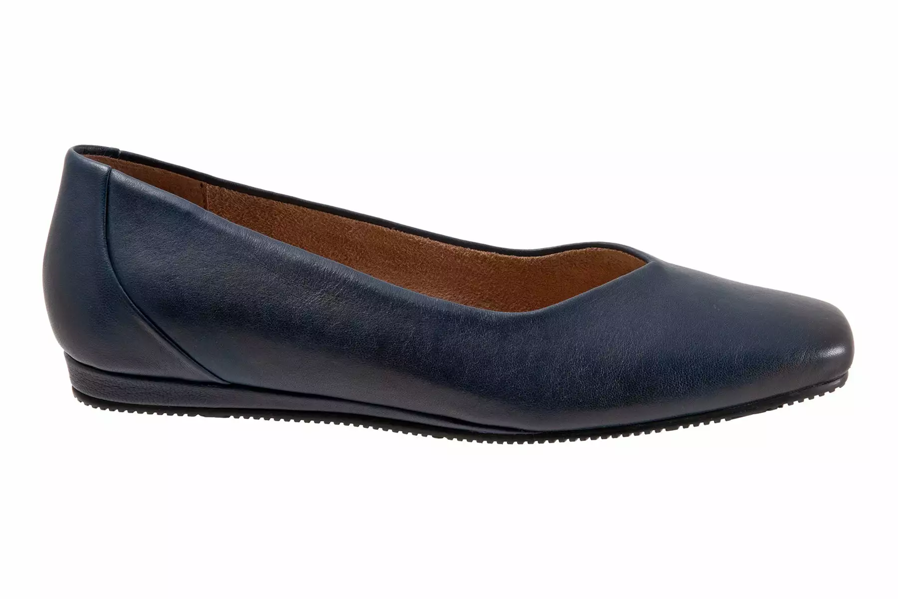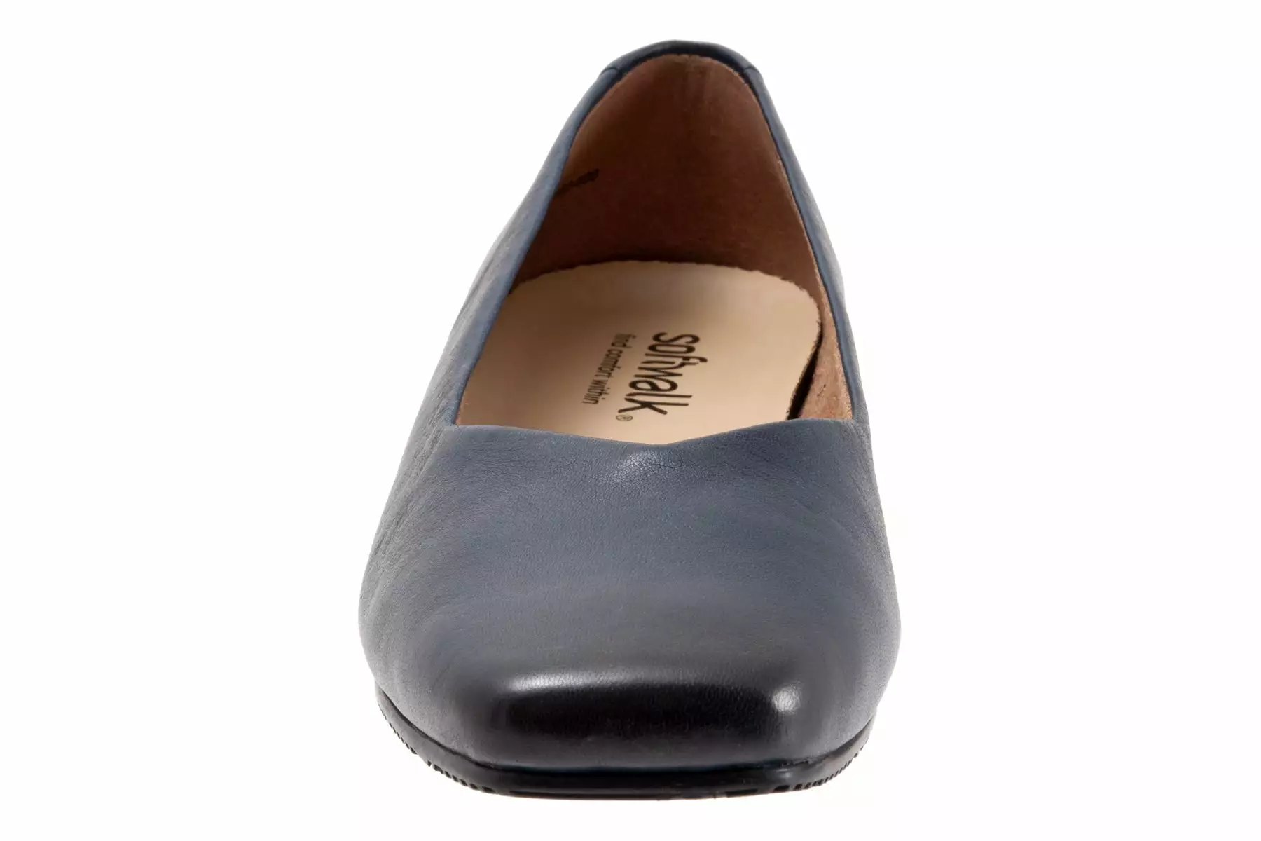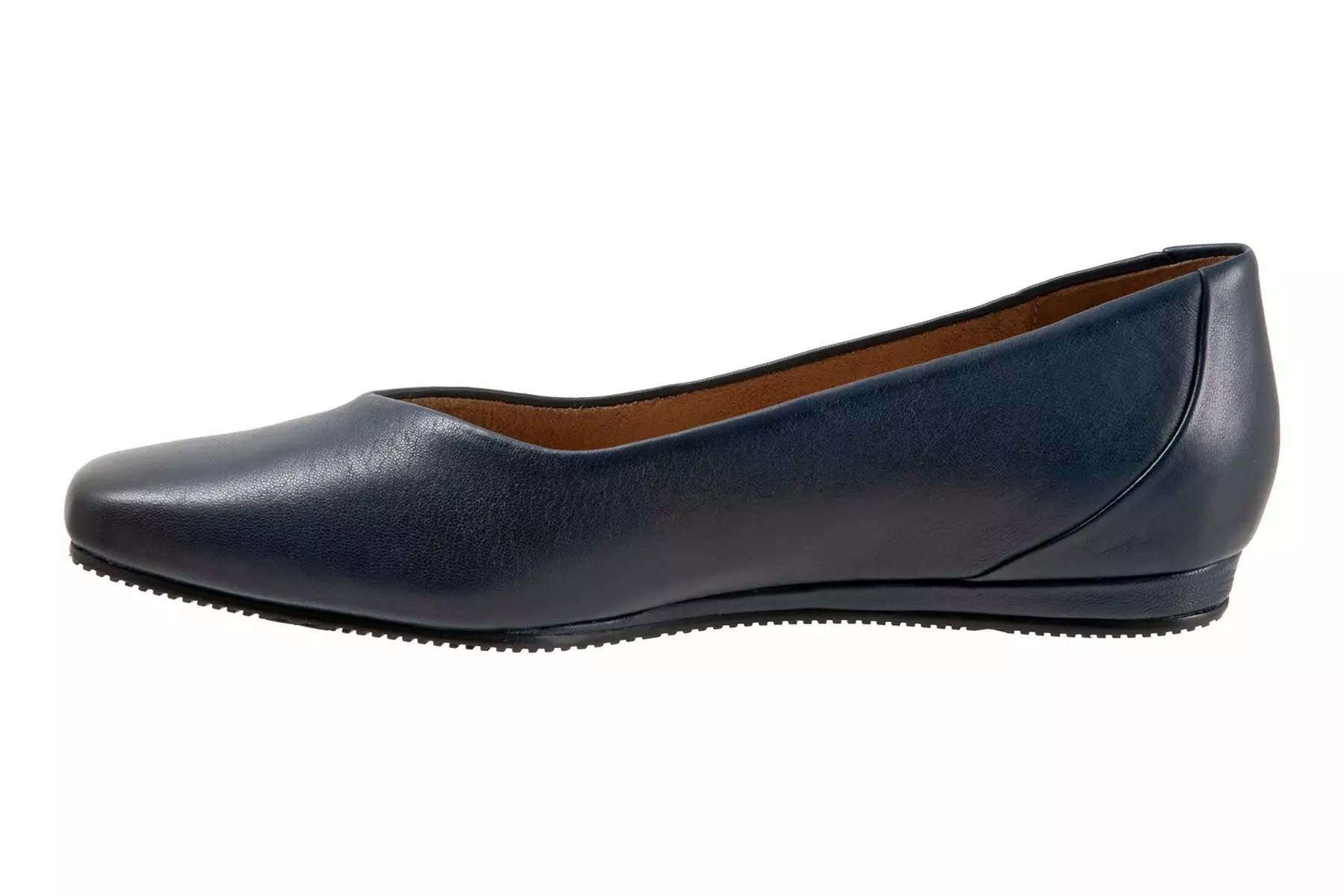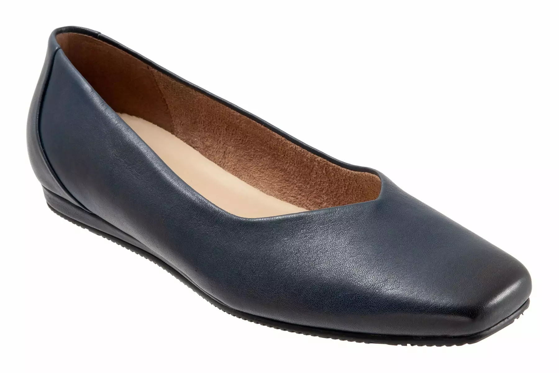 Softwalk Vellore is a fashionable slip-on flat. Features include leather or felt uppers, a removable and cushioned PU foam footbed and rubber outsole. A microfiber upper lining, square toe and V-shaped vamp detail completes these comfortable ballet flats.