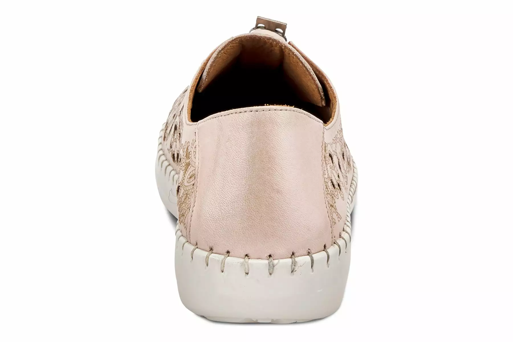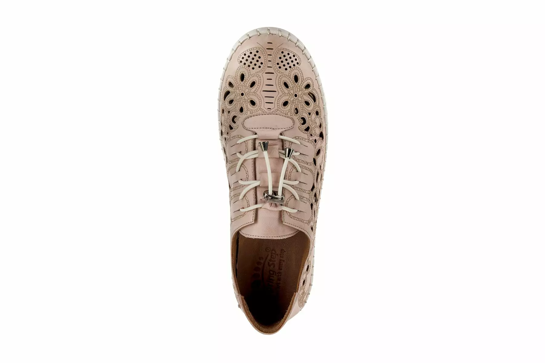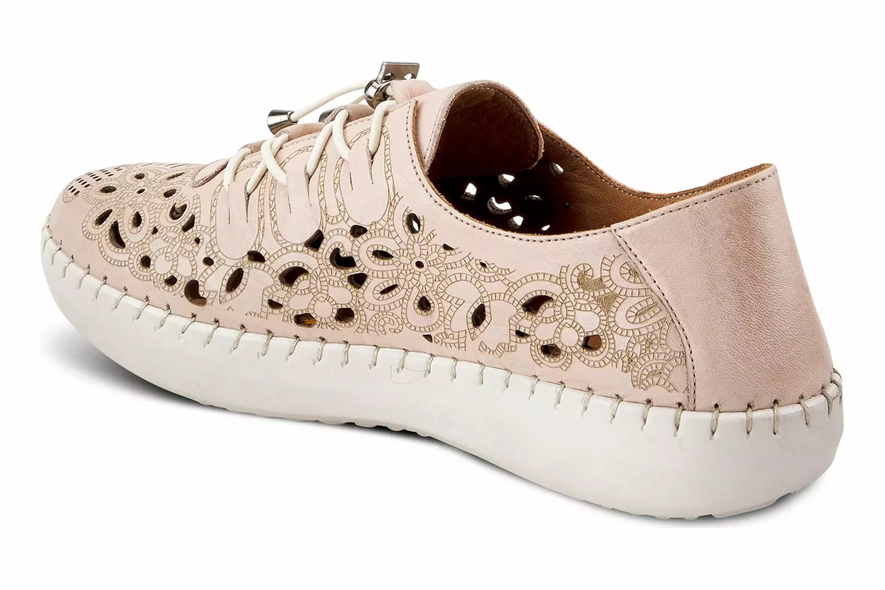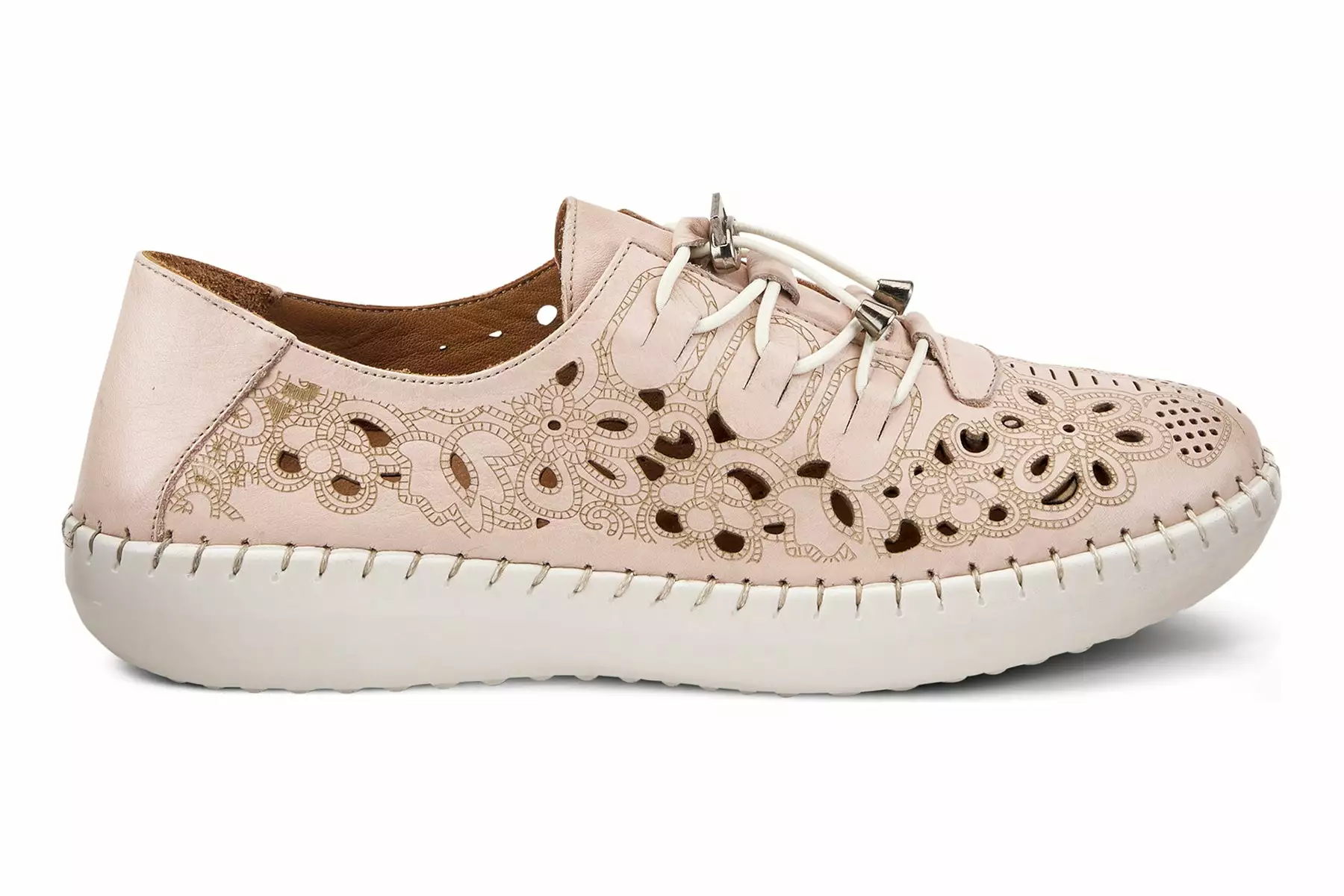 Discover a comfy, easy, lightweight sneaker. Leather upper featuring a beautiful laser flower cutout with elastic shoelaces and adjustable toggle lacing.