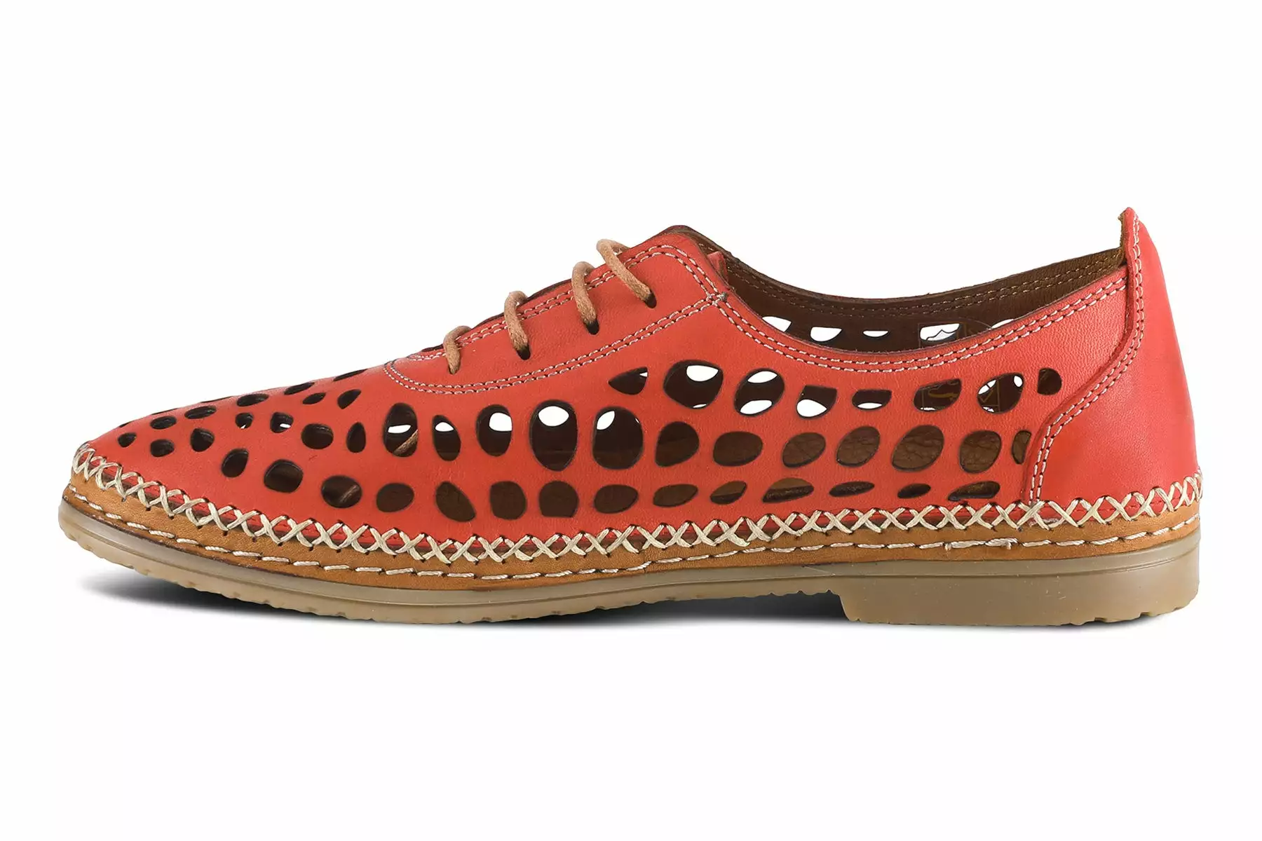 European influenced, leather lace-up loafer, featuring abstract laser cutouts and artisan stitch work all on a chunky, sculpted outsole.