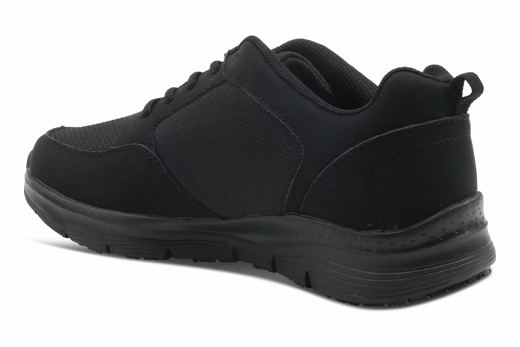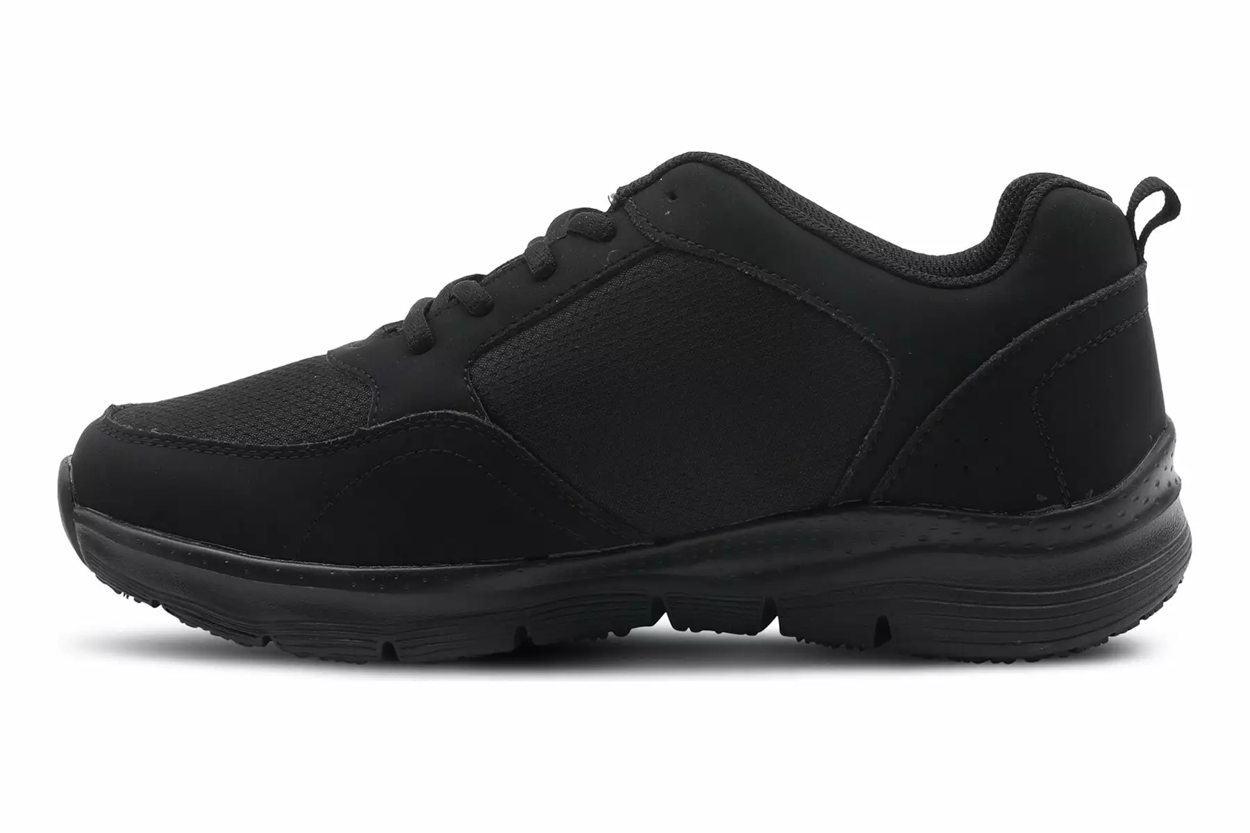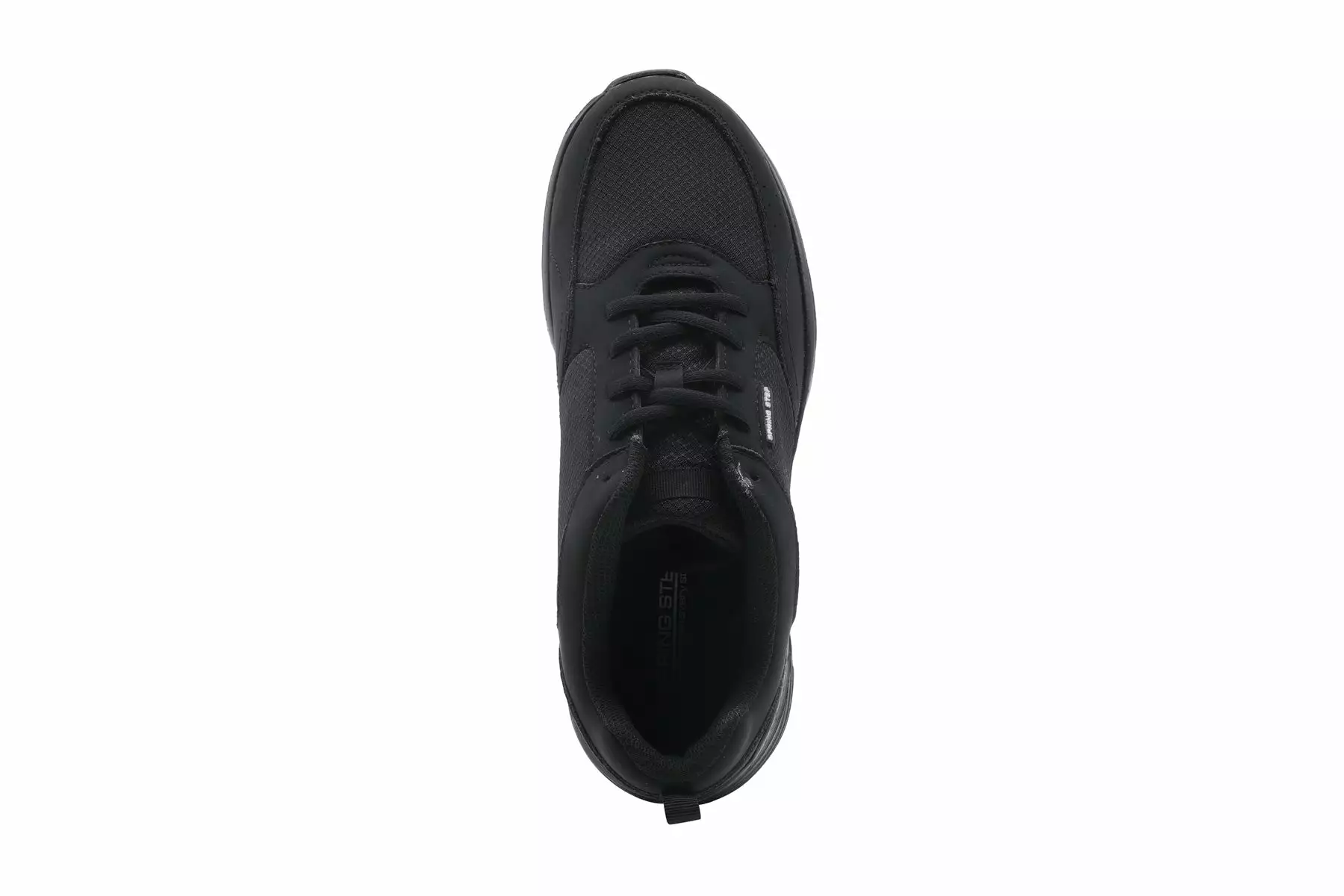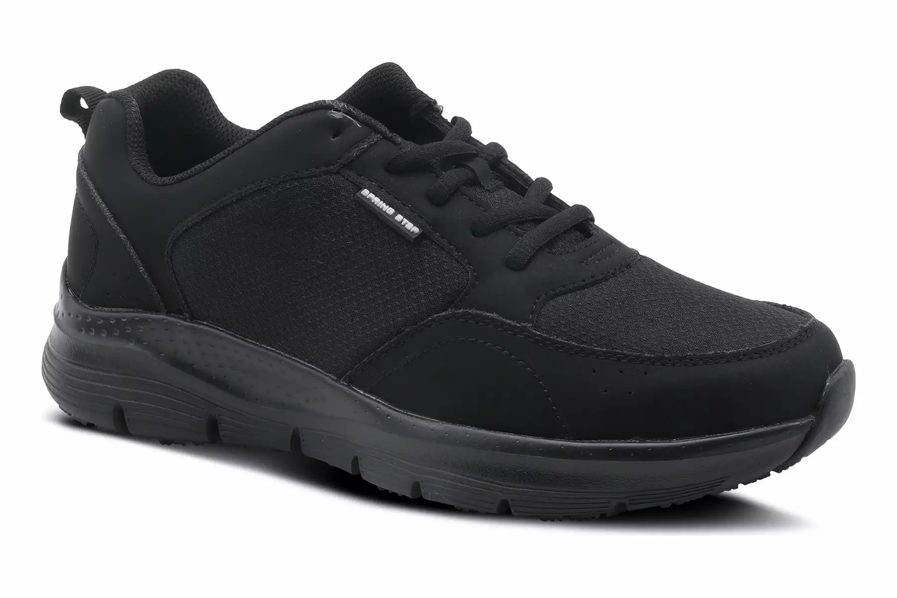 Versatile athletic look work shoe all in one. All over black making this style sleek and stylish. Ultra lightweight with an oil and skid-resistant tread and a back pull loop.