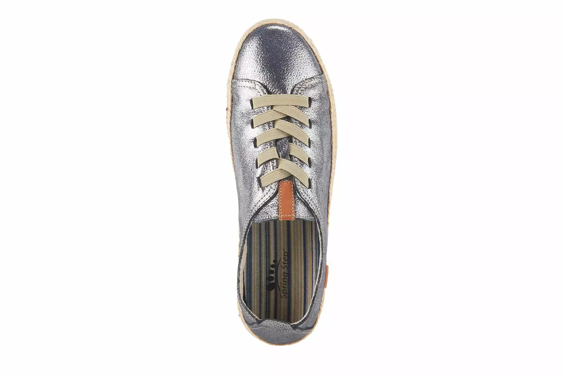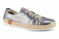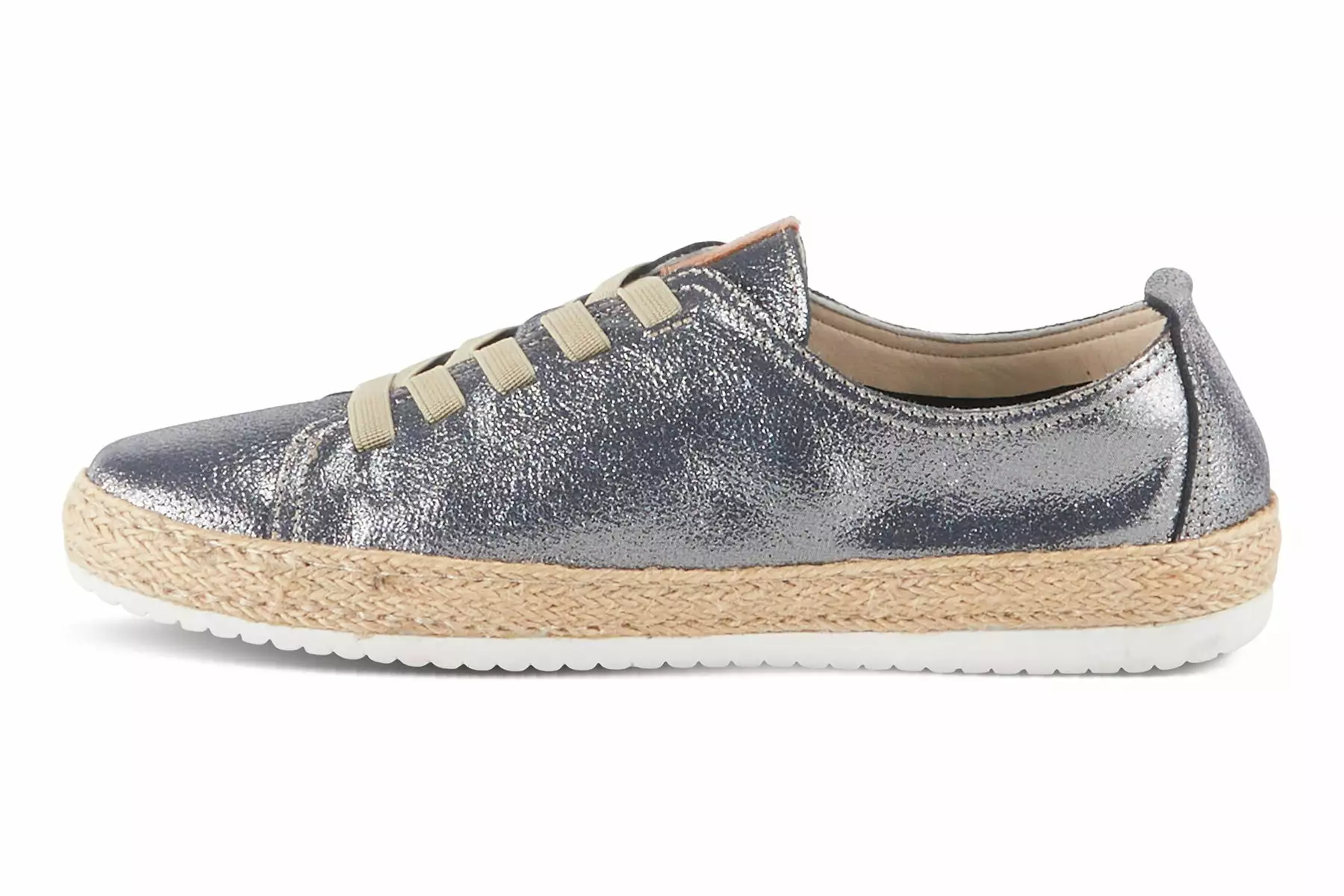 Here is your vacation-ready staple. Crafted on a jute-trimmed sole, it combines the effortless style of an espadrille with the wearability of your favorite sneaker. Great adjustable laces. Partner it with denim shorts or flowing maxi dress. Comes in 3 types of materials pebbled leather, metallic leather and nubuck.